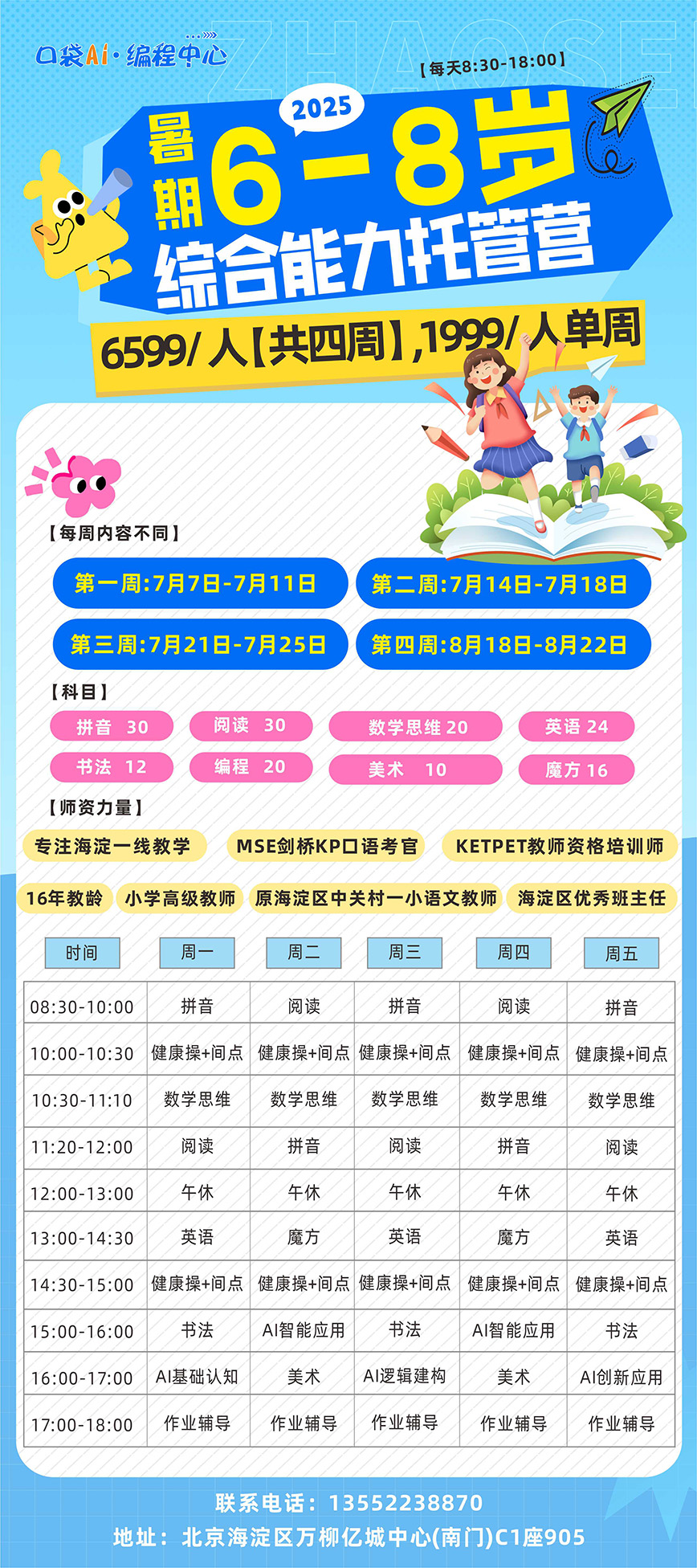 【口袋AI·编程中心】2025暑期6-8岁综合能力托管营