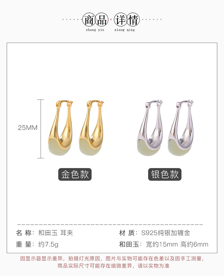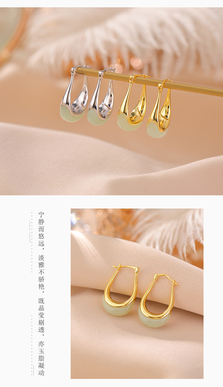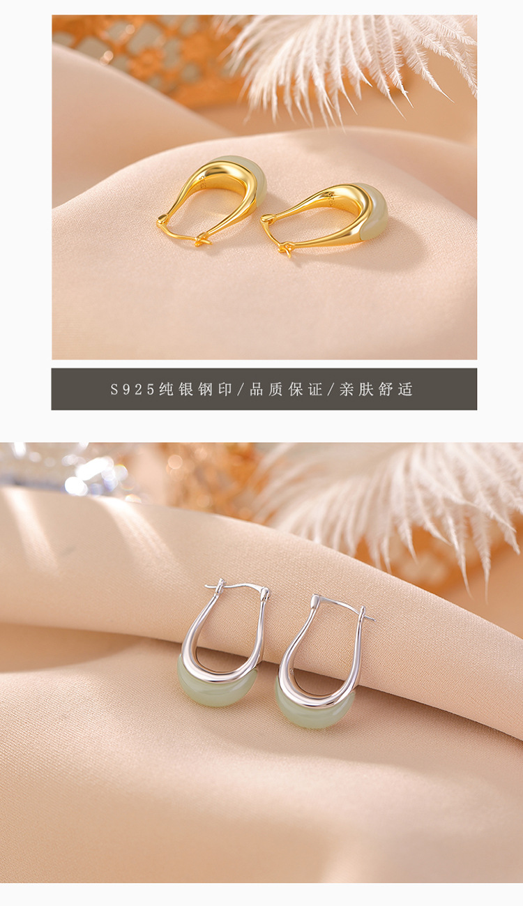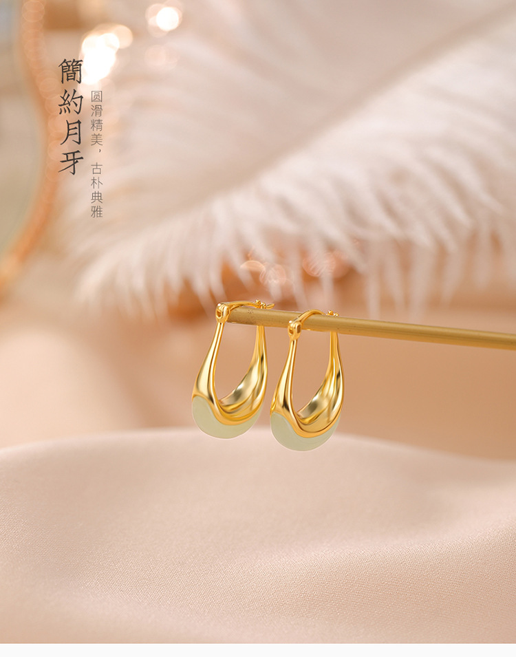 【明月弯弯】S925纯银镀金和田玉弯管月牙耳环【CW-EJ00527】