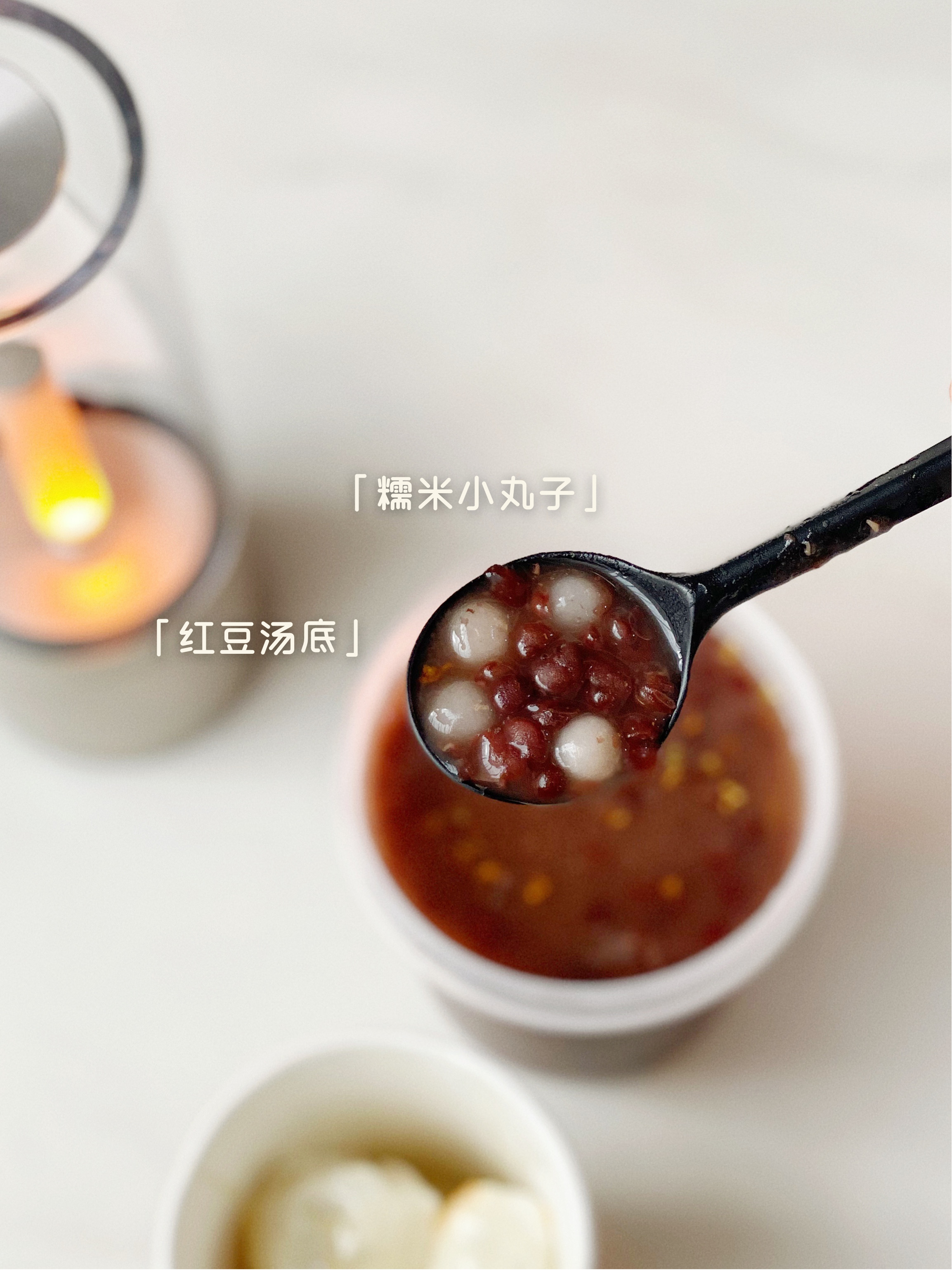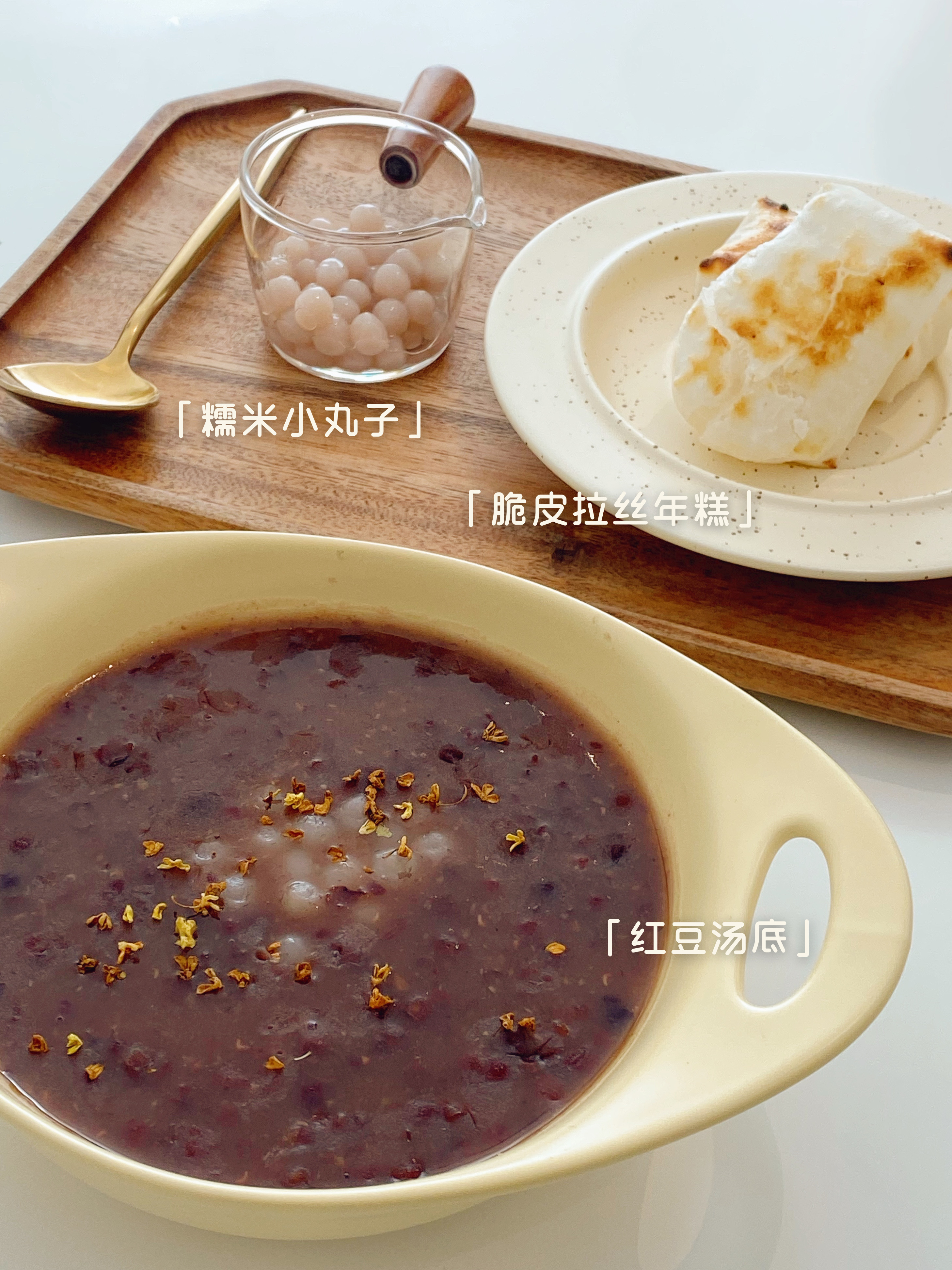 组成:红豆甜汤,糯米小丸子,脆皮年糕