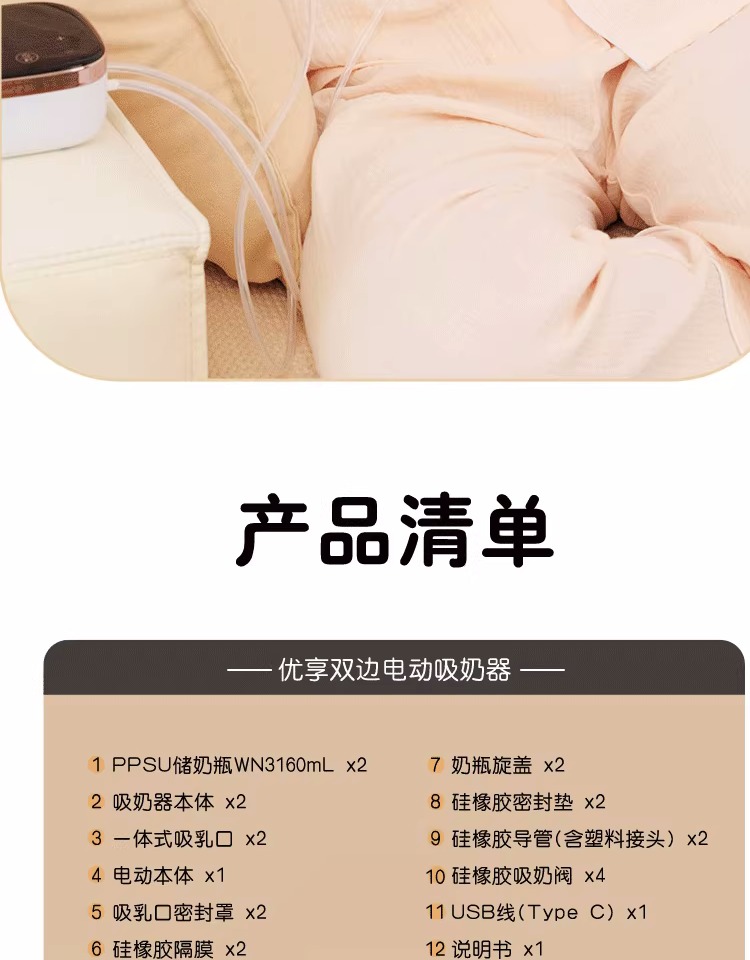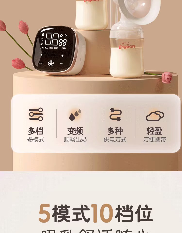 贝亲双边电动吸奶器按摩全自动挤奶器产妇吸乳器产后可充电PIG-QA85