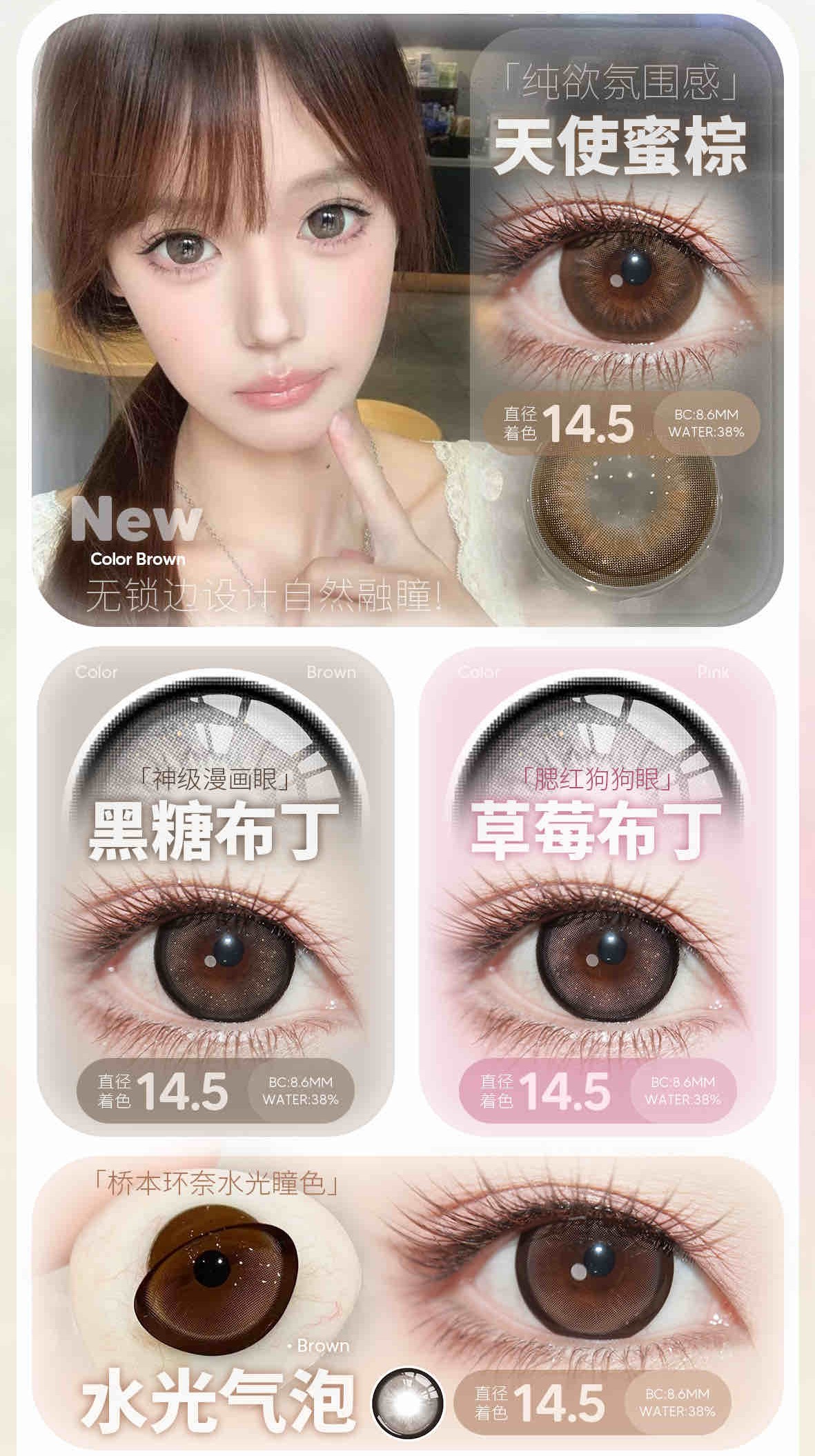 Flowercolor满着色系列半年抛59/副69/2副89/3副,天使蜜棕黑糖布丁草莓布丁