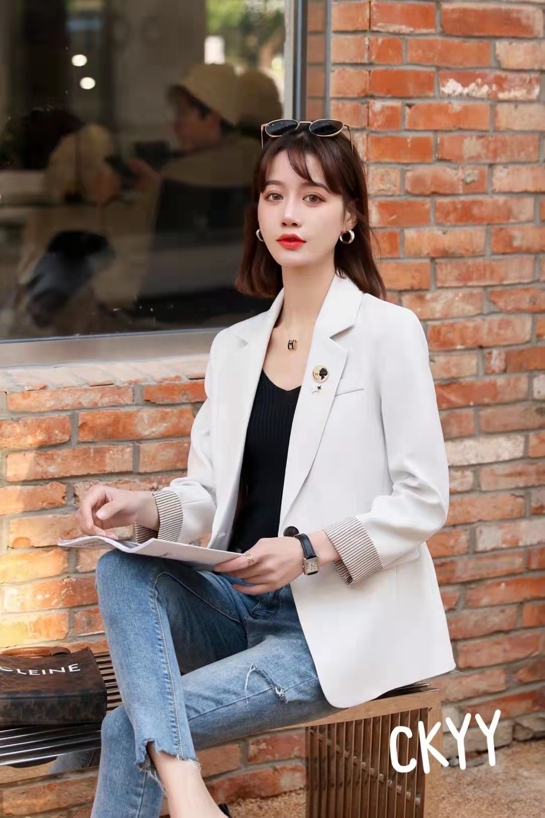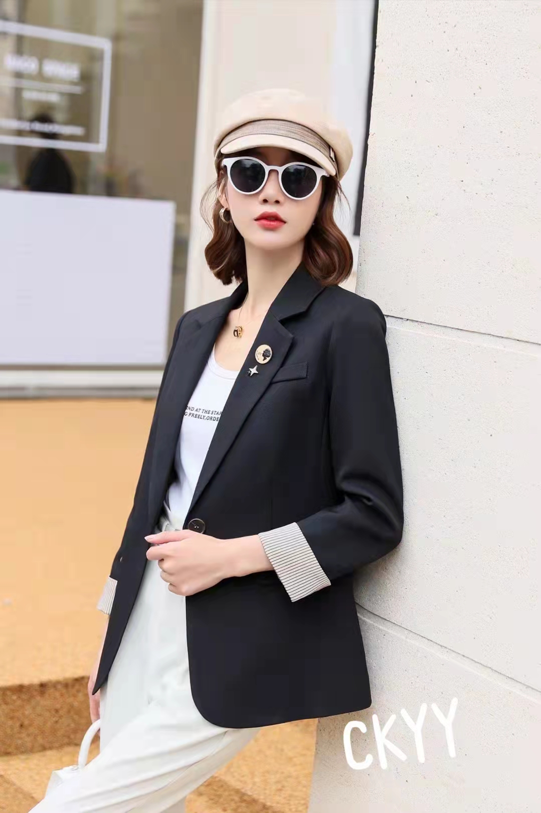 铭华贝儿爆款西服两个颜色米色黑色时尚百搭款穿出女人的高雅气质,搭配裙子裤子都行,减龄款不挑身材,尺码75-85从100斤穿到140斤