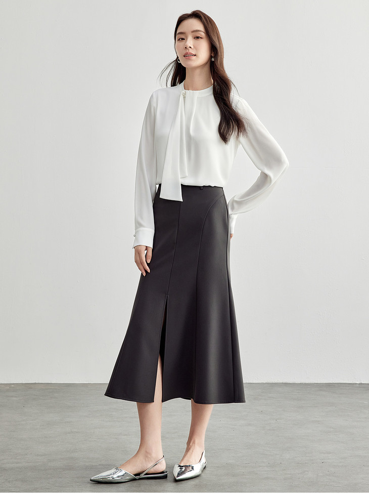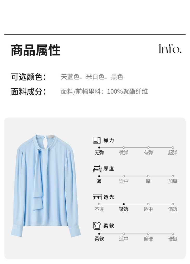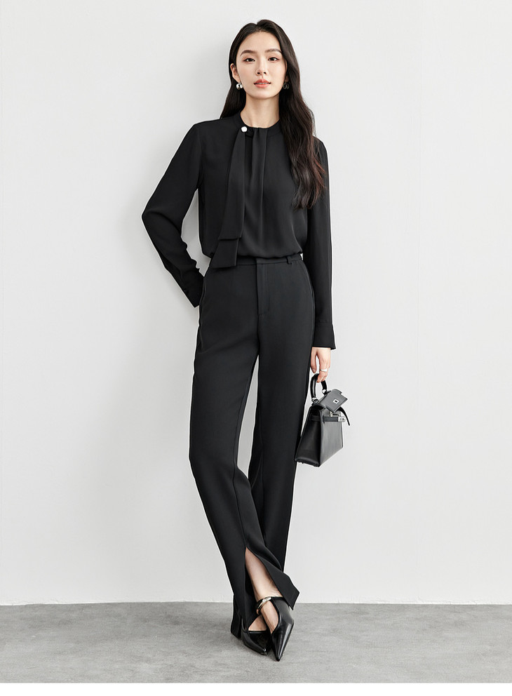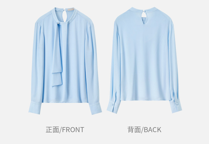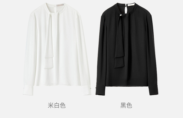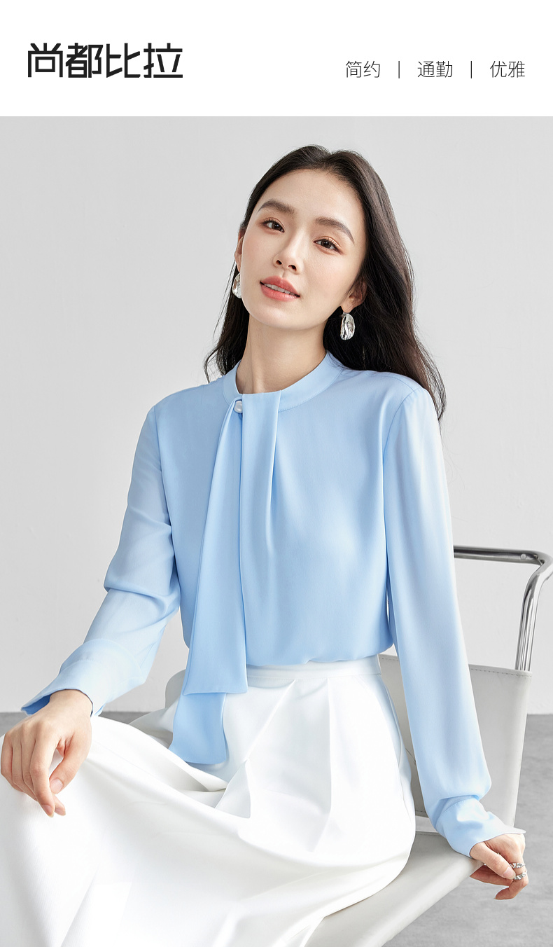 【尚都比拉】气质通勤飘带立领手缝蘑菇扣宽松显瘦套头雪纺衫-151V57948