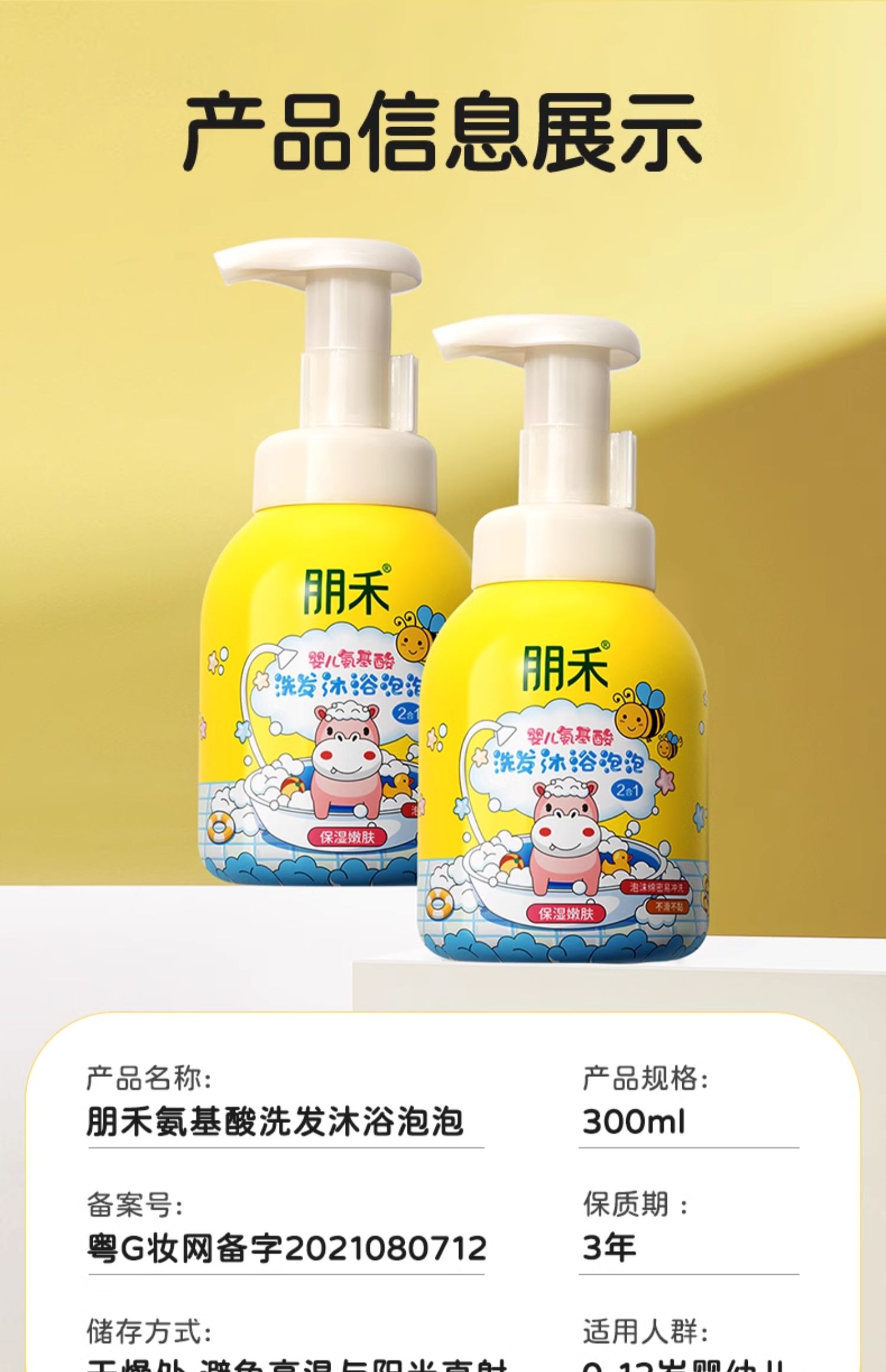 朋禾婴儿氨基酸洗发沐浴泡泡300ml