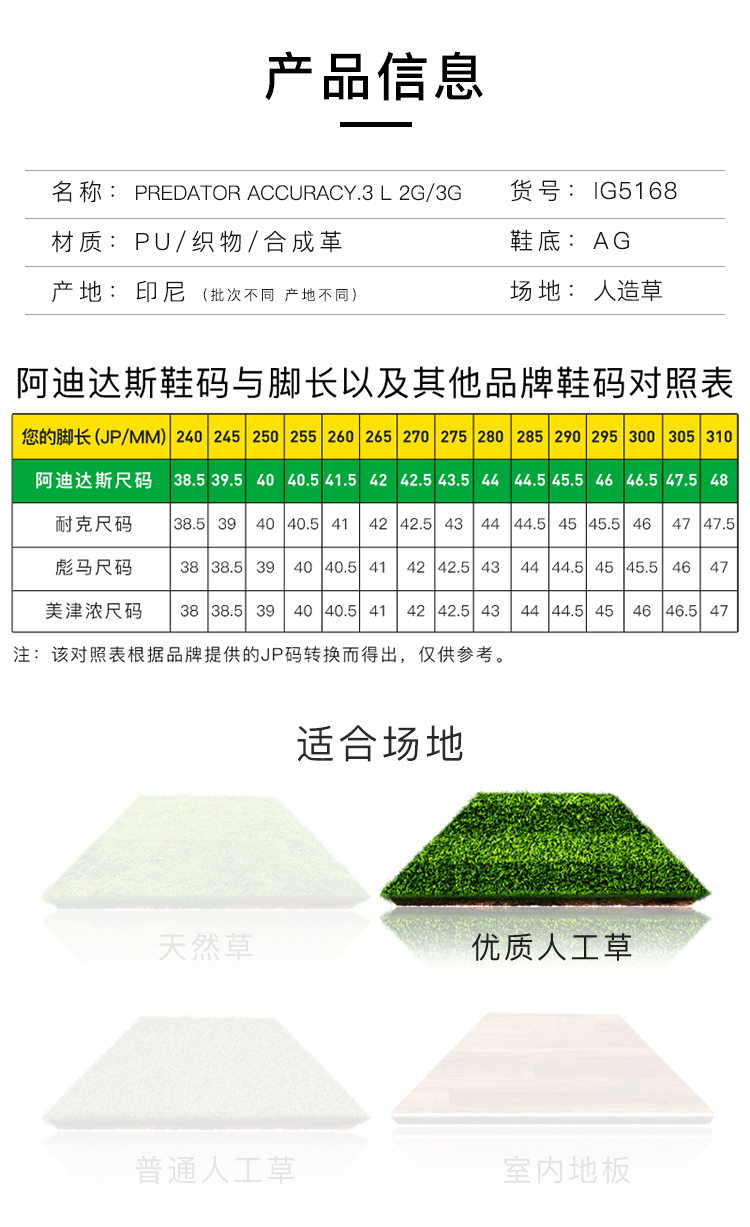 ADIDAS/阿迪达斯PREDATOR ACCURACY.3 L AG猎鹰中端AG足球鞋IG5168