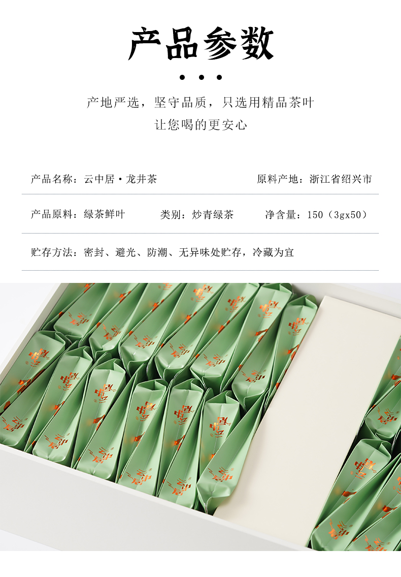 云中居知晓系列特级礼盒装龙井茶150g(3g×50)