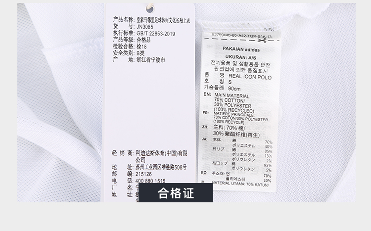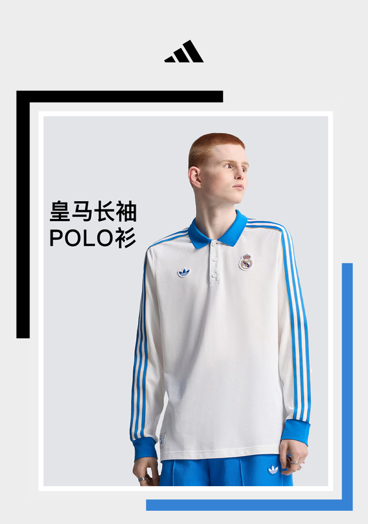 小李子正品ADIDAS阿迪达斯皇马休闲文化长袖POLO衫成人男JN3065