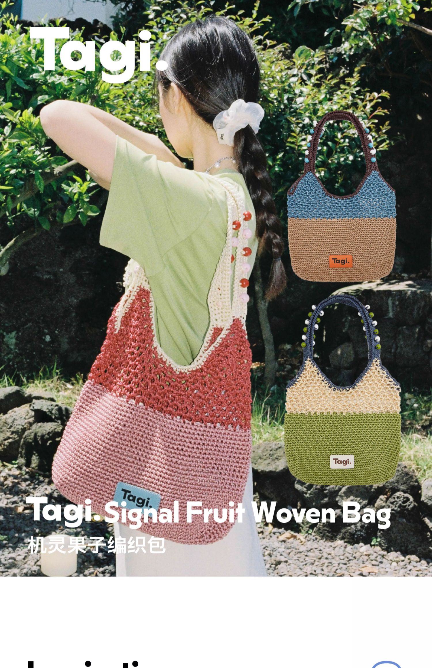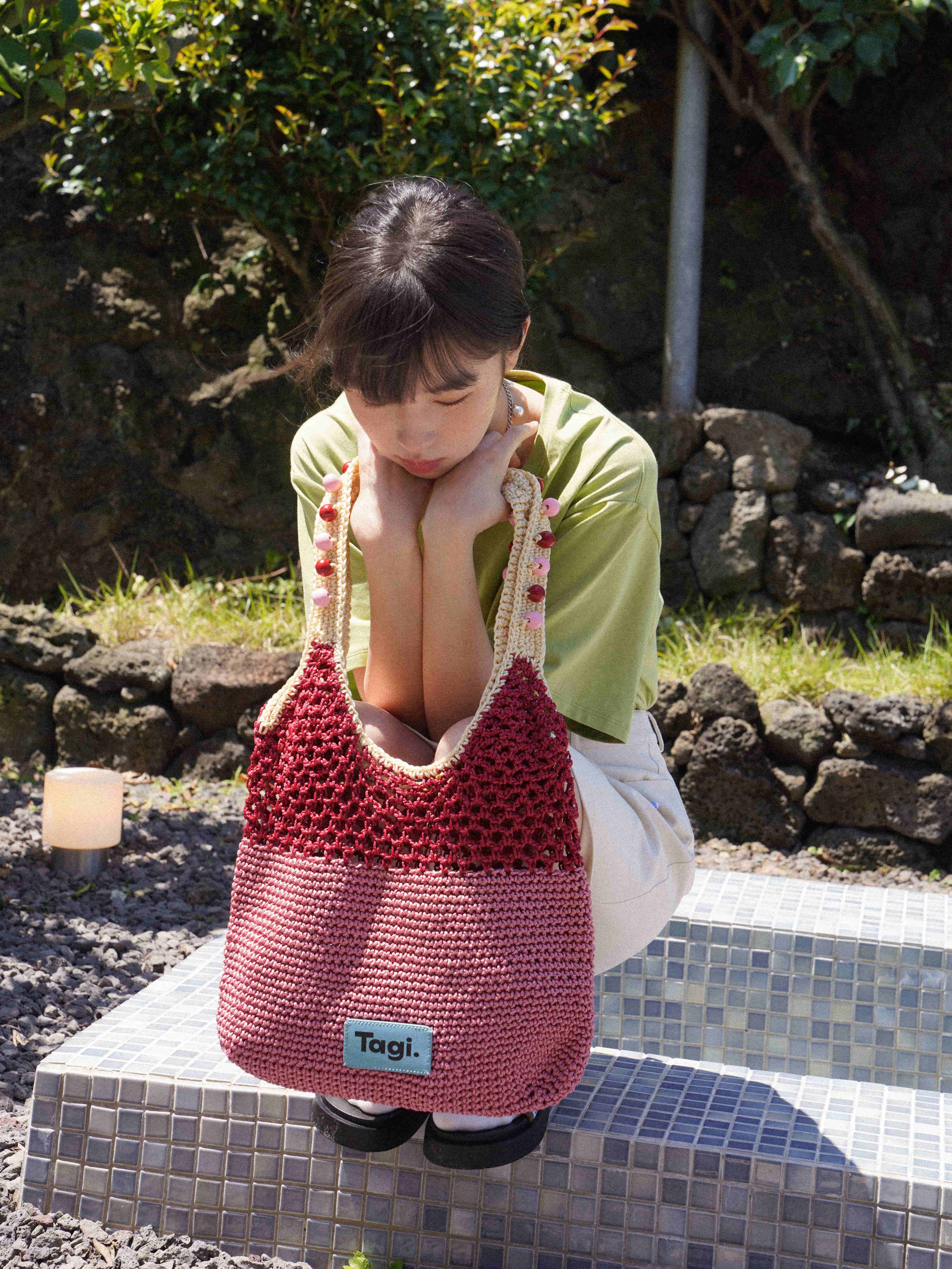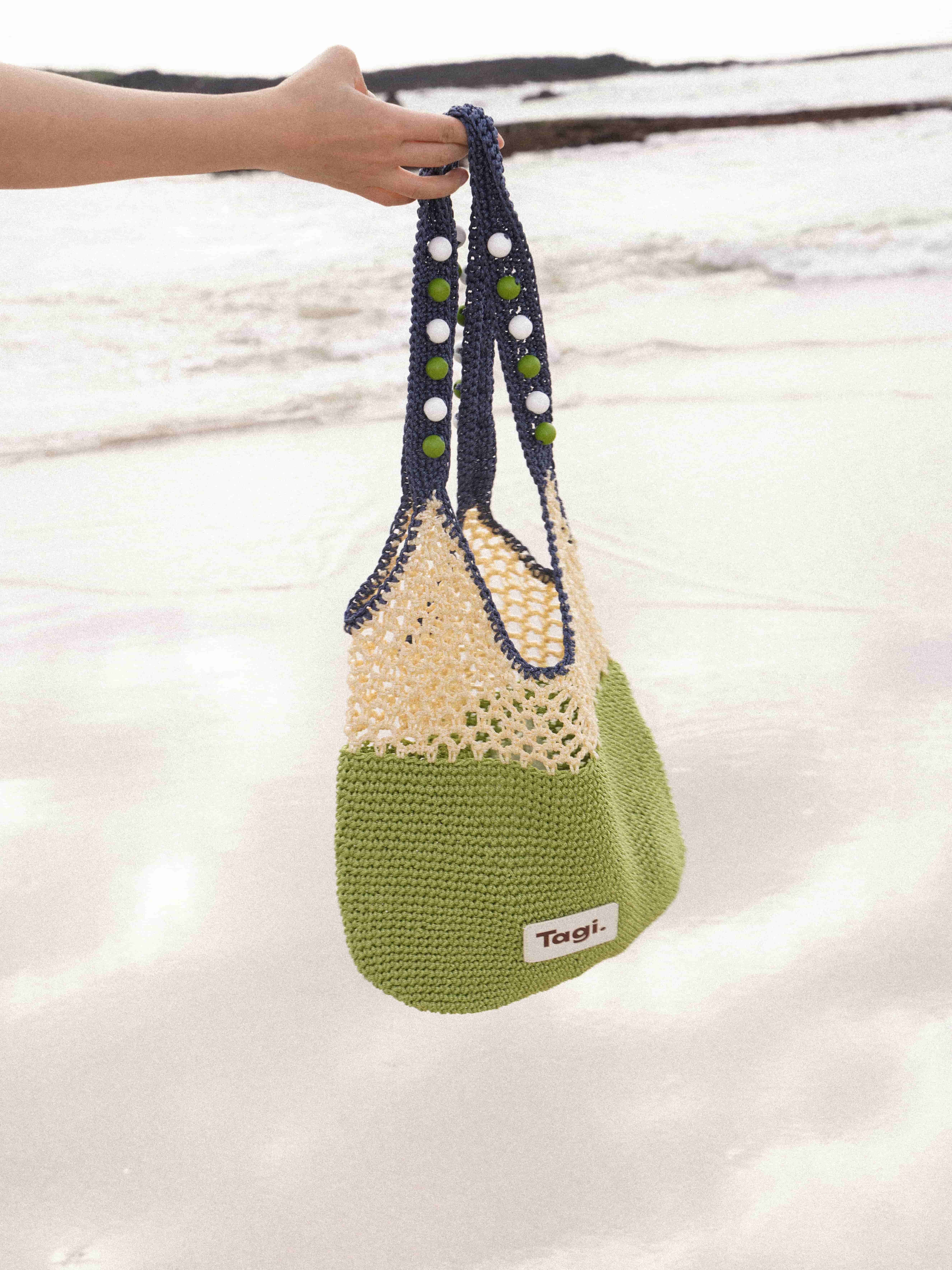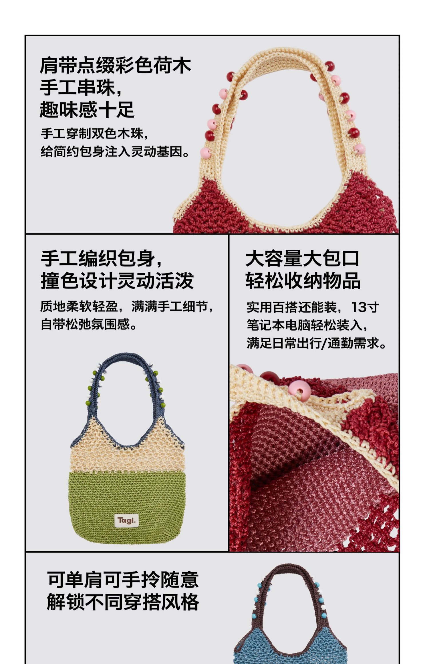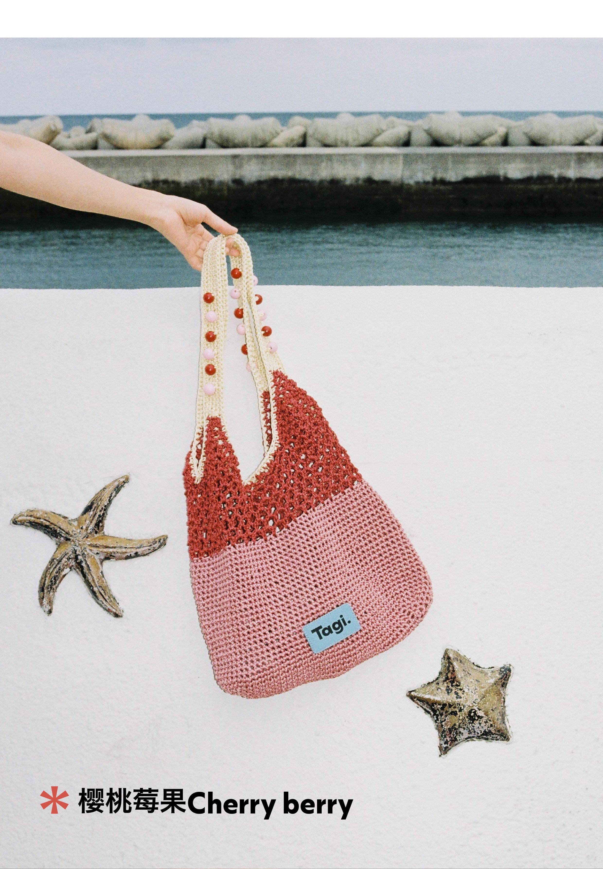 Tagi 机灵果子手工串木珠单肩编织包