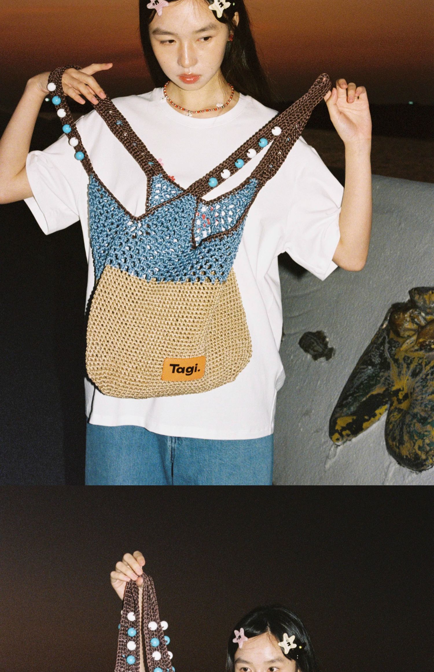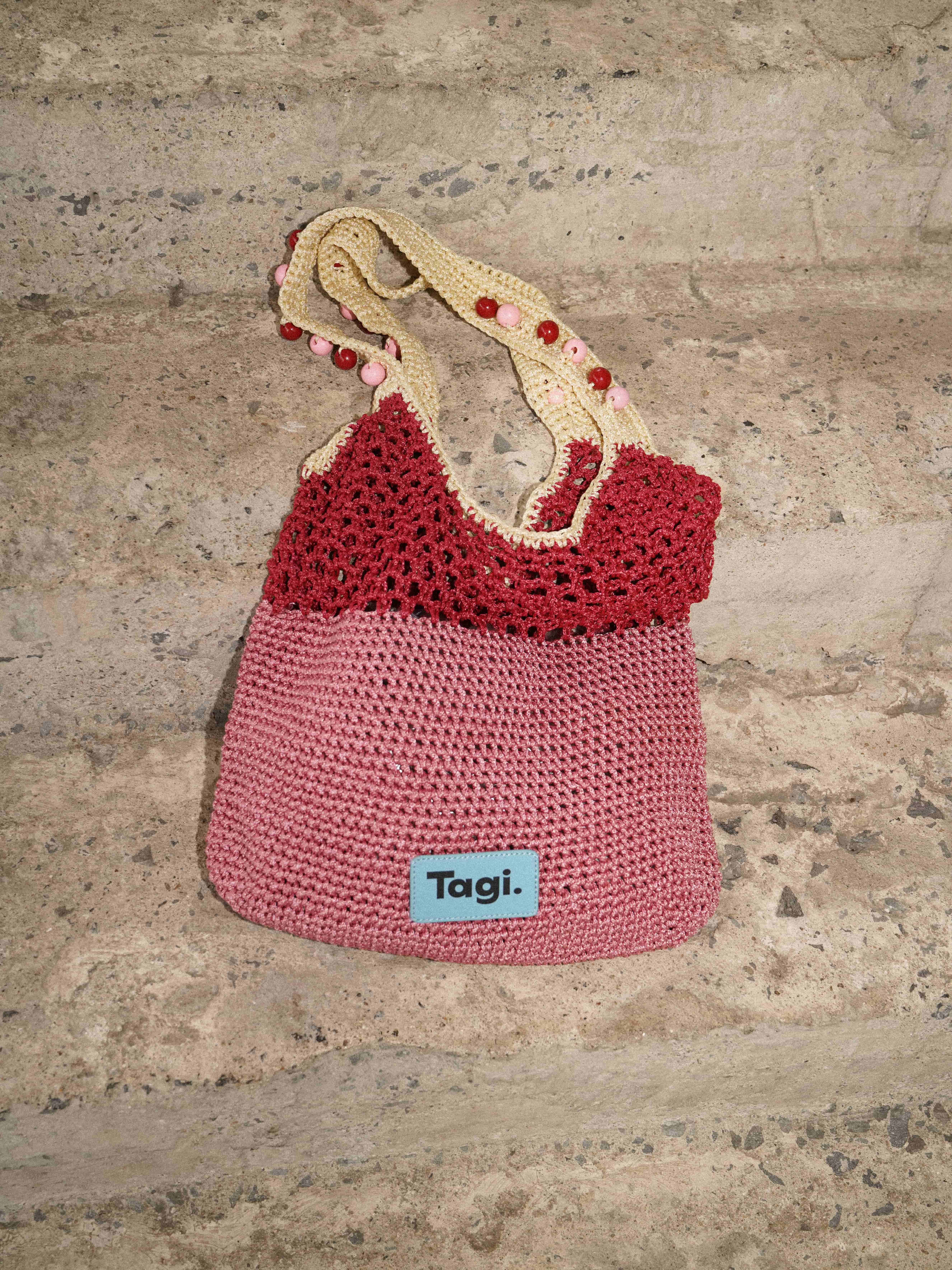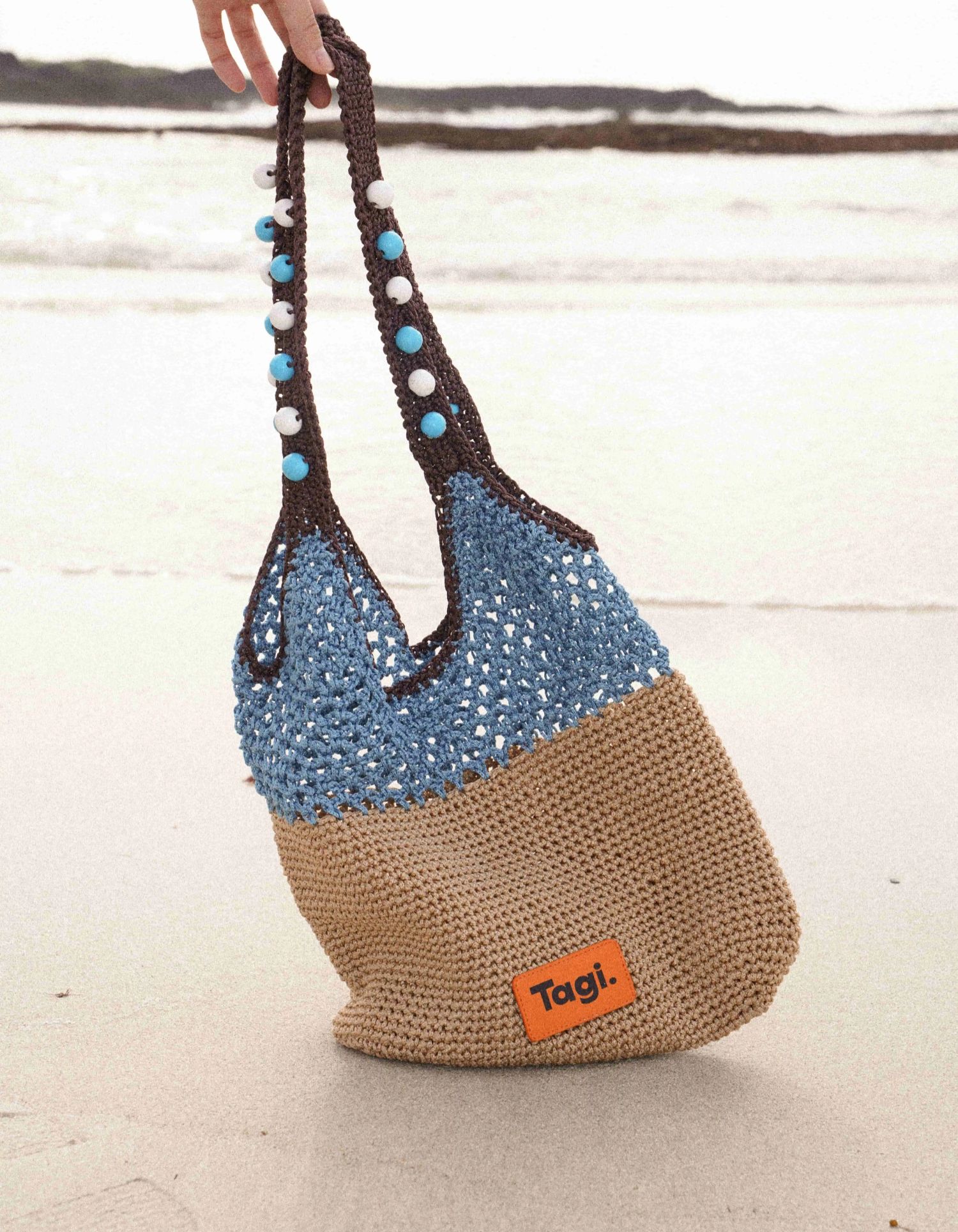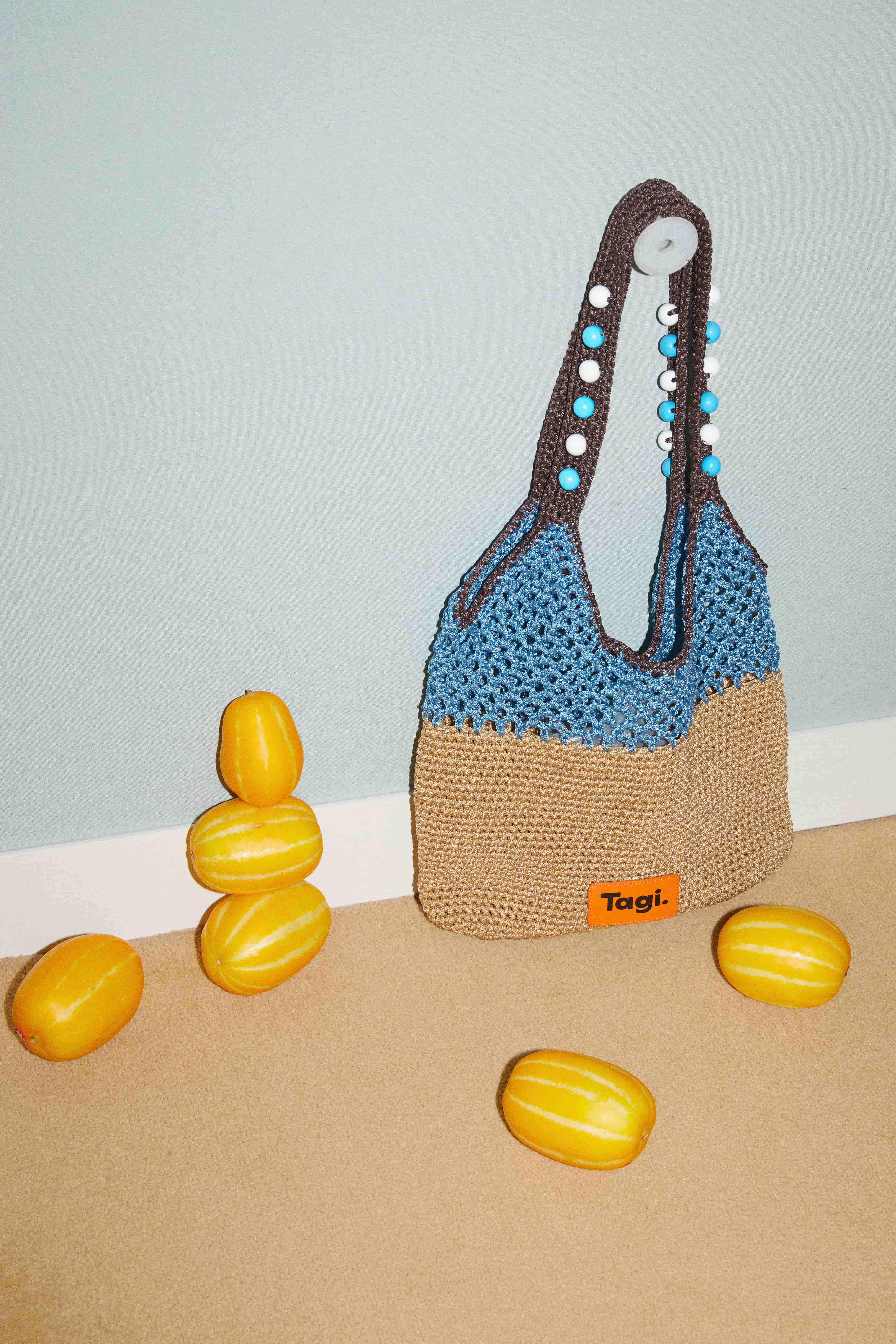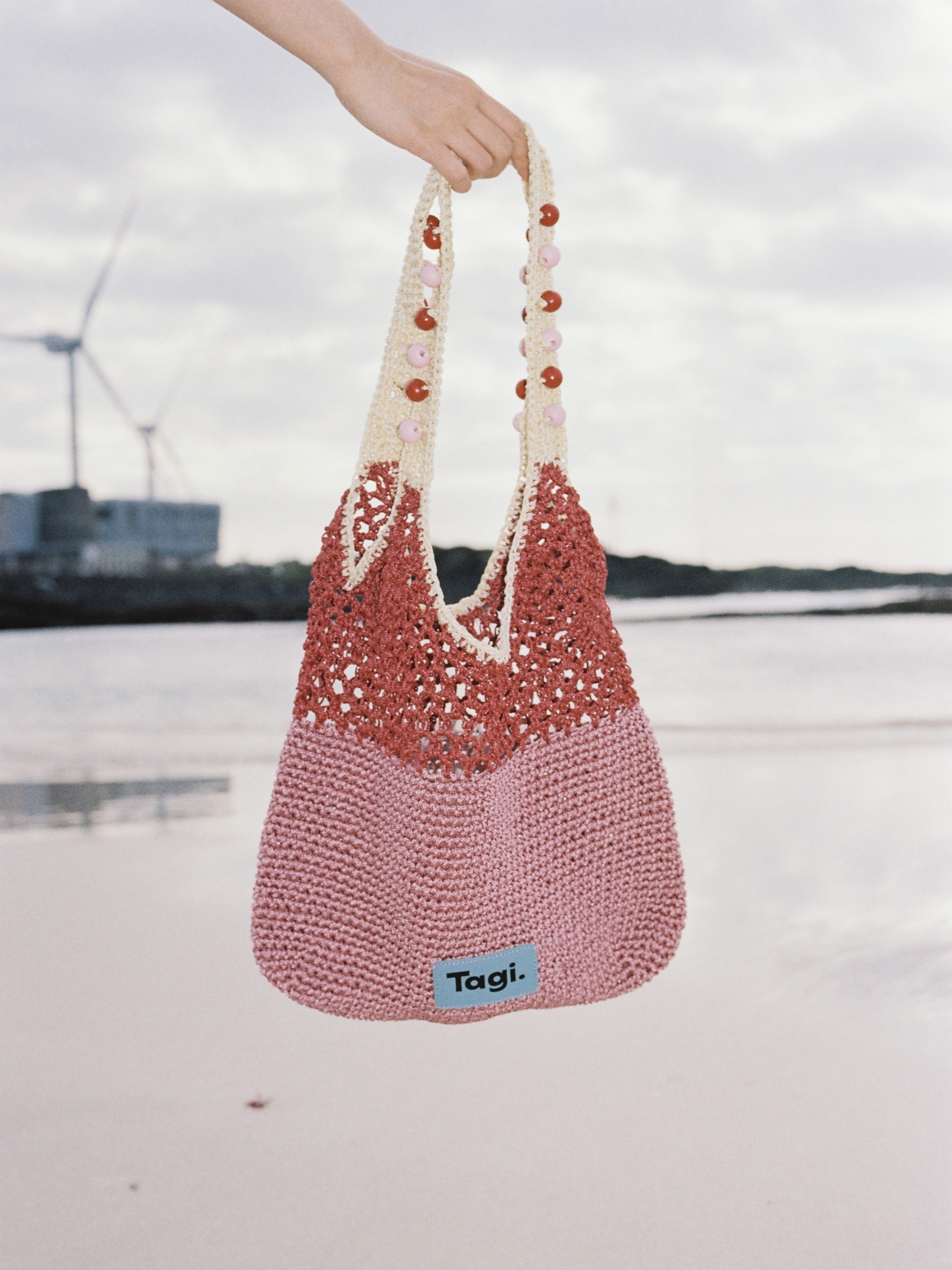 Tagi 机灵果子手工串木珠单肩编织包