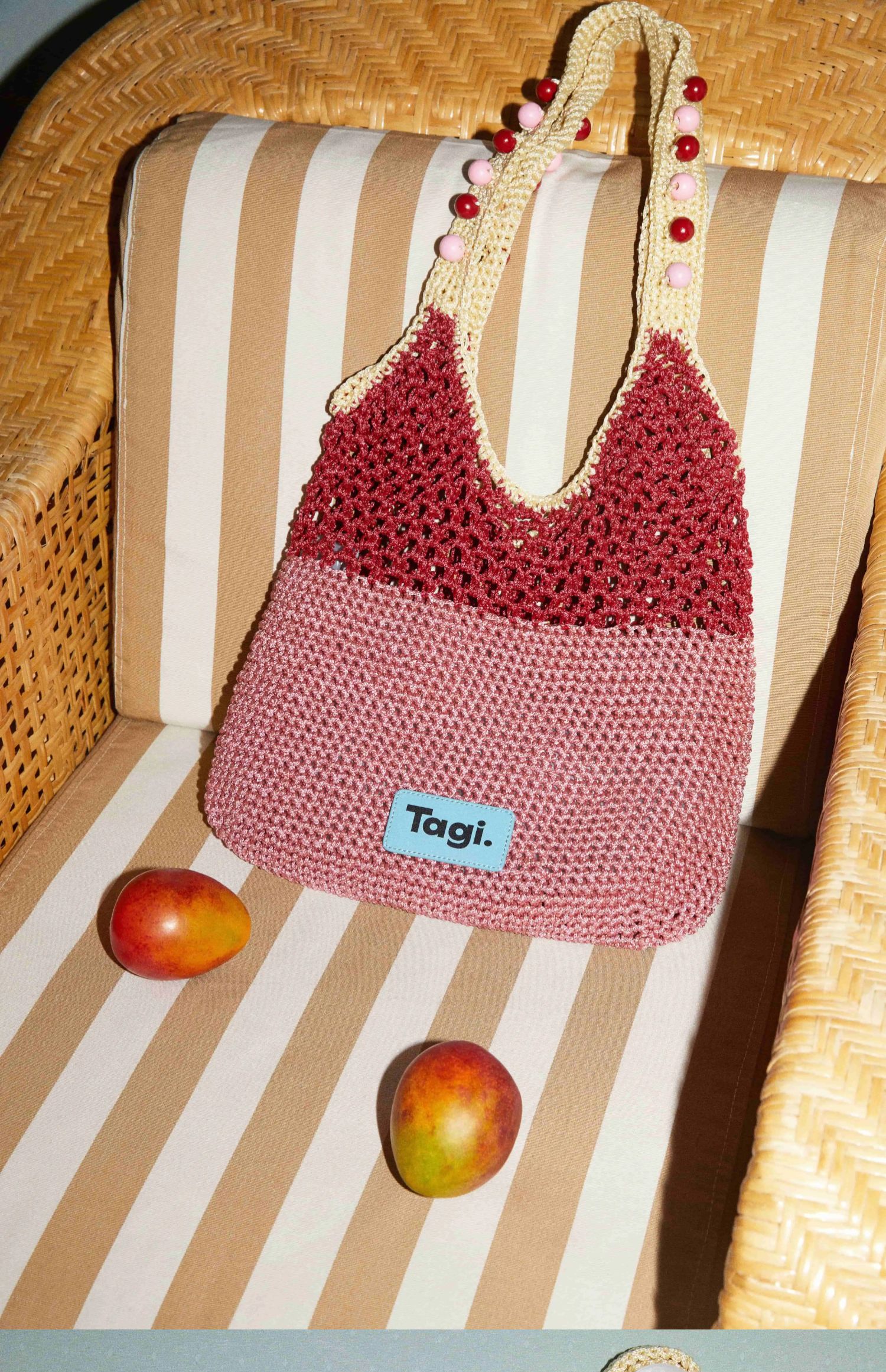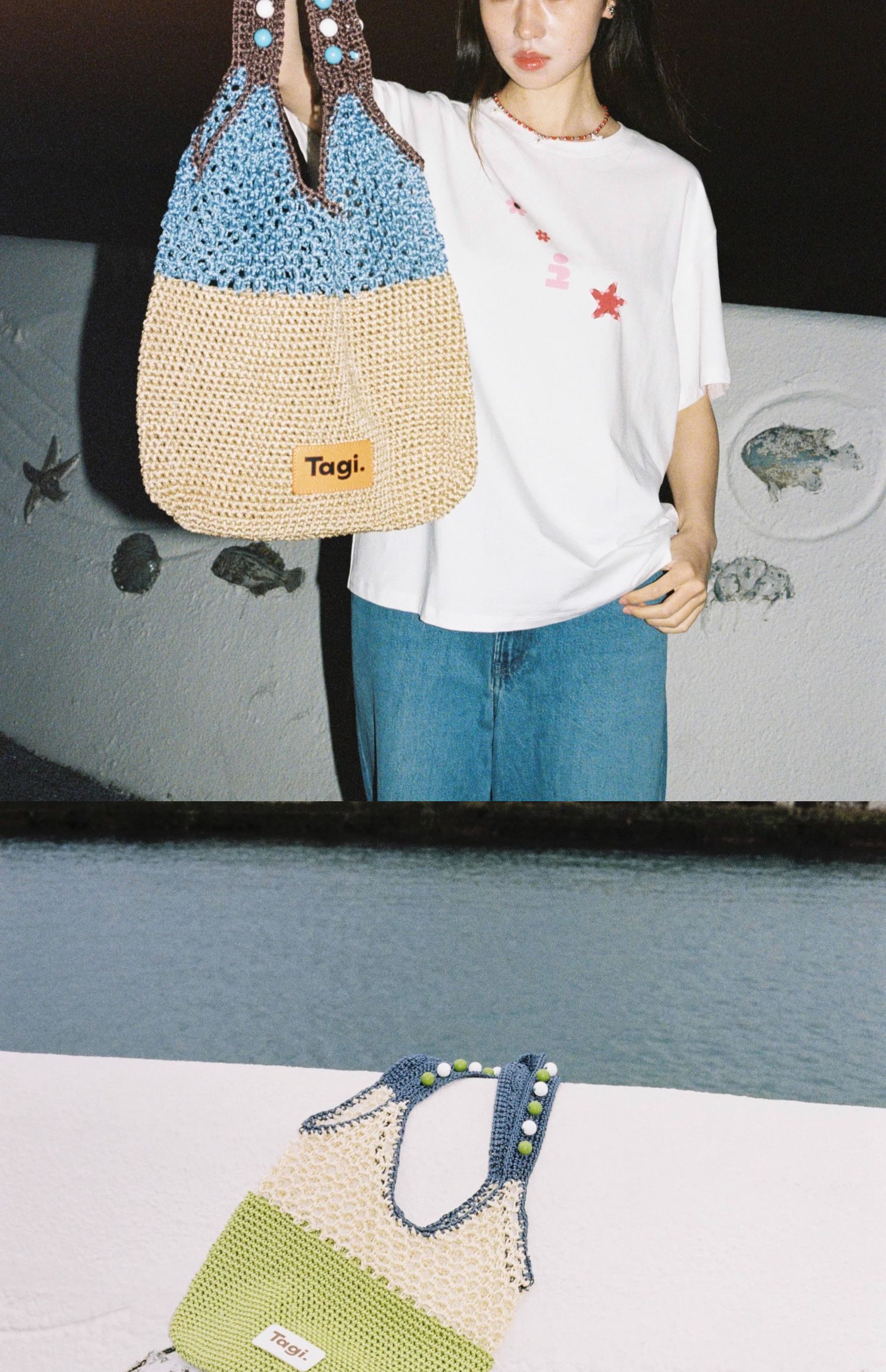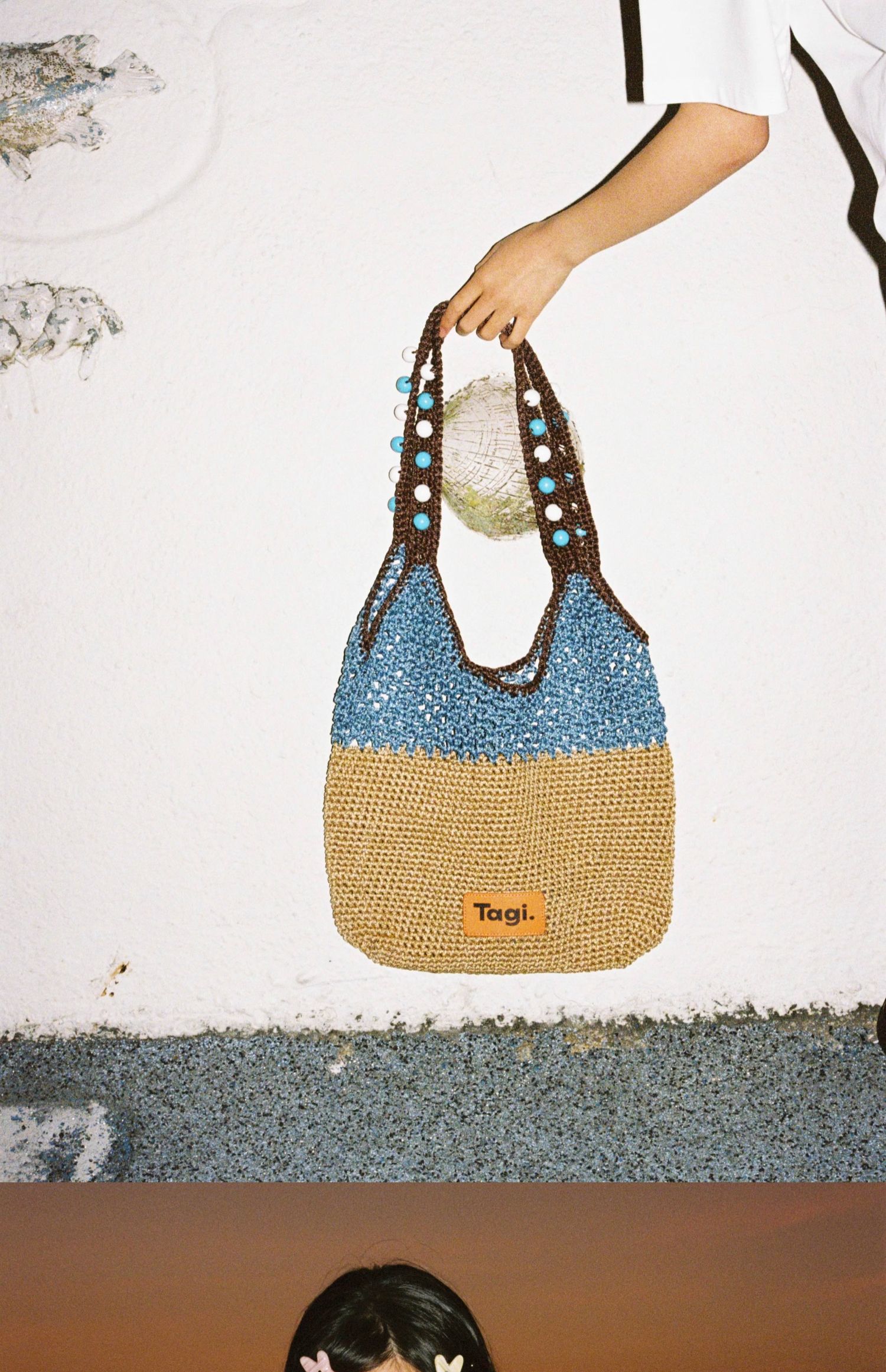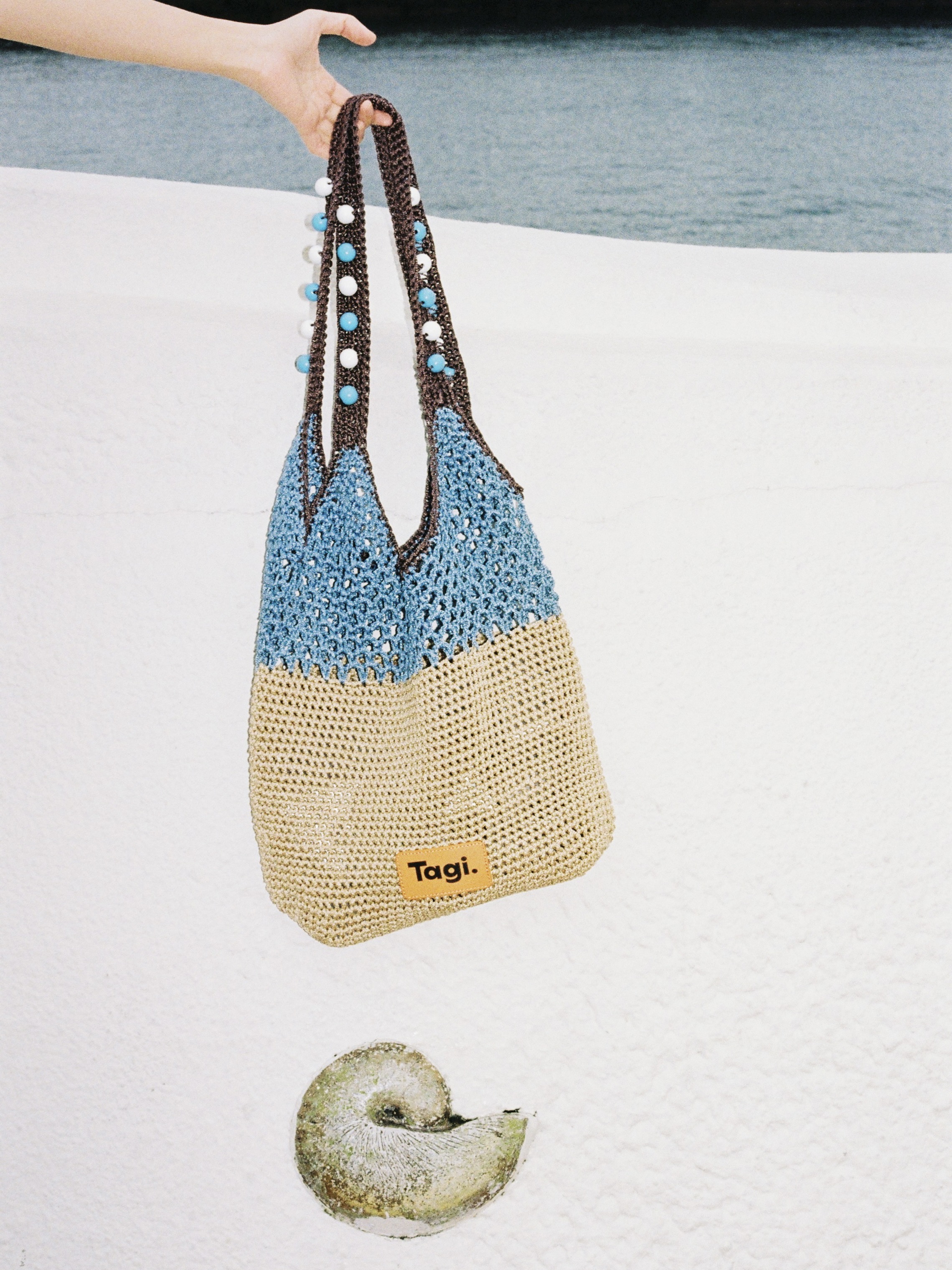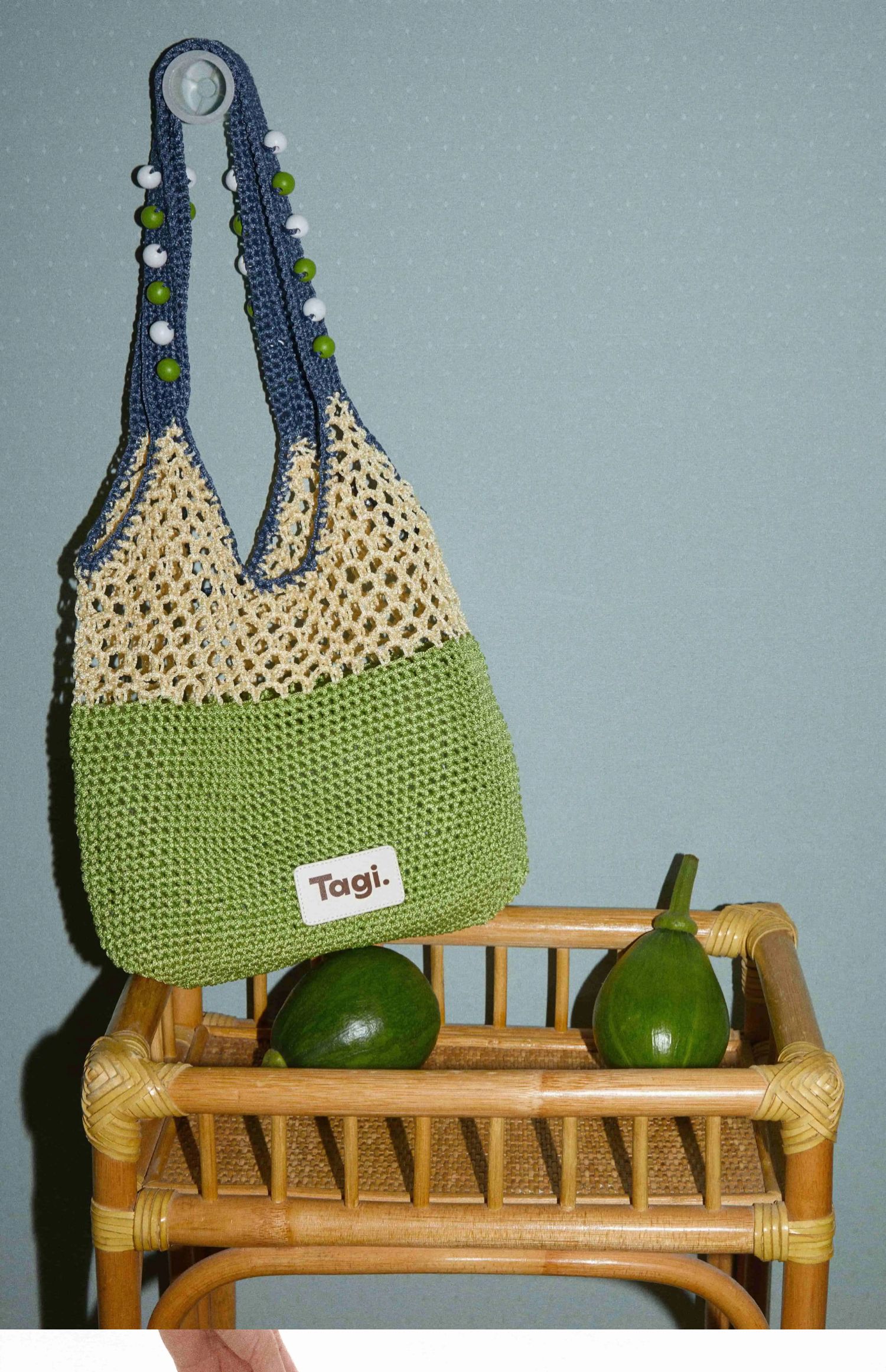 Tagi 机灵果子手工串木珠单肩编织包