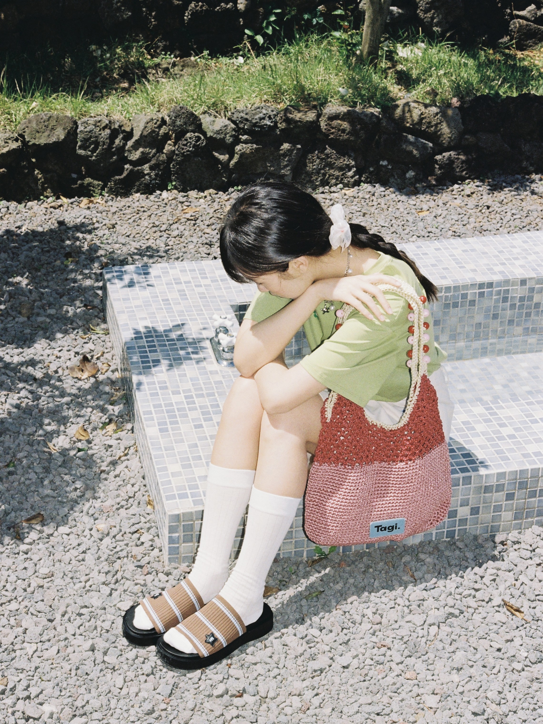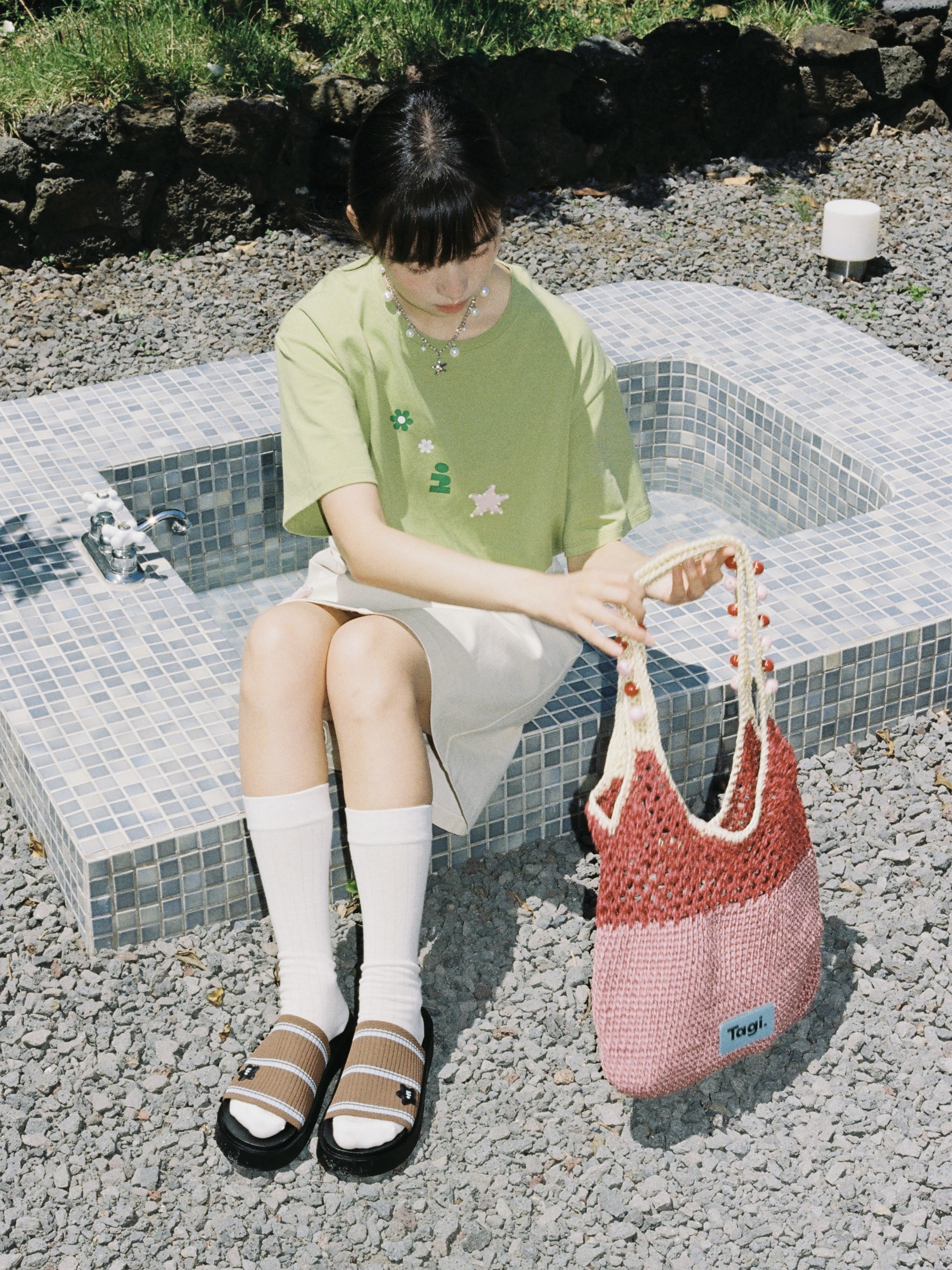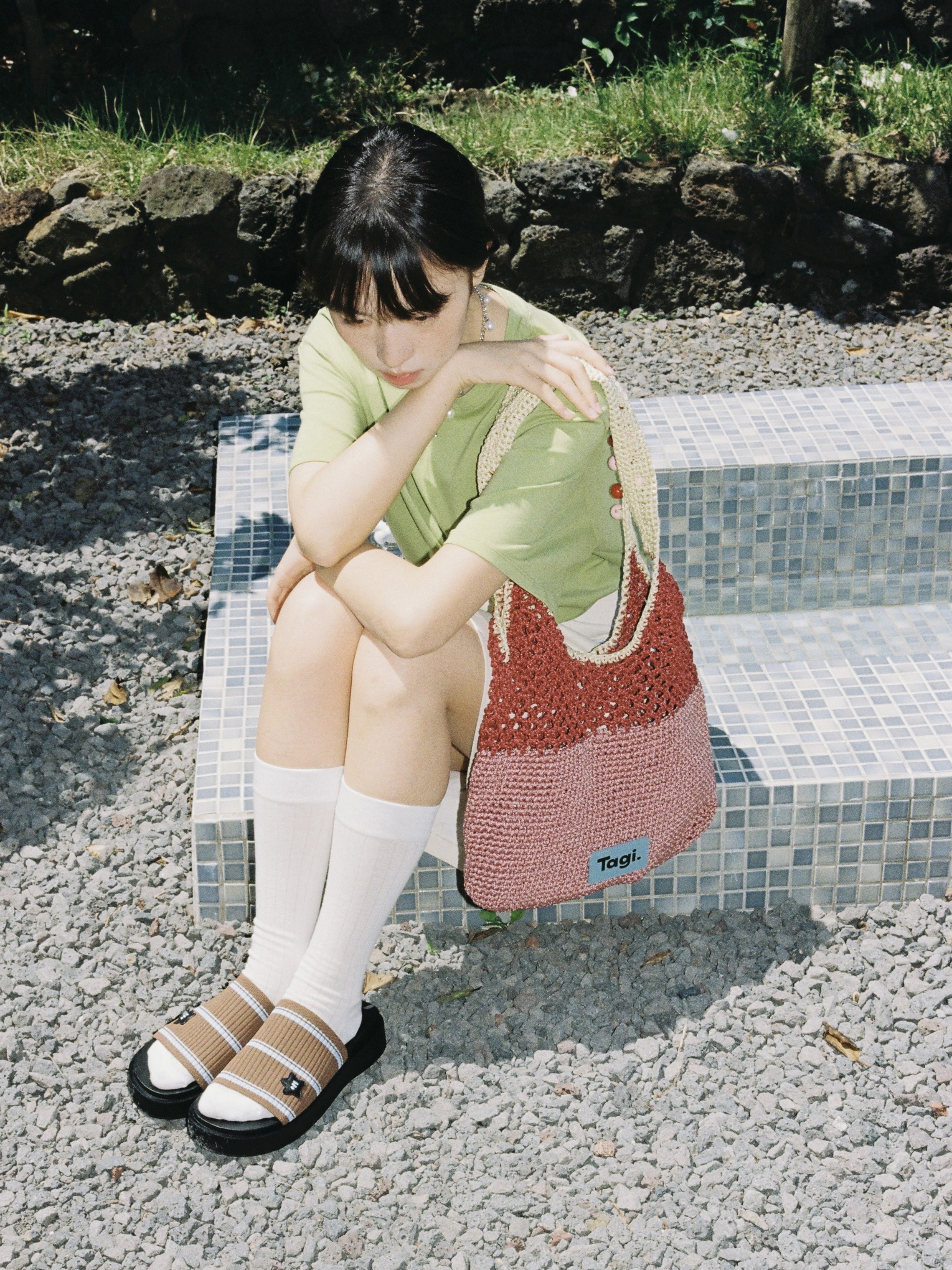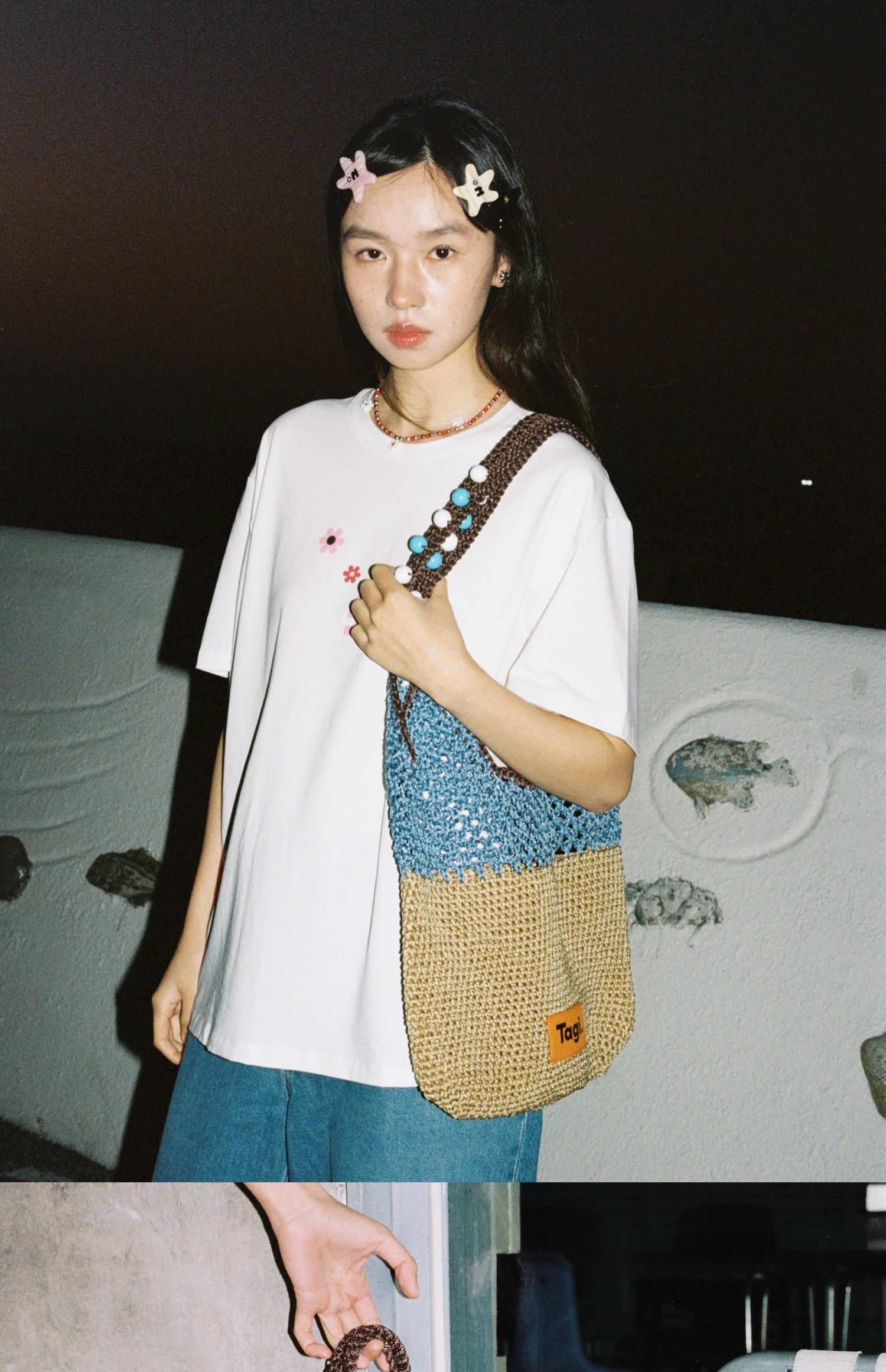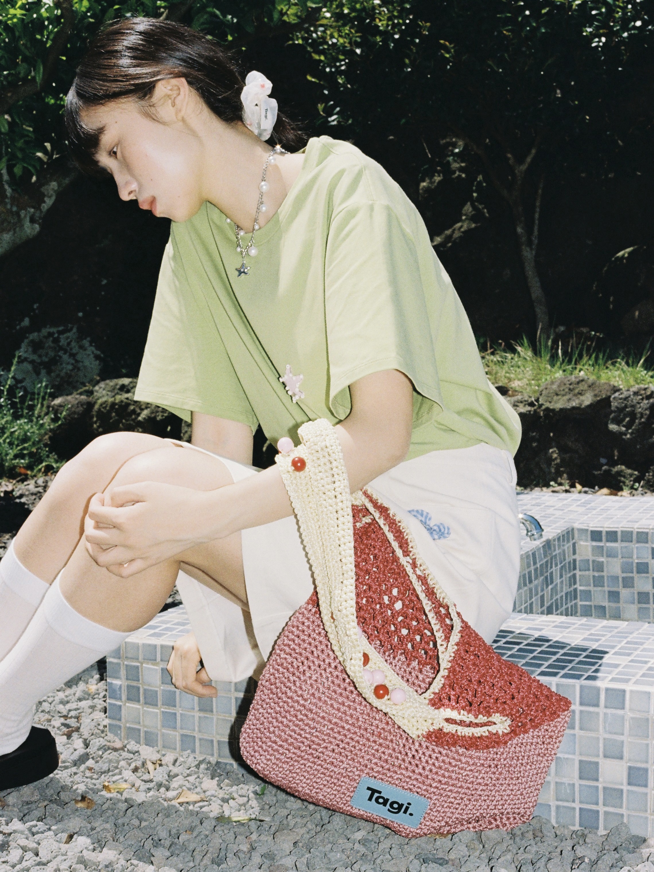 Tagi 机灵果子手工串木珠单肩编织包
