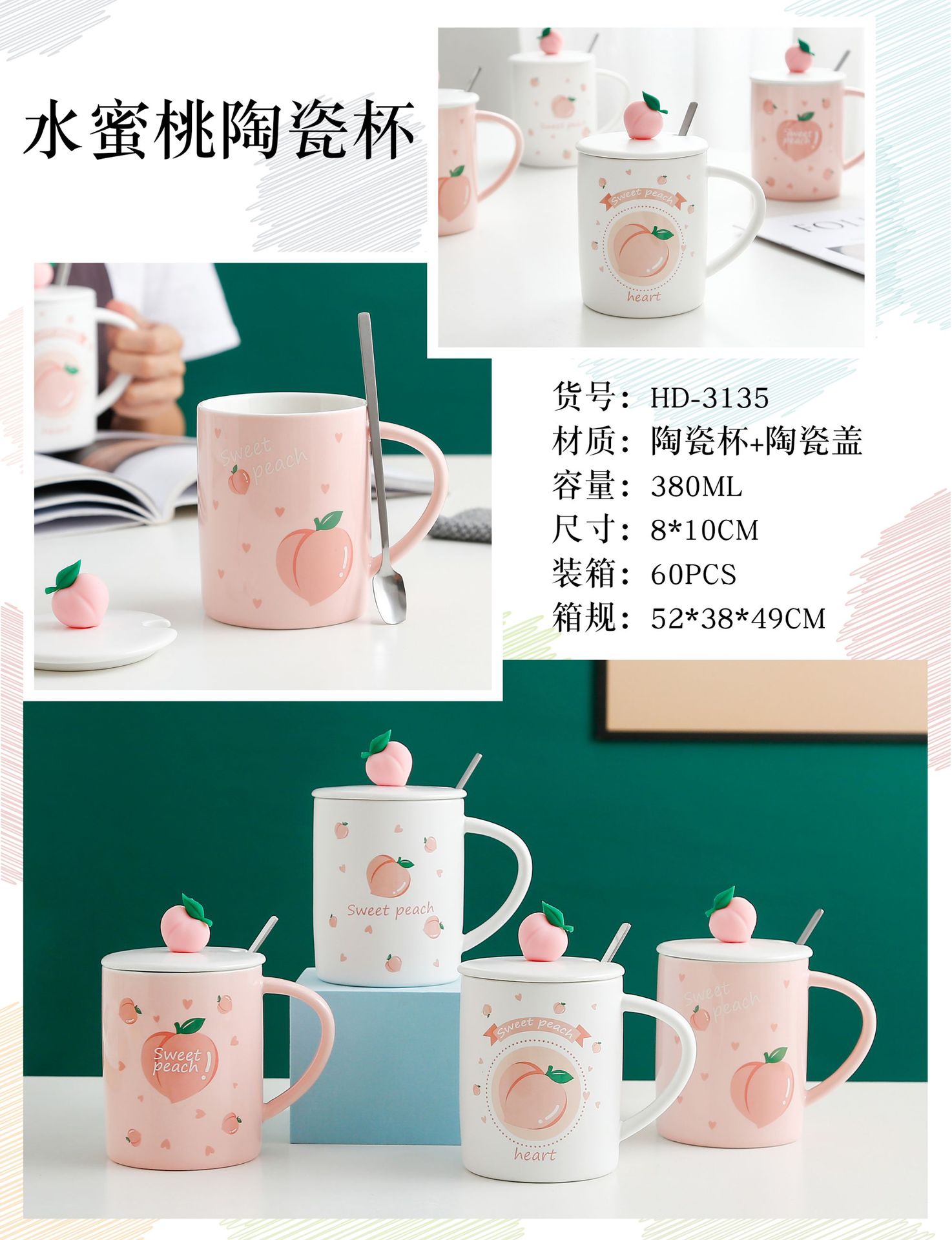恒度马克杯水蜜桃HD-3135可爱水果杯创意卡通女学生高颜值ins陶瓷咖啡早餐杯子
