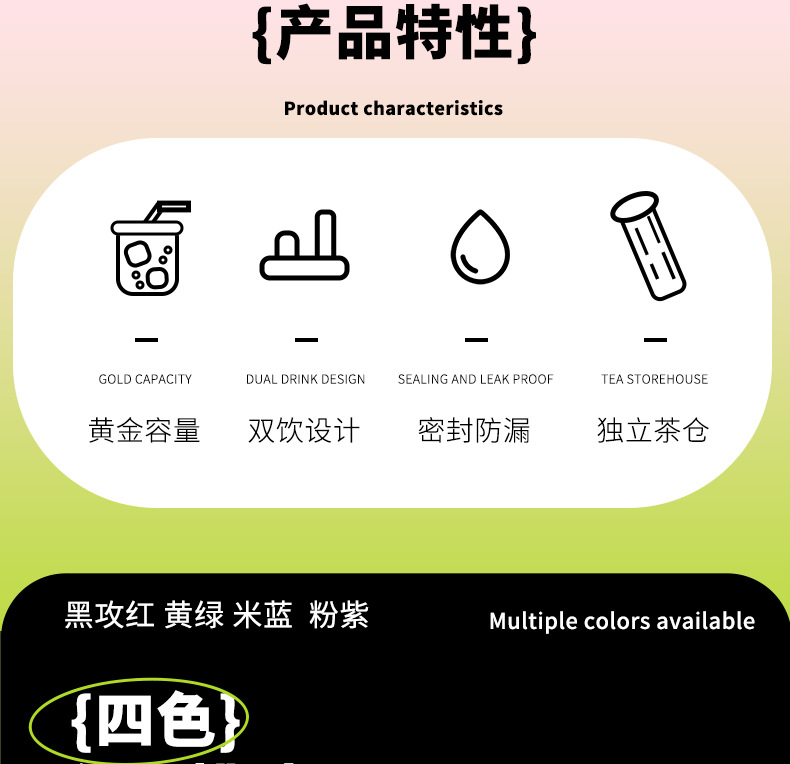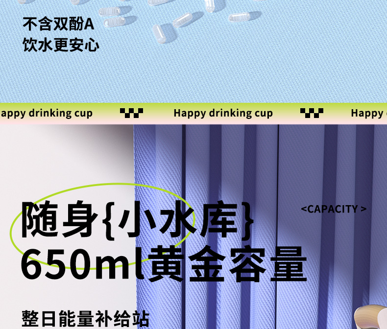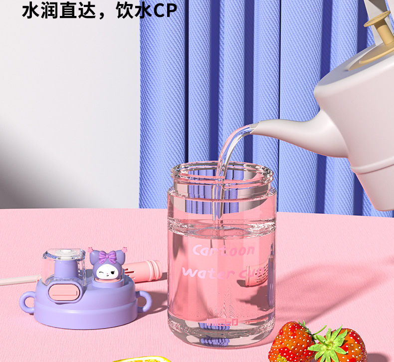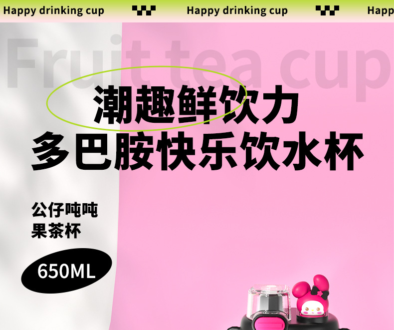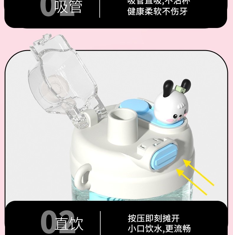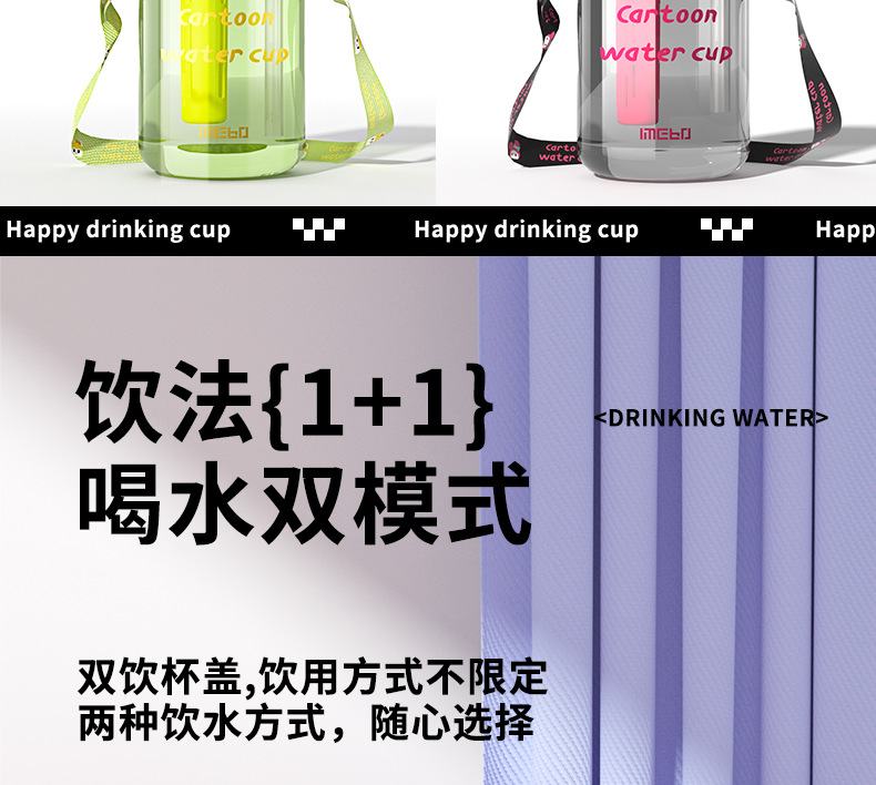 【萌趣双饮塑料杯】女生可爱耐高温便捷多功能 亲子多巴胺爆款水杯