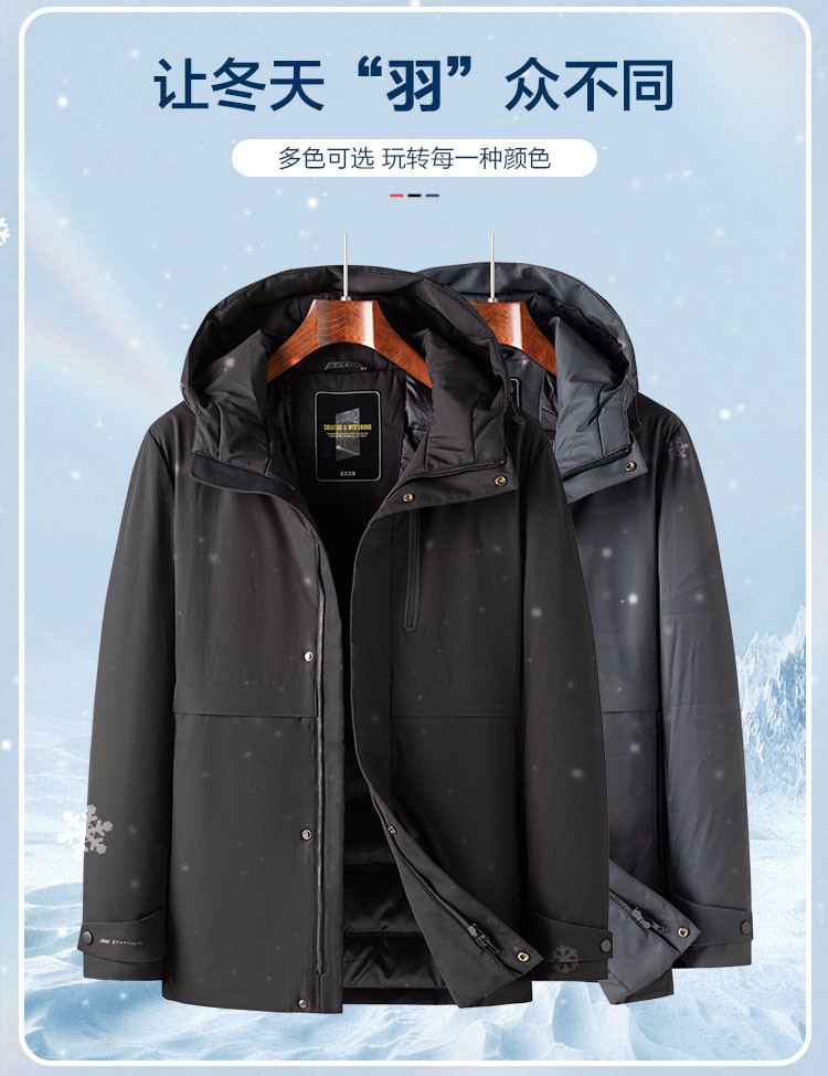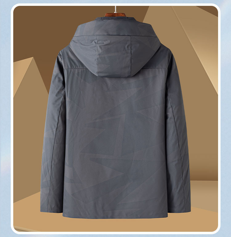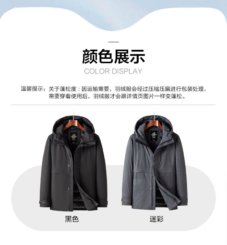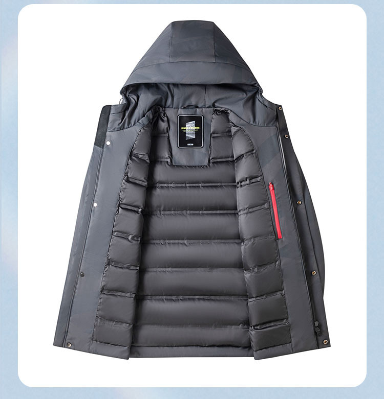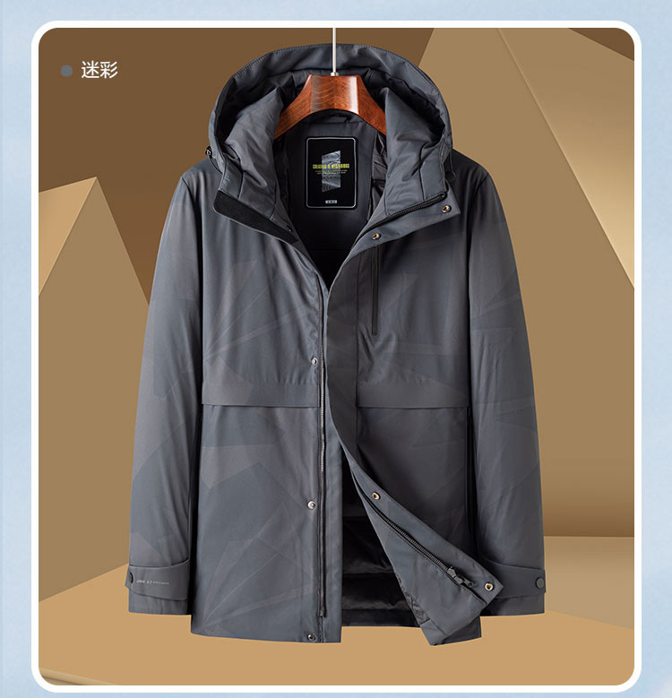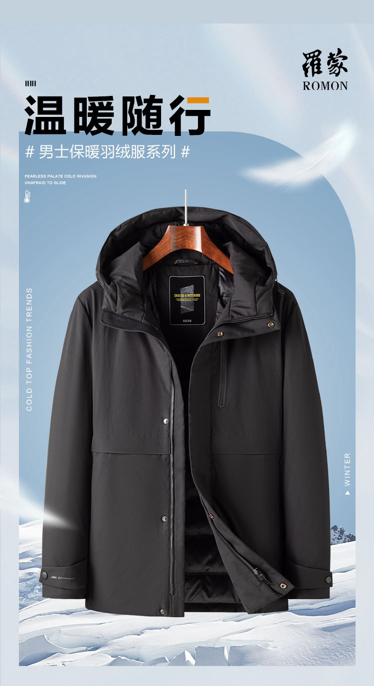【90白鸭绒】罗蒙秋冬男装暗纹迷彩连帽羽绒服男士中长款保暖外套男士羽绒服