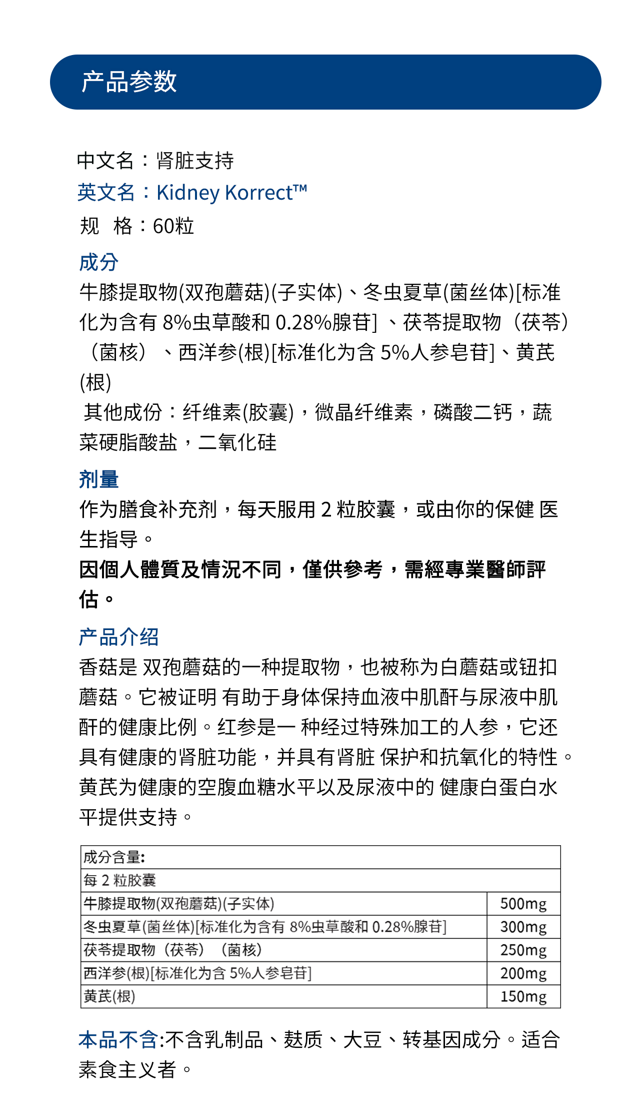 美国DFH 肾脏支持 Kidney Korrect™ #草本植物配方#牛膝提取物#冬虫夏草提取物#茯苓提取物 60粒