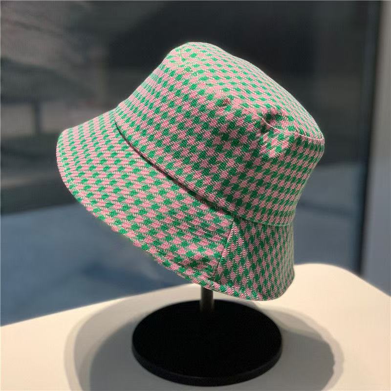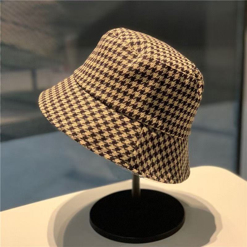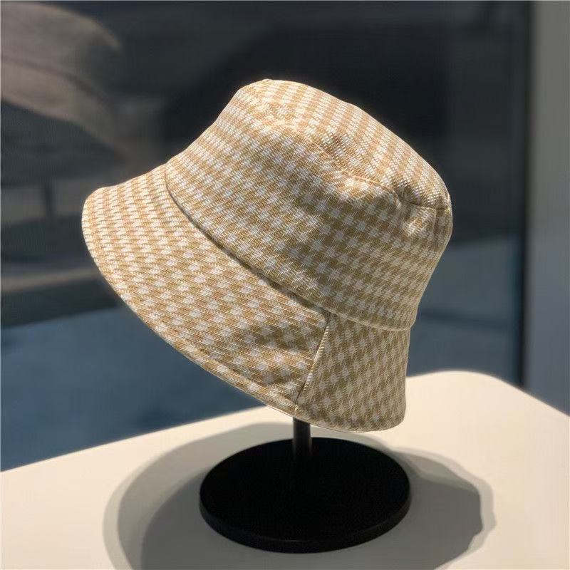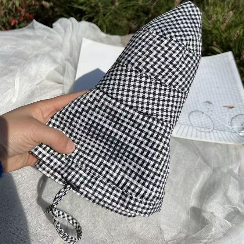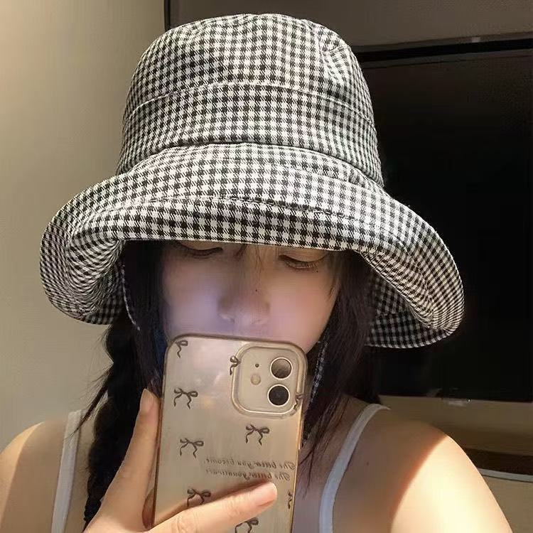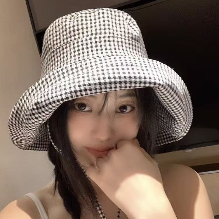 千鸟格渔夫帽 女夏季大檐防紫外线户外遮阳防晒时尚百搭太阳帽盆帽