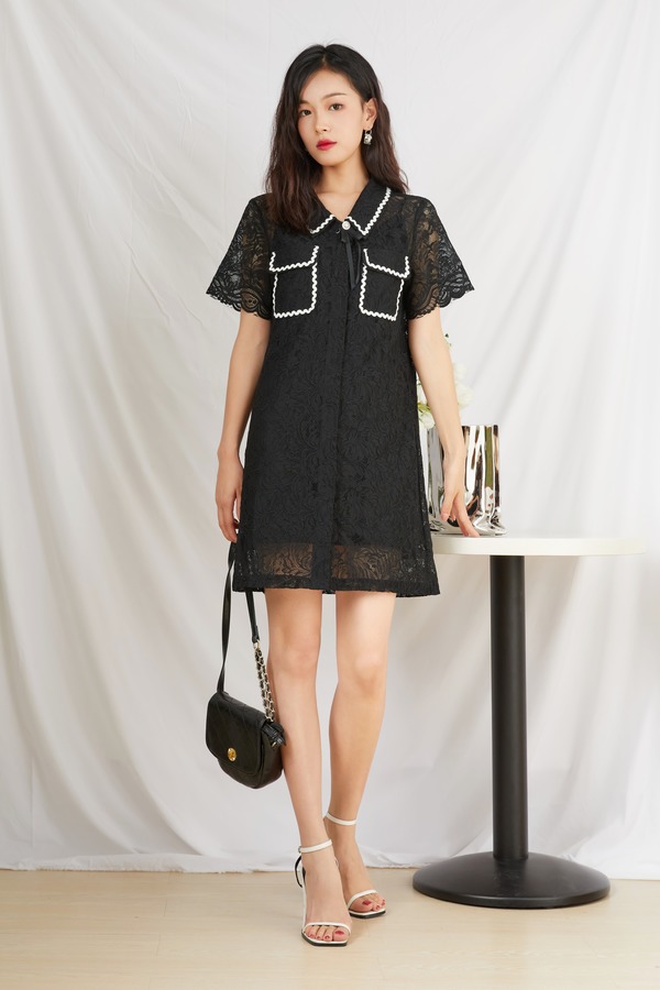 amadella 蕾丝撞色花边蝴蝶领结连衣裙 13093