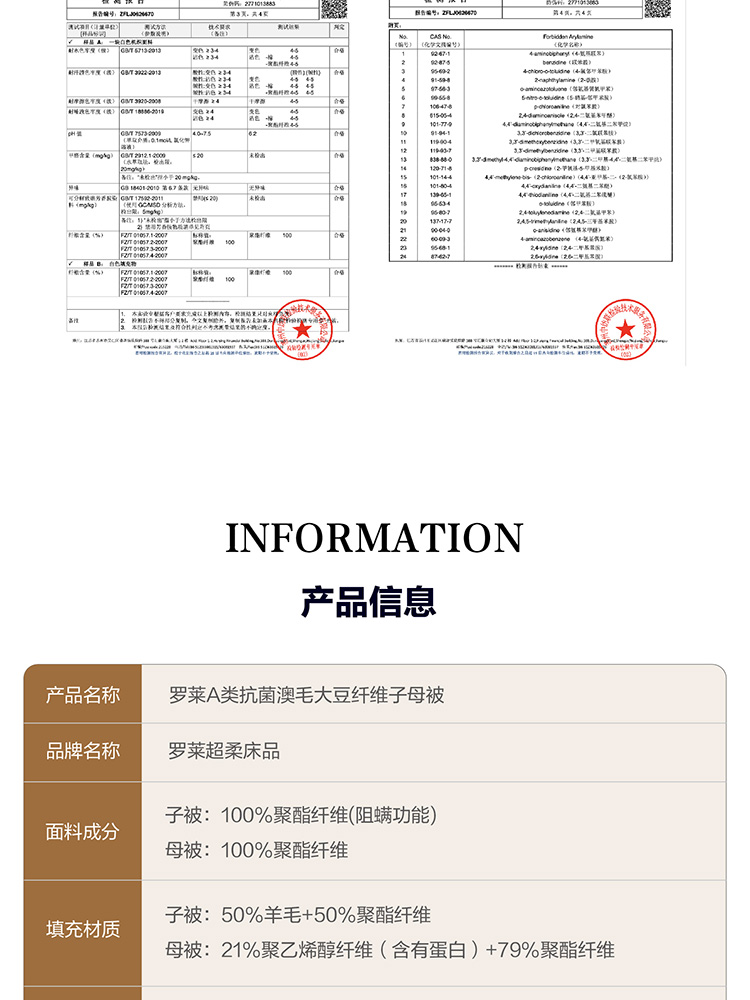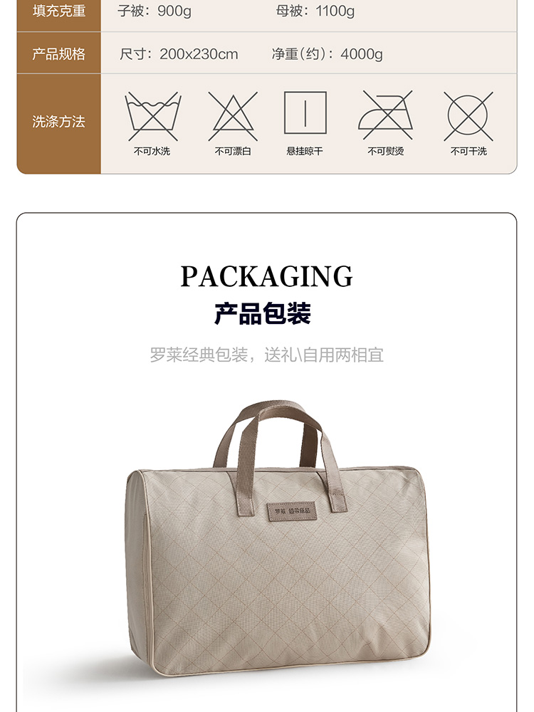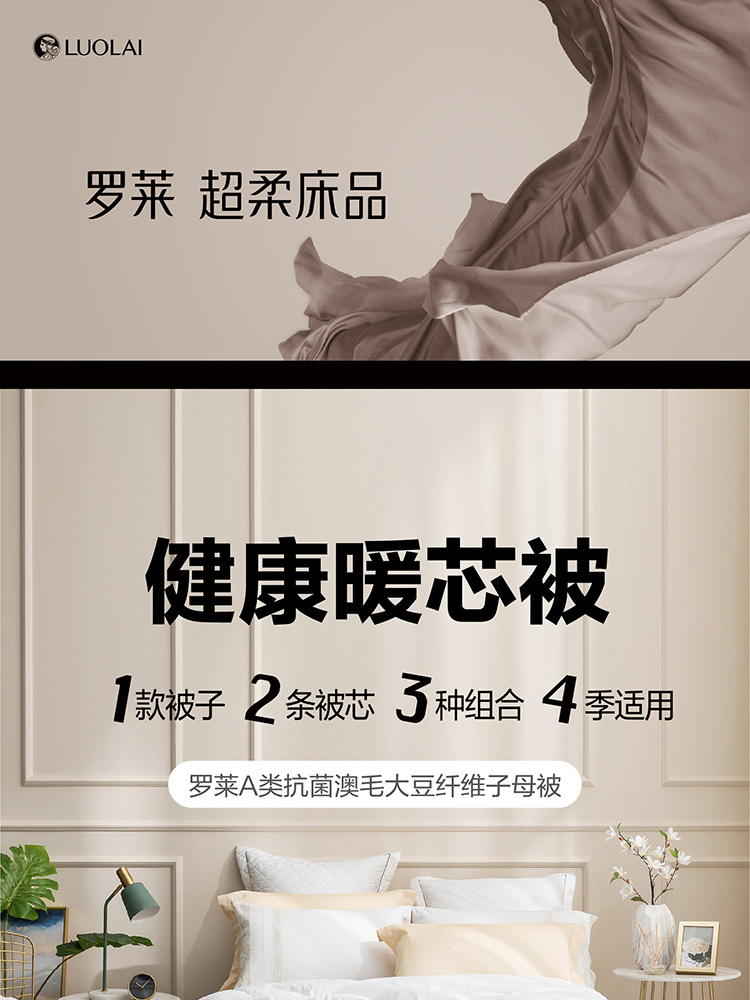 【自营】 罗莱 A类抗菌澳毛大豆纤维子母被 被子 200*230cm*2条装