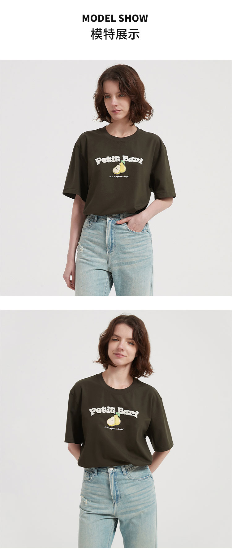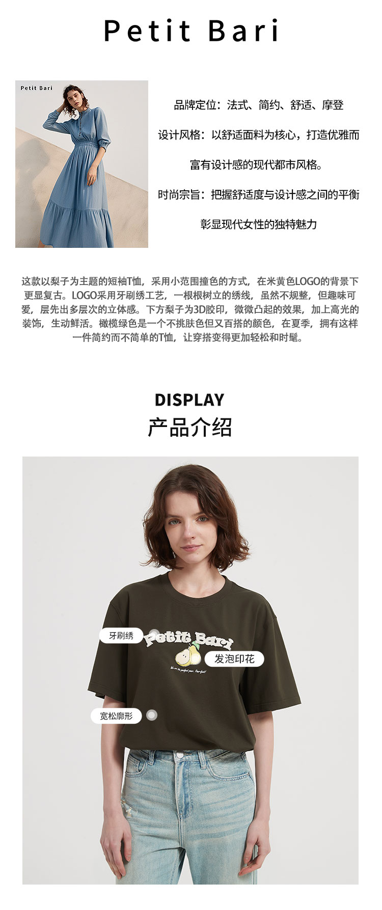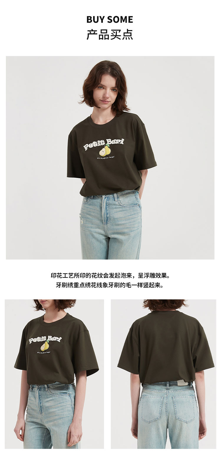 【2件9折】【Petit Bari】梨子牙刷绣印花短袖T恤宽松休闲