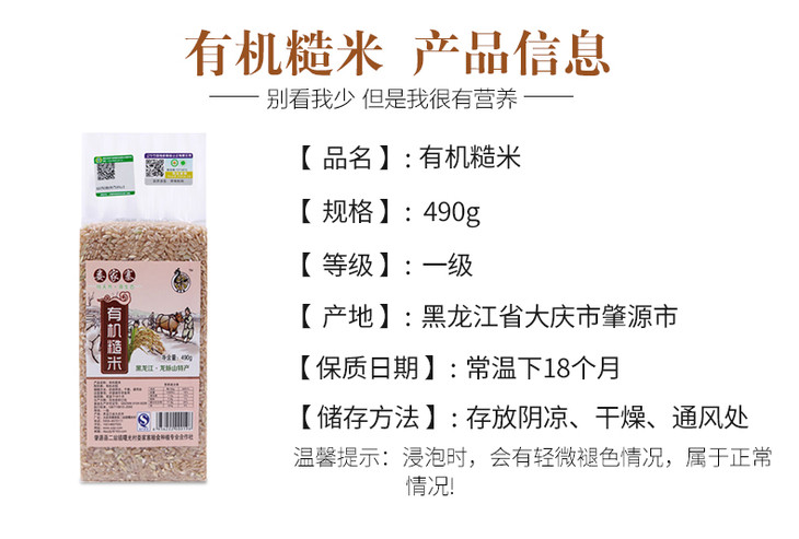 娄家寨有机糙米490g*2袋 东北黑龙江糙米支持自提