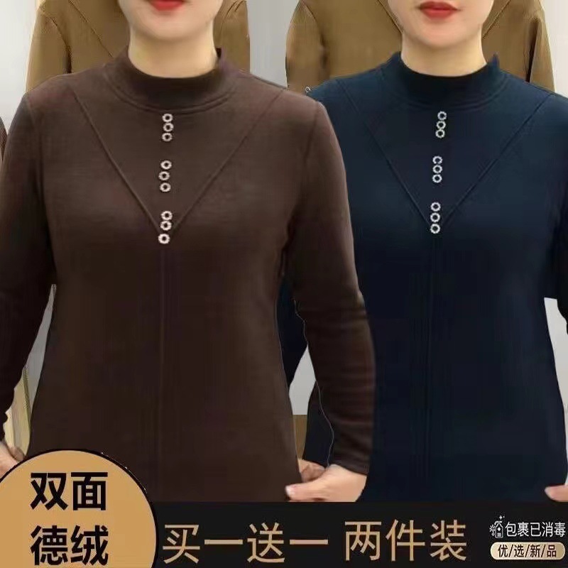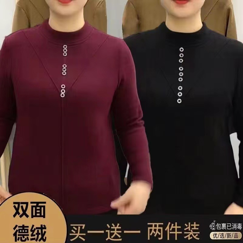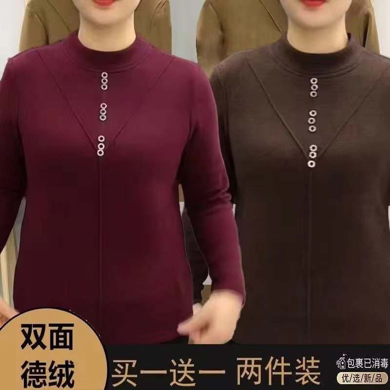 【买一送一】妈妈装德绒双面绒加厚打底衫中老年女装冬装保暖内衣冬装洋气上衣中年女士长袖体恤衫