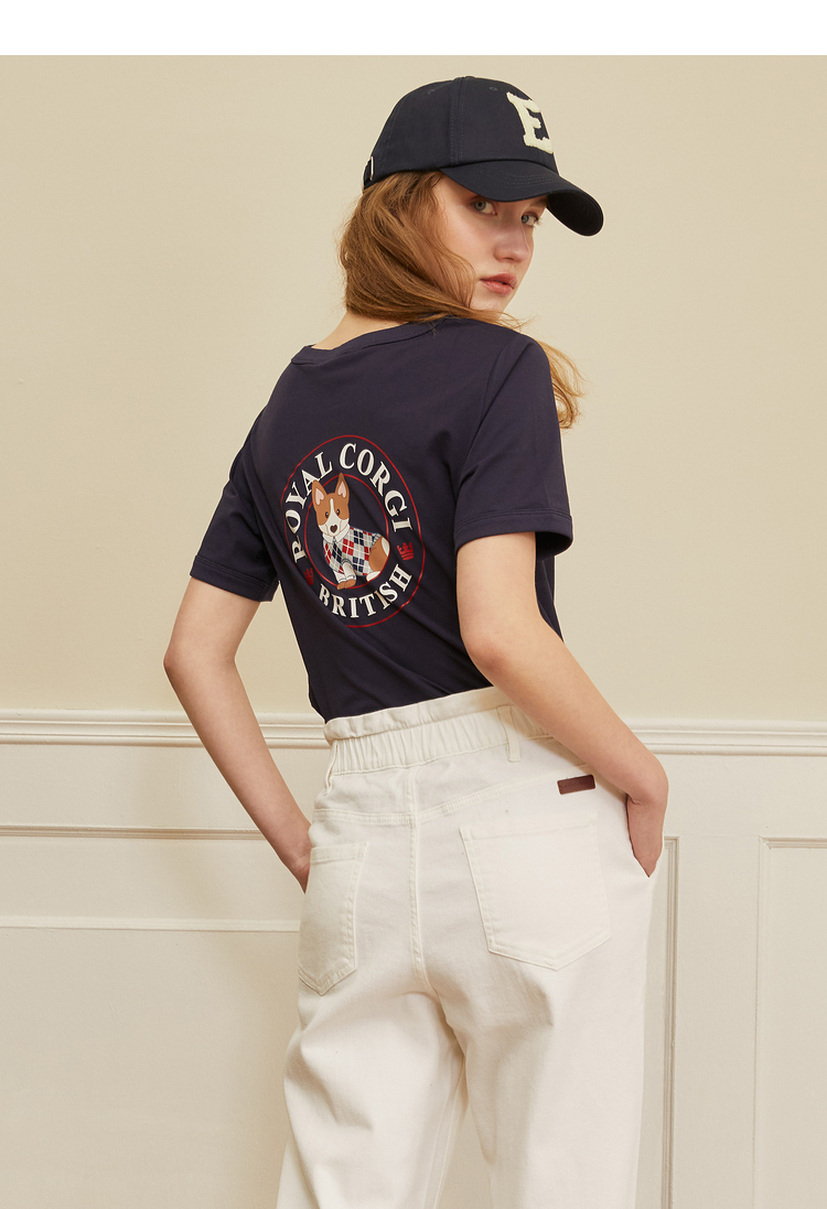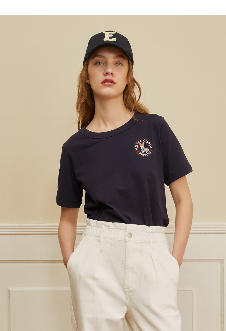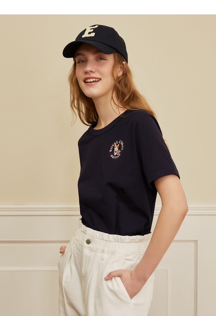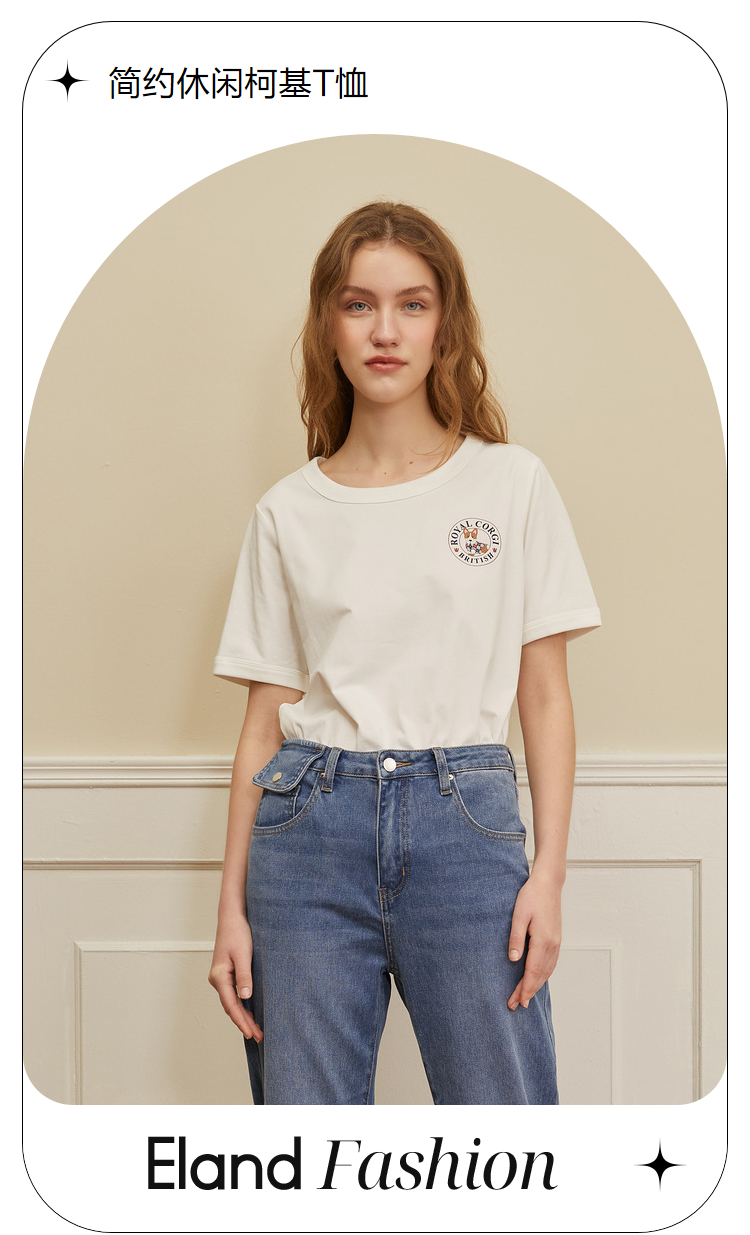 ELAND衣恋2022年春季新款时尚洋气设计感宽松显瘦纯色柯基T恤女EERAC23H1M