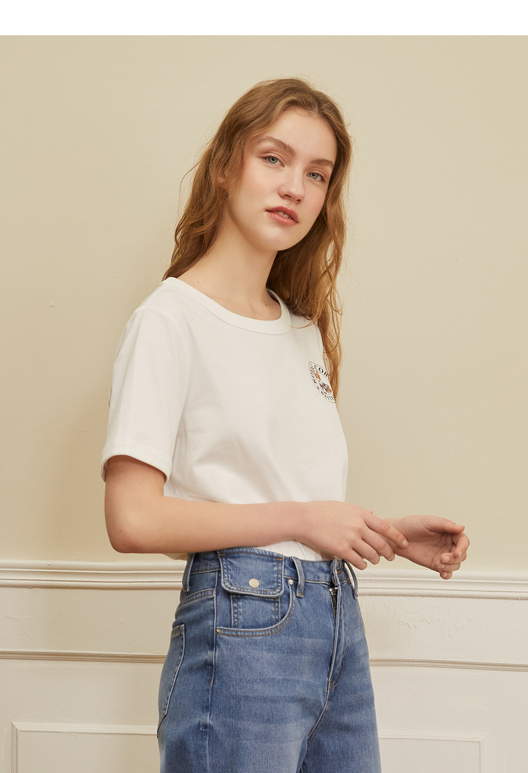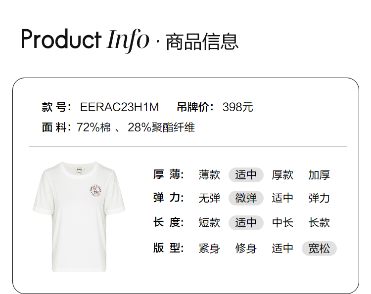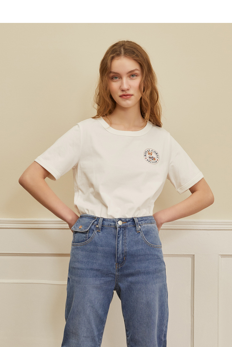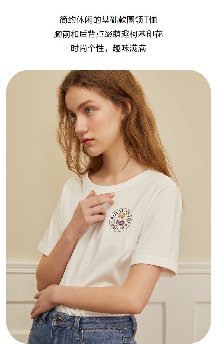 ELAND衣恋2022年春季新款时尚洋气设计感宽松显瘦纯色柯基T恤女EERAC23H1M