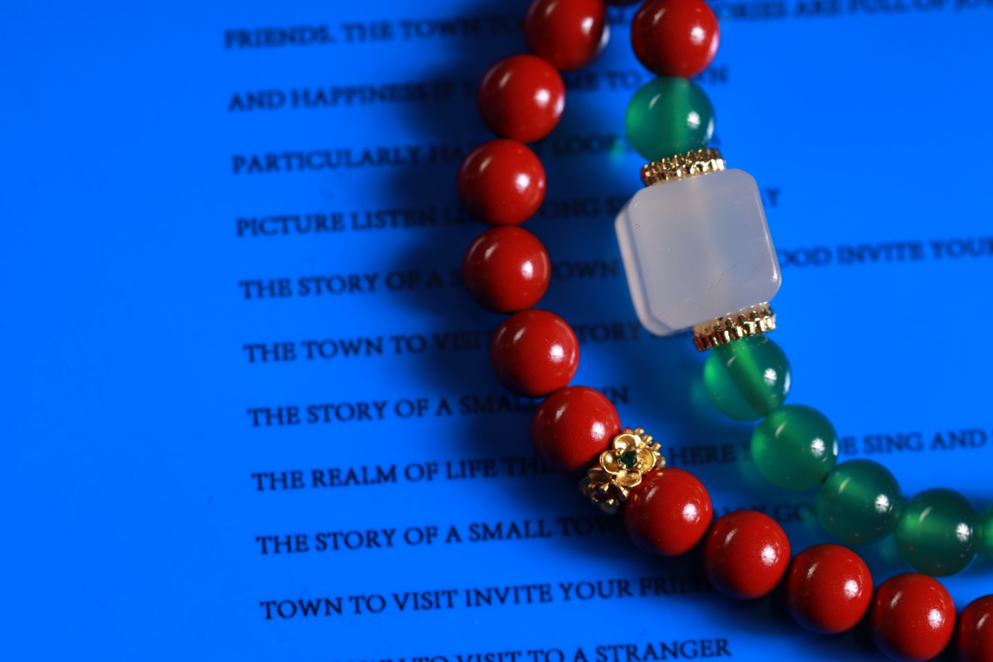 | 配件 | 绿玛瑙,沙金彩色花,树脂珠金色,沙金平安喜乐小吊牌,沙金白玛瑙方糖 |