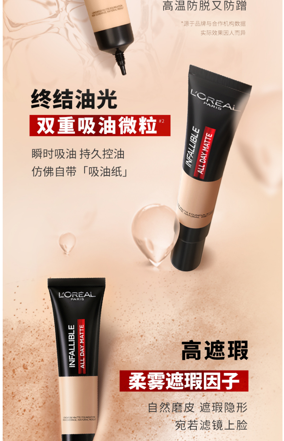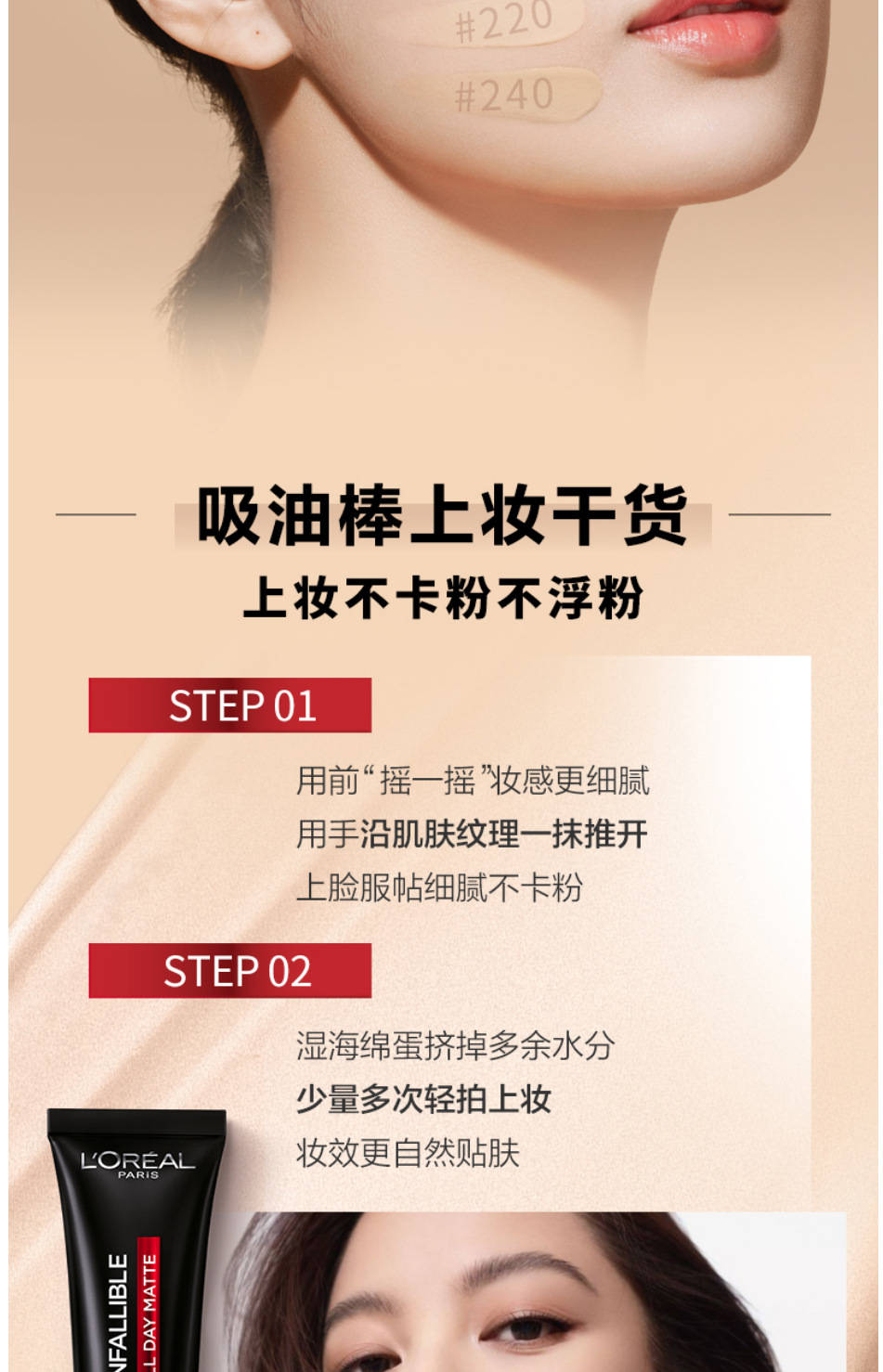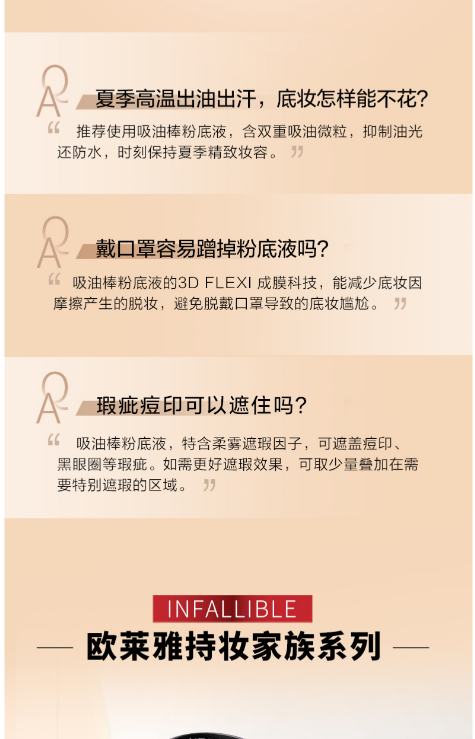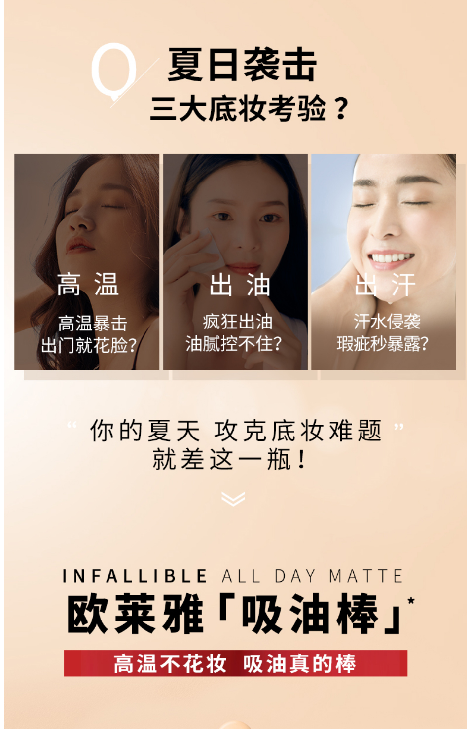欧莱雅恒放溢彩持色哑光粉底液吸油棒