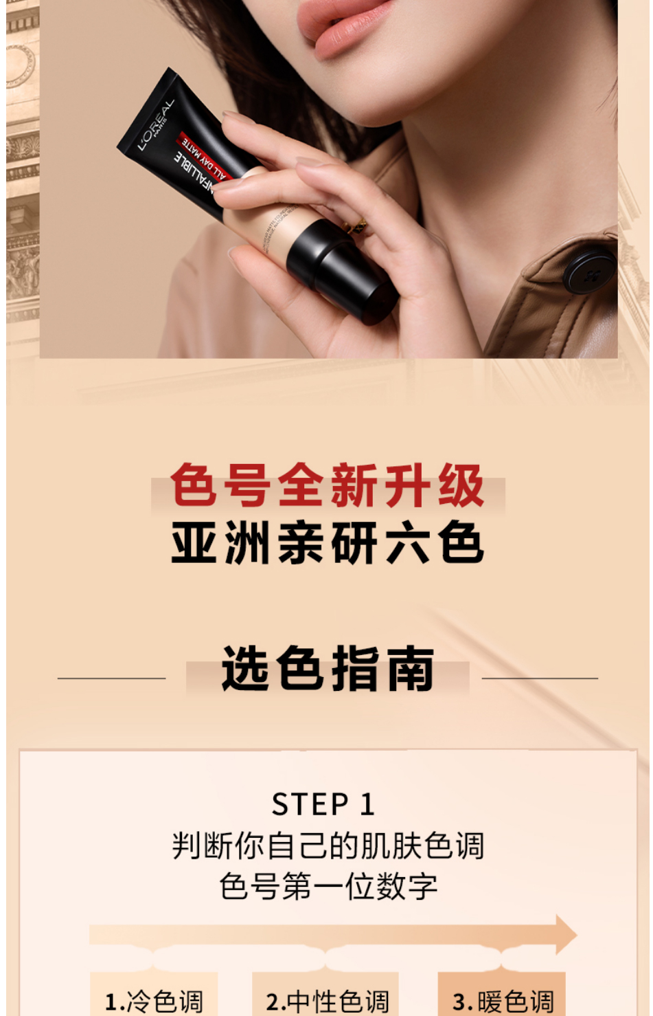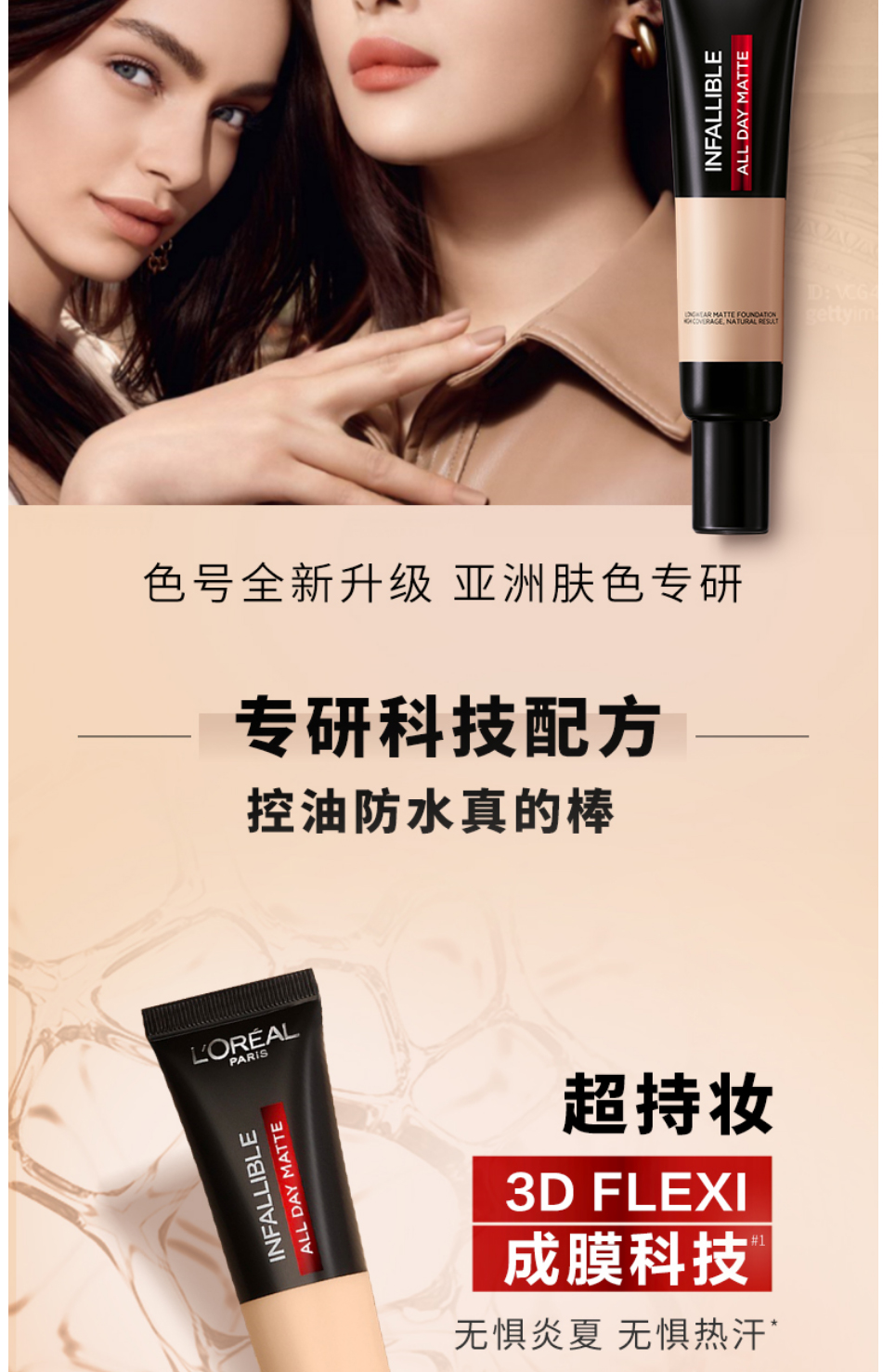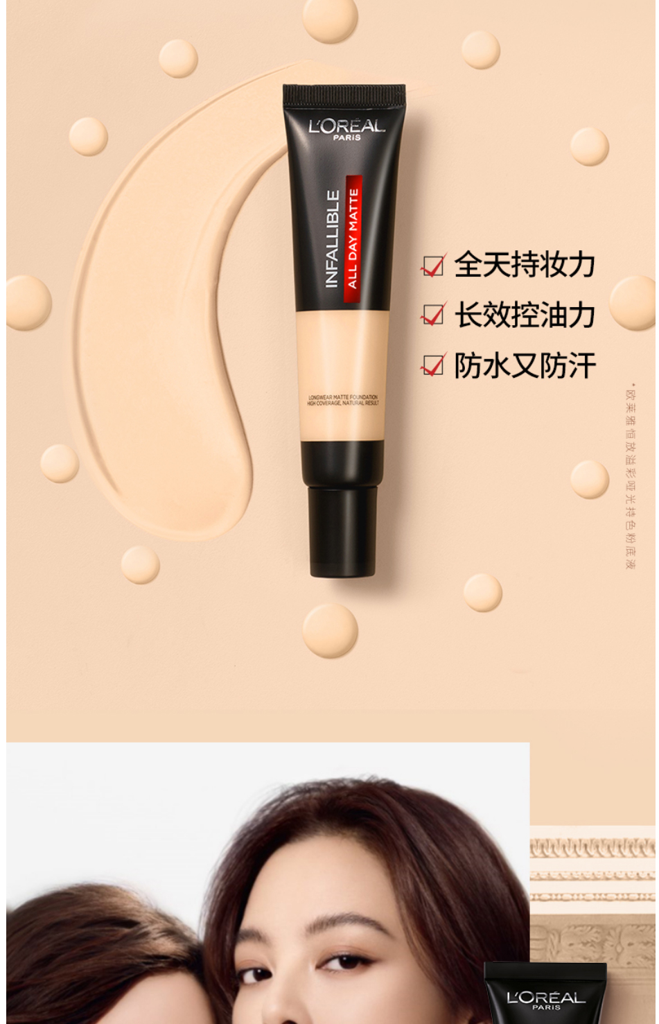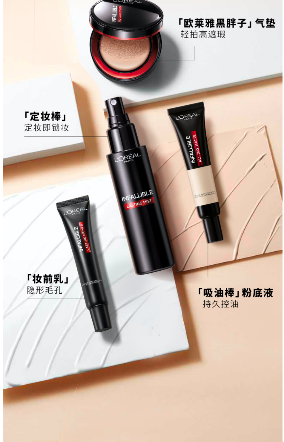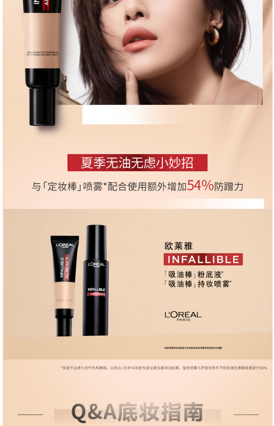 欧莱雅恒放溢彩持色哑光粉底液吸油棒