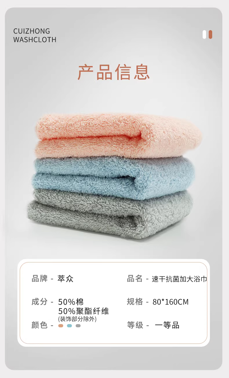 萃众414速干抗菌加大浴巾-244206XXU