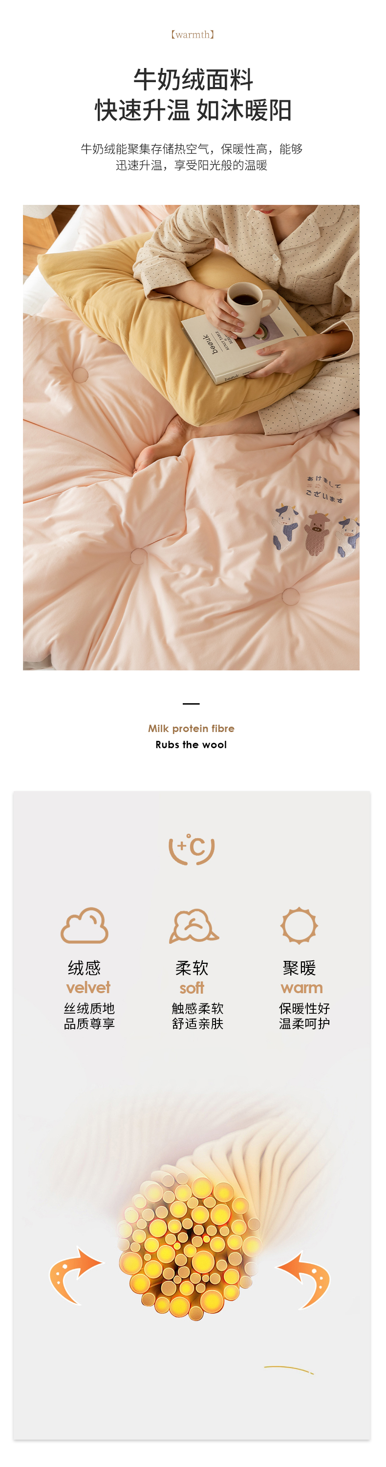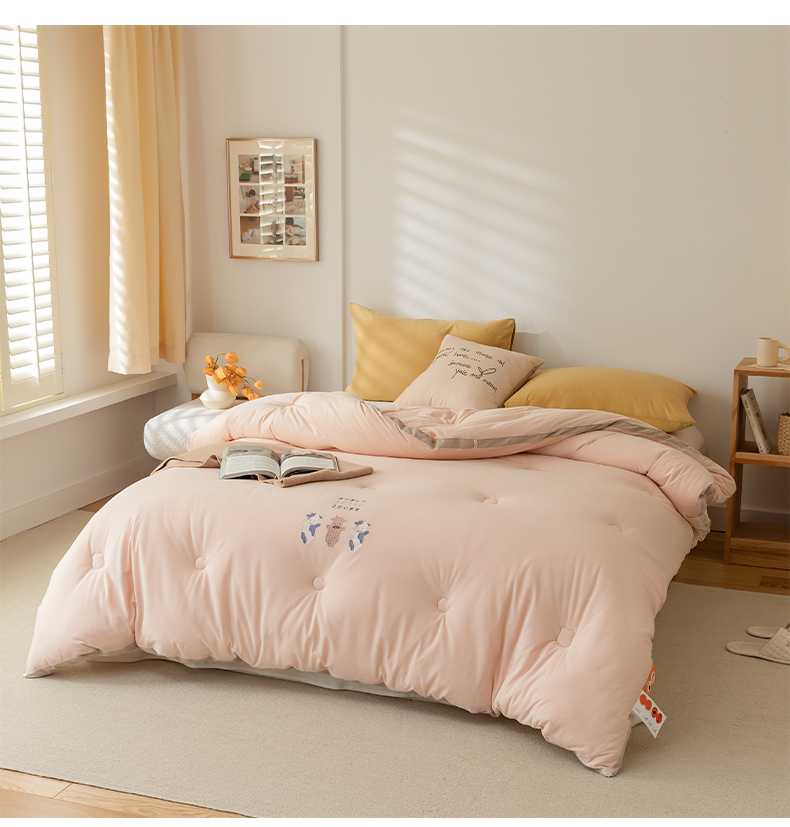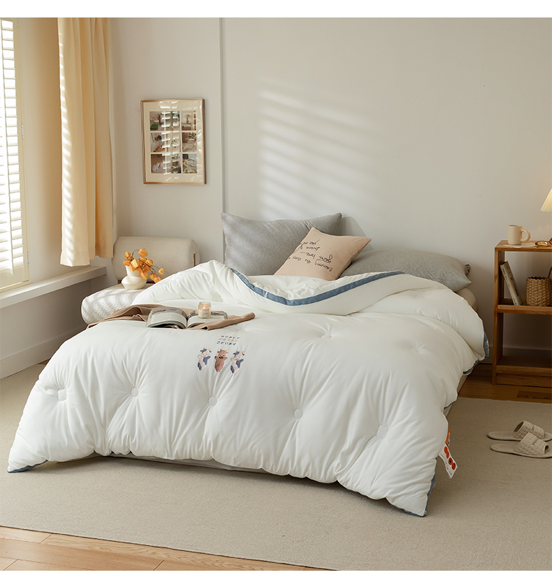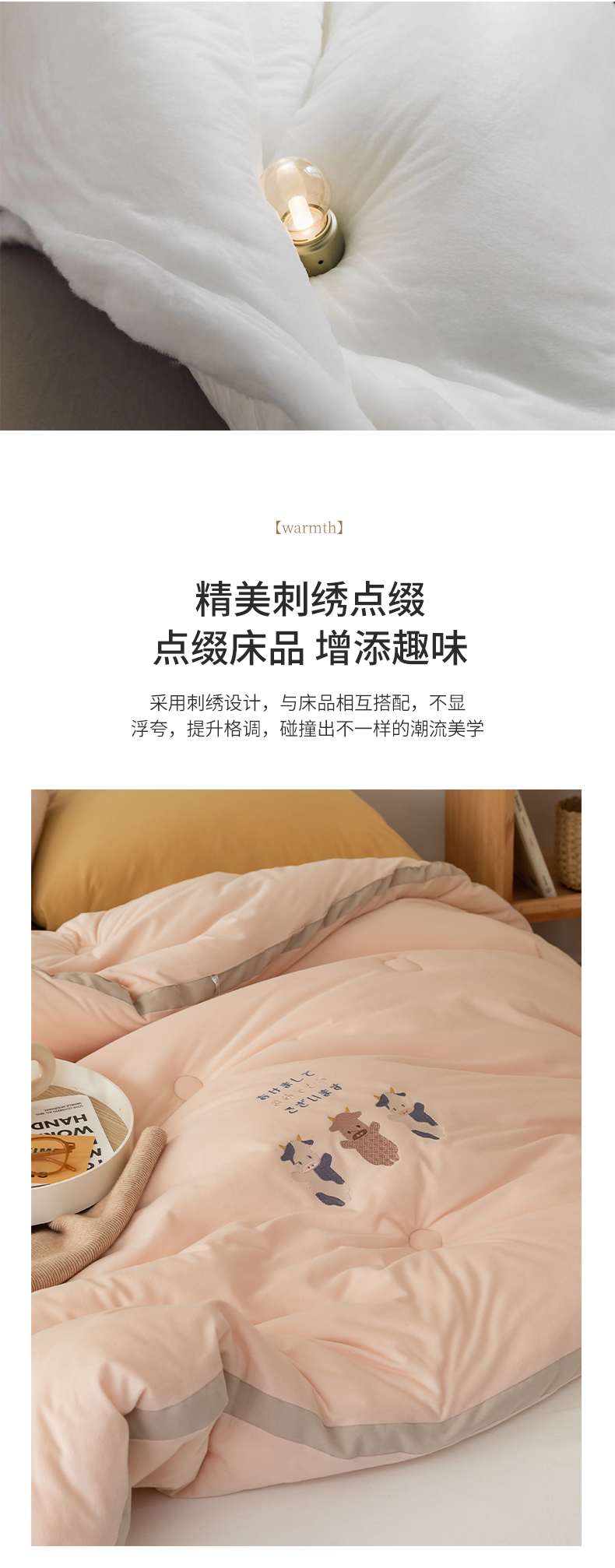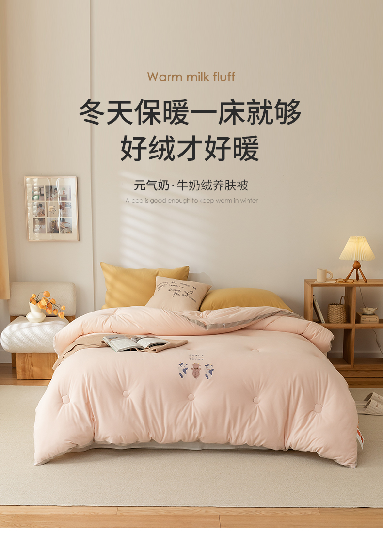 自然醒牛奶绒养肤被子家用磨毛卡通刺绣款被芯四季通用冬被加厚保暖单人春秋被LFS
