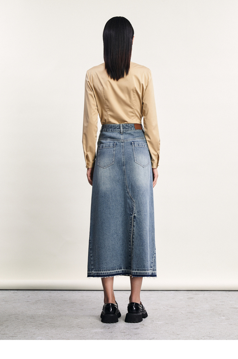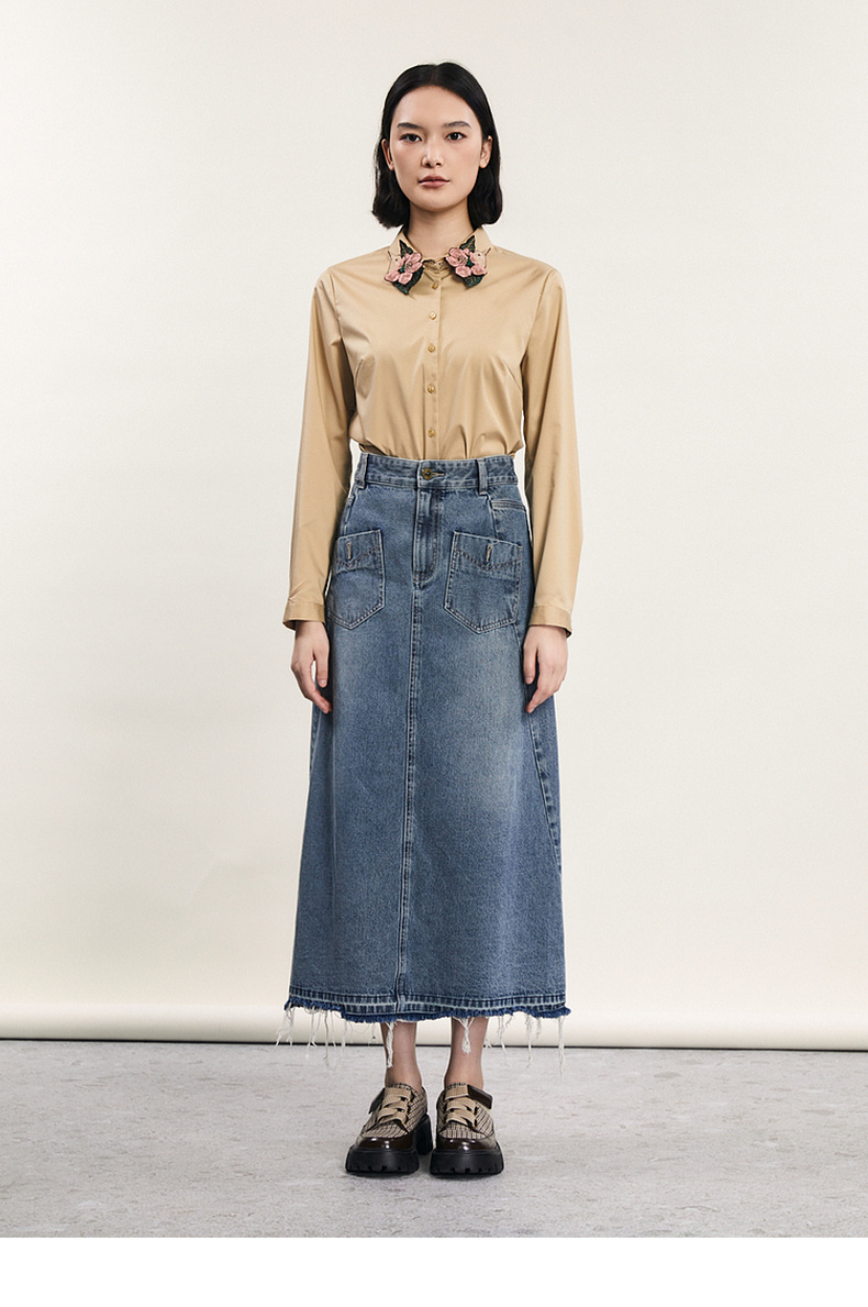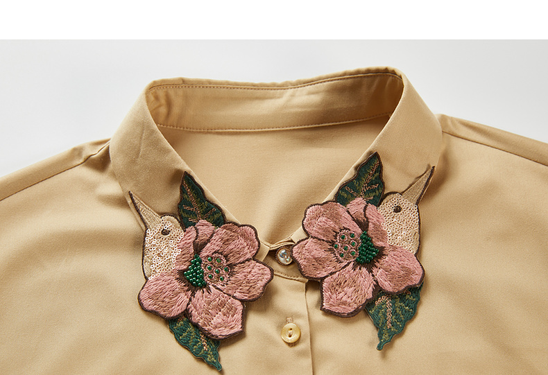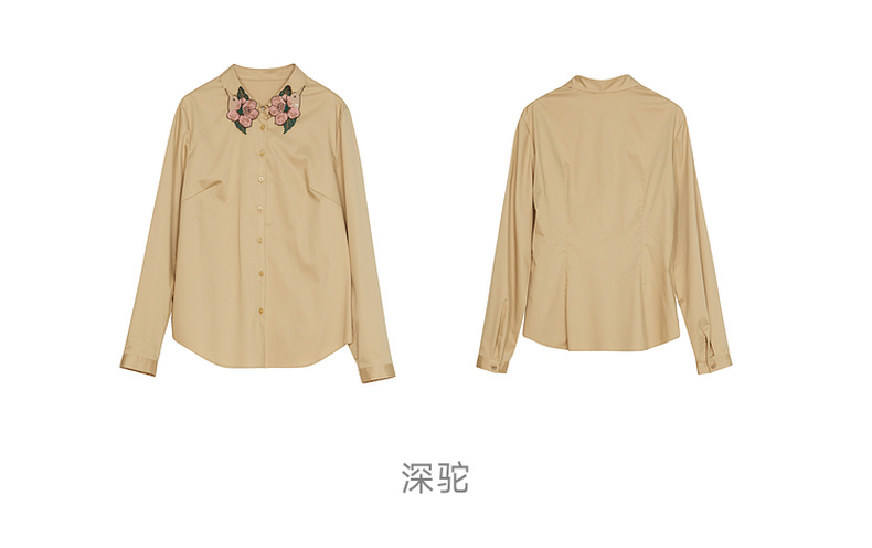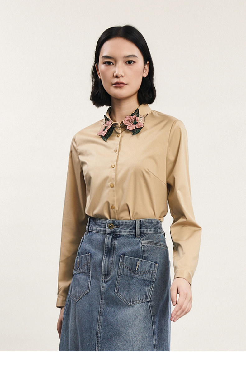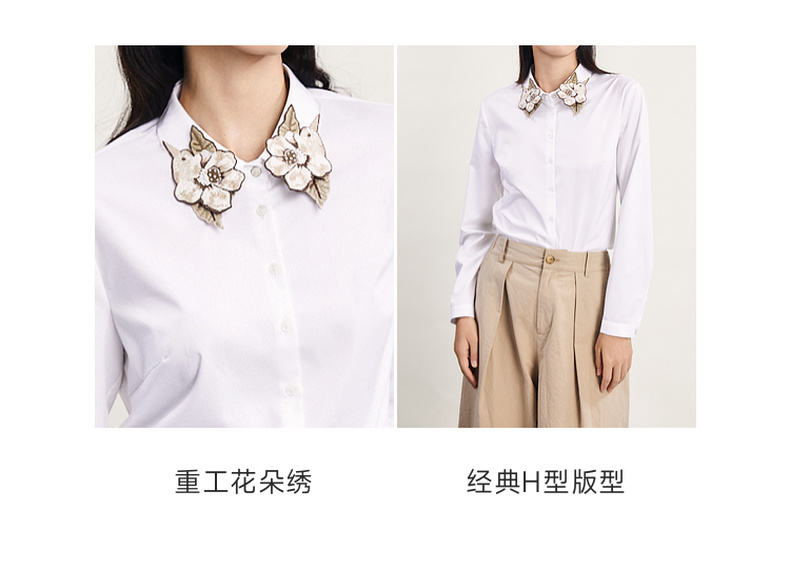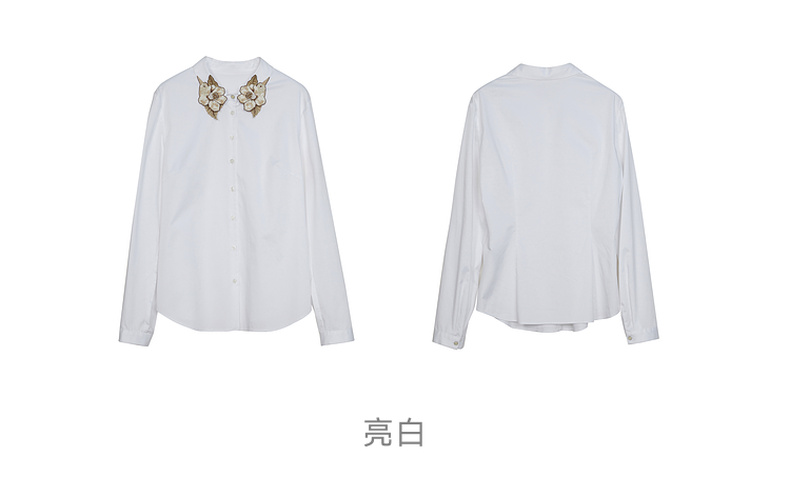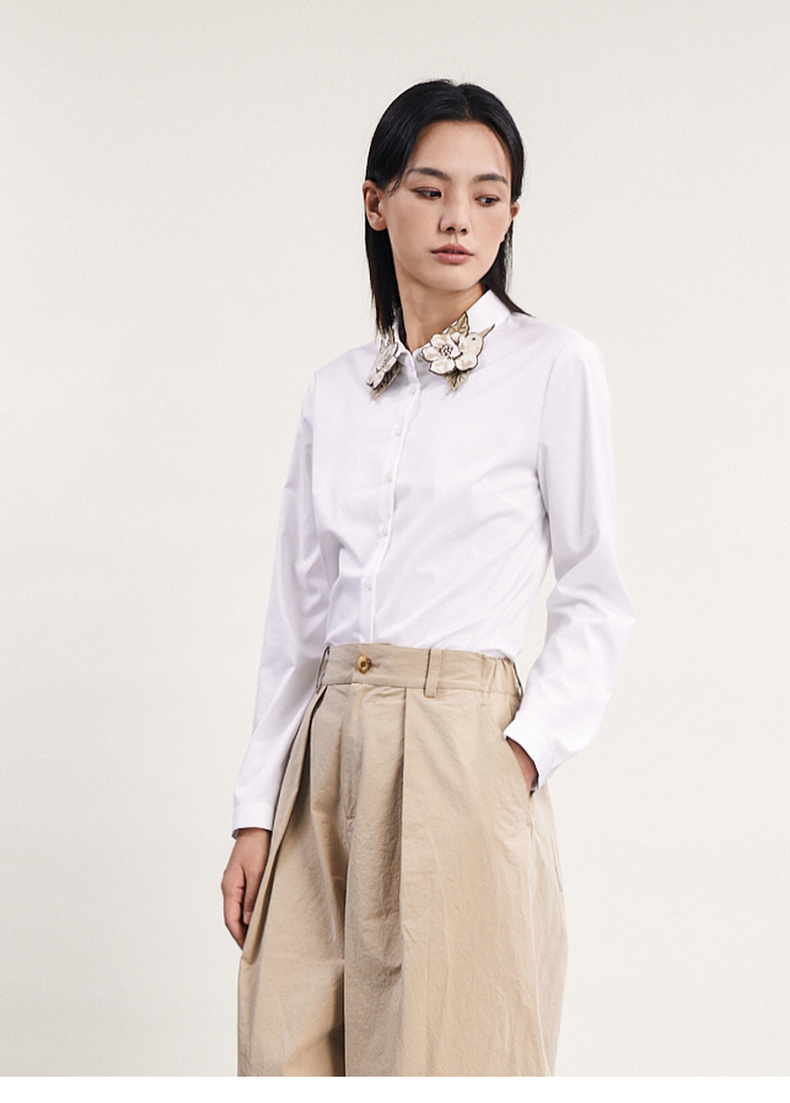 谜底白衬衫长袖女2024春季新款文艺风领口绣花修身衬衣241MC0059