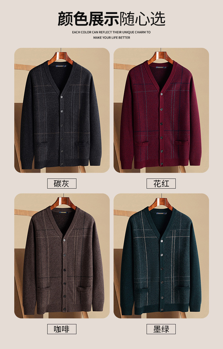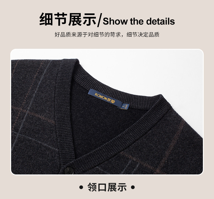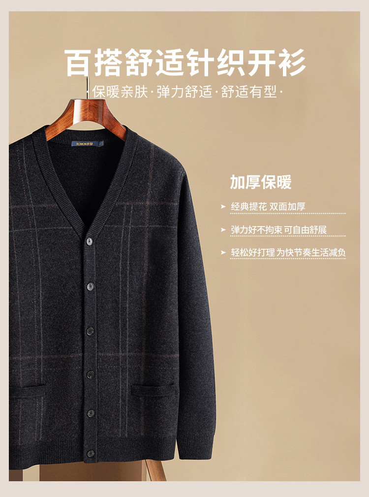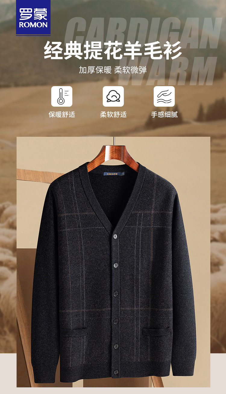 【100羊毛】罗蒙秋冬羊毛衫男加厚针织衫男开衫外套男保暖男士羊毛衫
