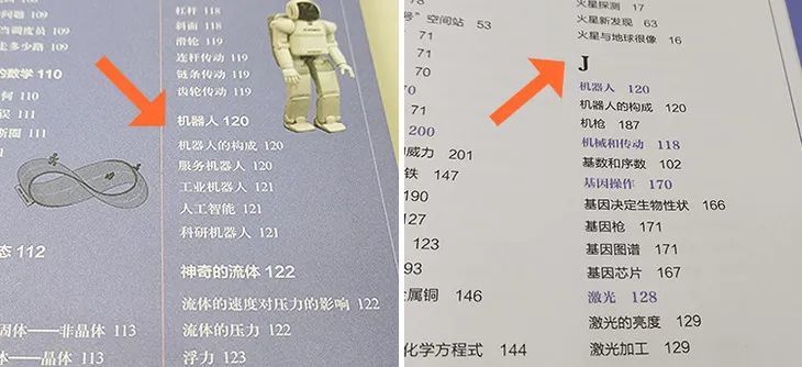 比如,他想知道机器人,那就用目录或者索引,找到对应的,翻翻看看。