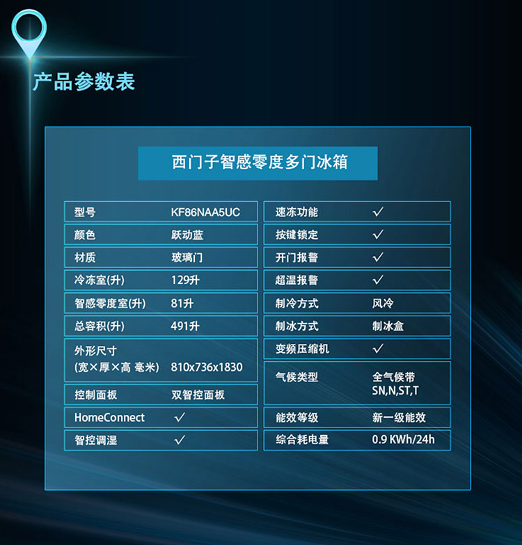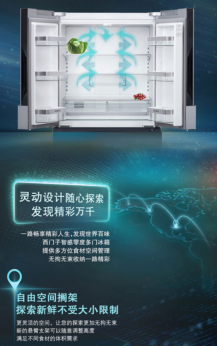 西门子 491升多门冰箱 智能互联 零度保鲜 BCD-491W(KF86NAA5UC)