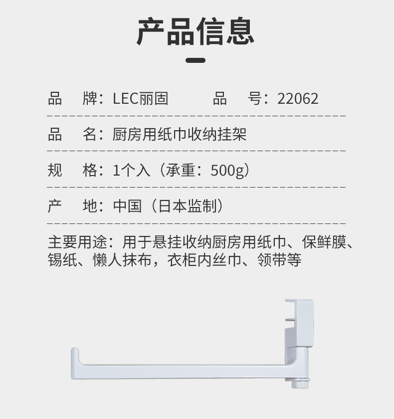 日本LEC厨房纸巾架挂架免打孔吸油纸橱柜卷纸架抹布收纳架