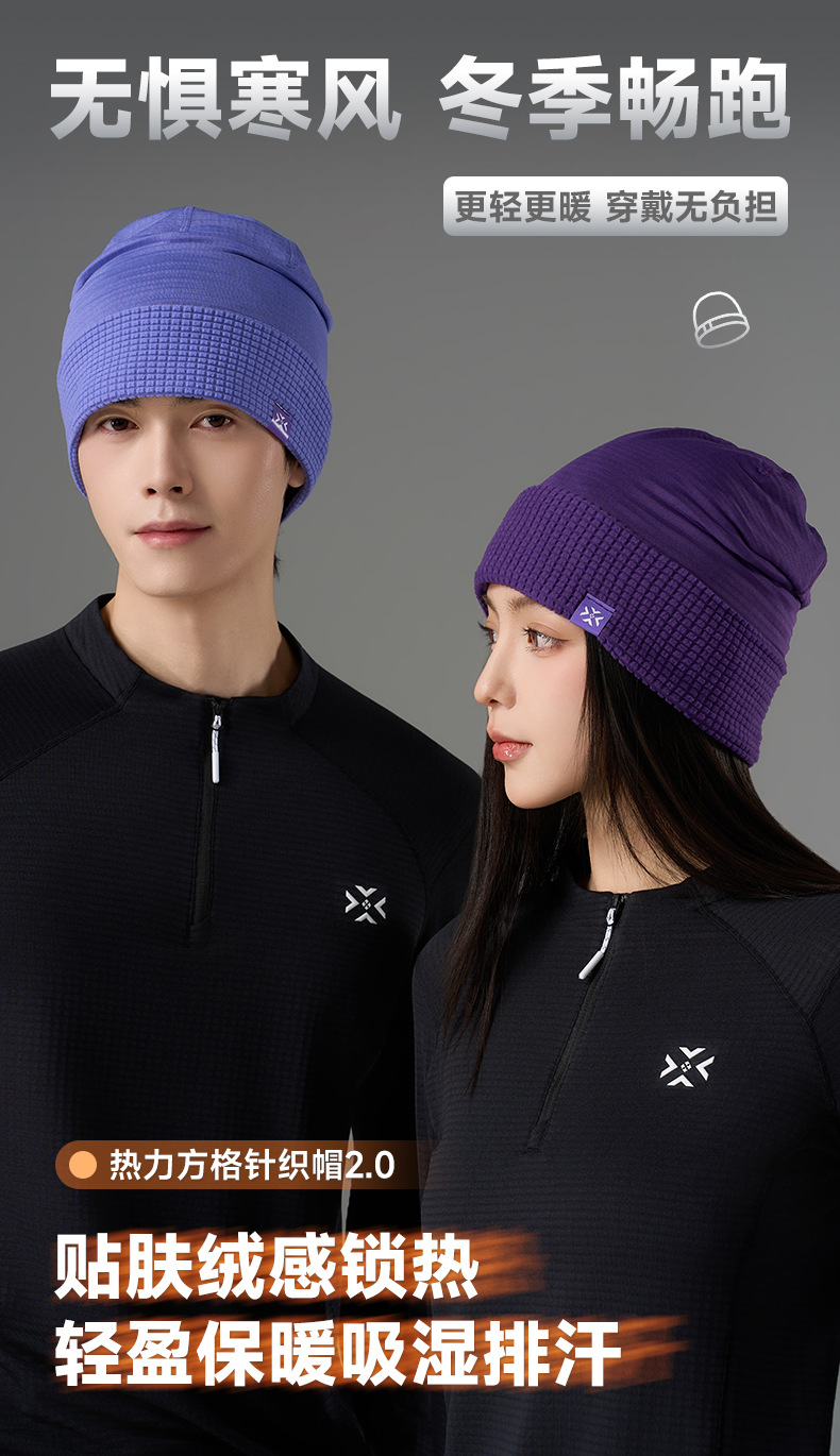 【新款】有为者/热力方格针织帽 秋冬男女户外运动保暖抓绒运动跑步蓄热帽