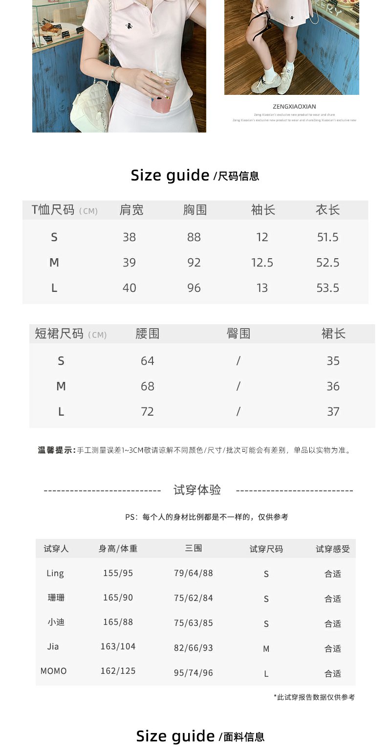 <曾小咸推荐>甜美风polo领T恤半裙套装