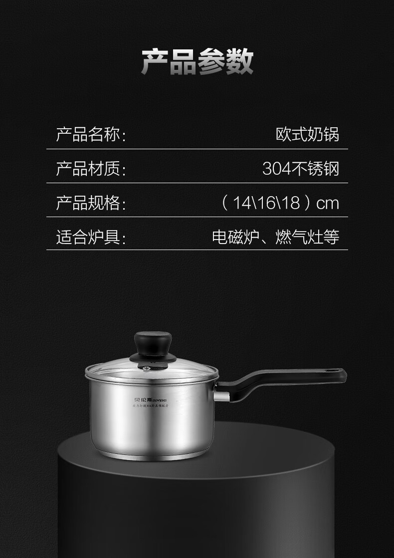 贝伦斯304不锈钢奶锅宝宝辅食锅电磁炉通用