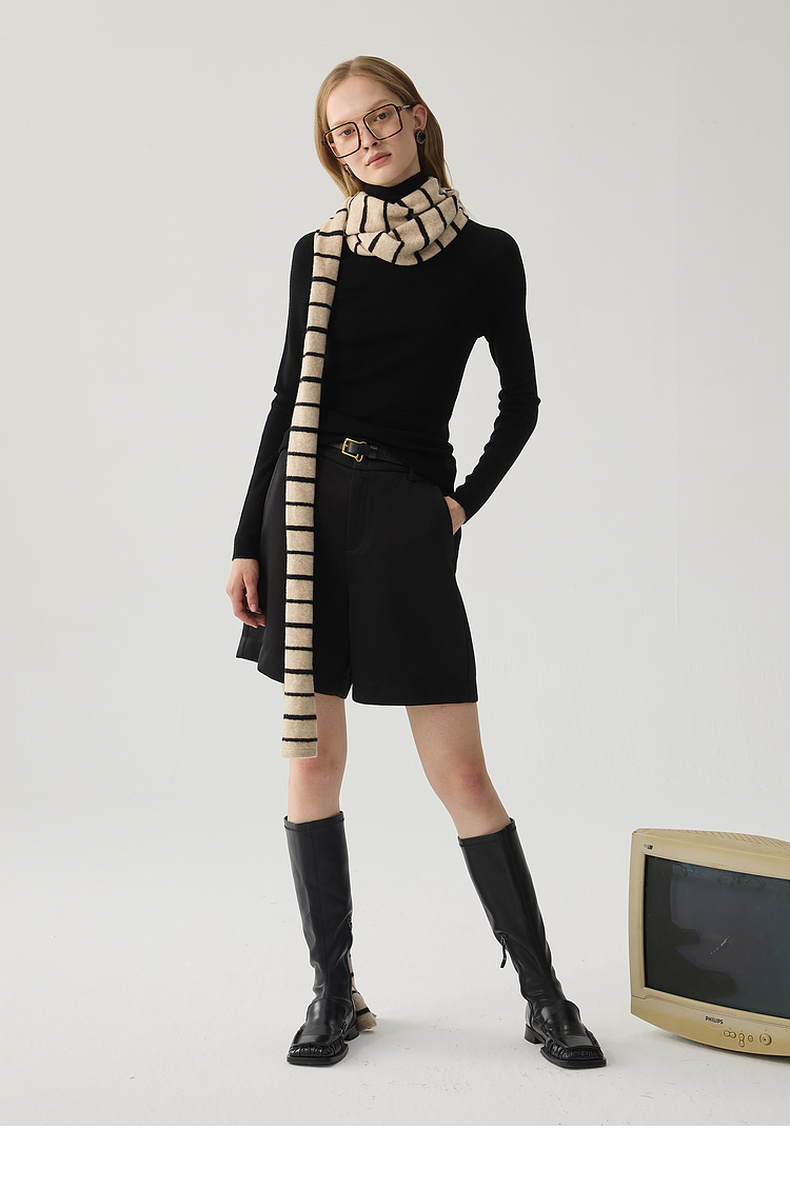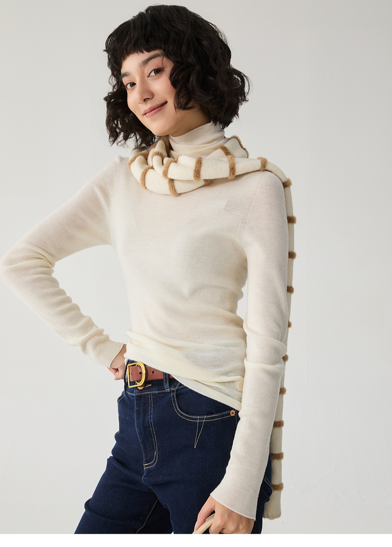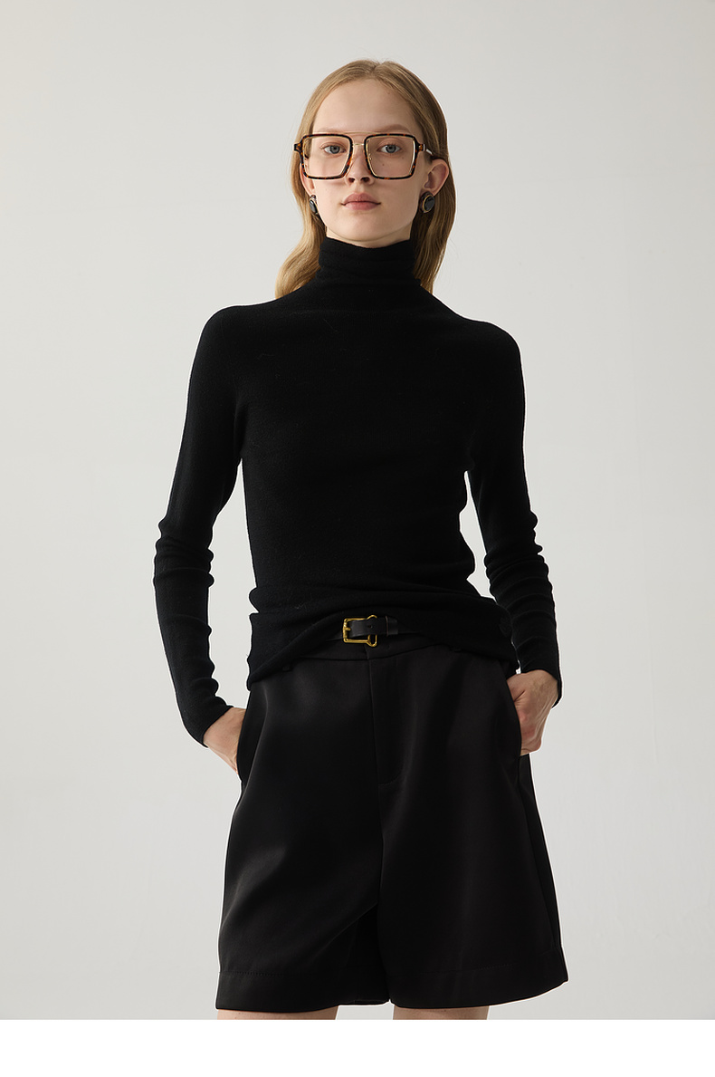 谜底高领绵羊毛衫2024冬新品极简风亲肤百搭修身打底衫244MZ1930
