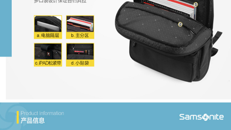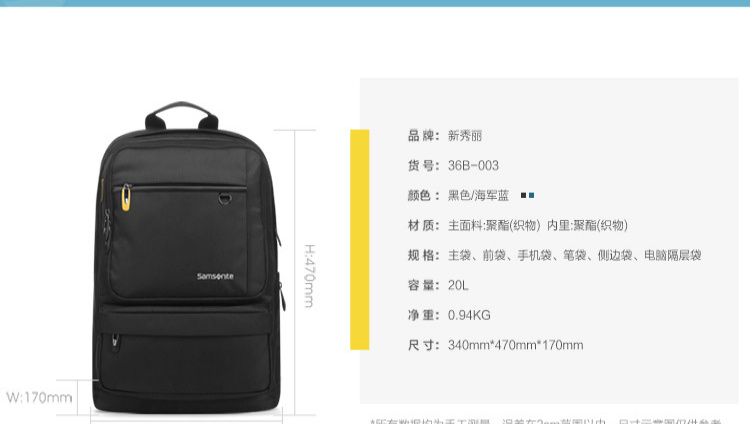 厂家直发(3-5天发货,着急勿拍)新秀丽双肩包36B*09003 笔记本电脑背包 15.6寸休闲商务 黑色