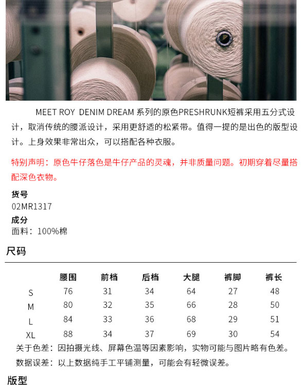 MEET.ROYDENIM DREAM原色PRESHRUNK牛仔五分短裤 冈山KUROKI面料02MR1317