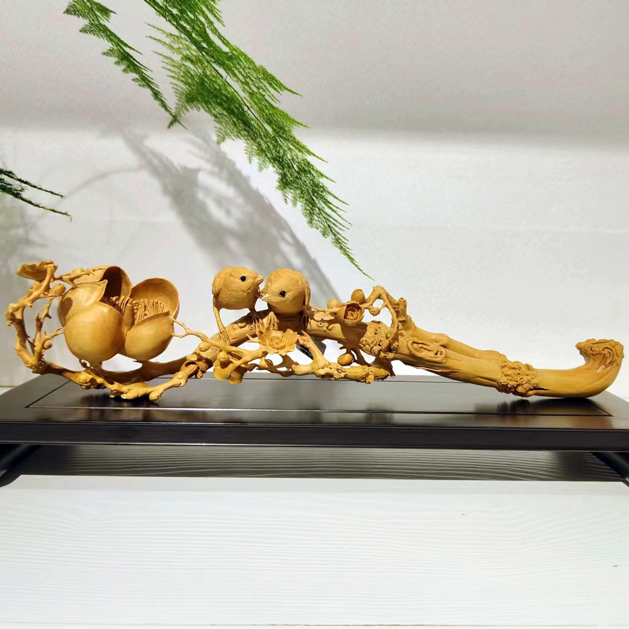 喜上梅梢°黄杨木如意摆件