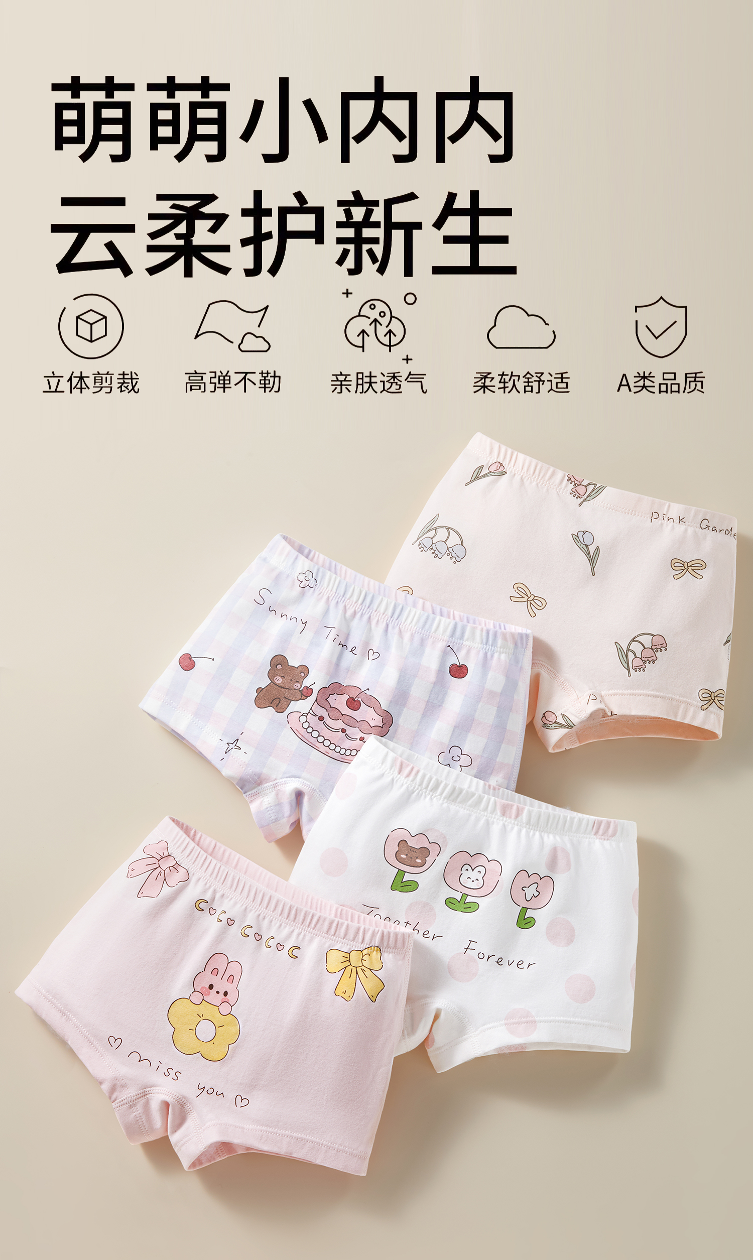 科巢儿童内裤女童宝宝小短裤婴儿全纯棉四角平角女孩夏季薄款a类