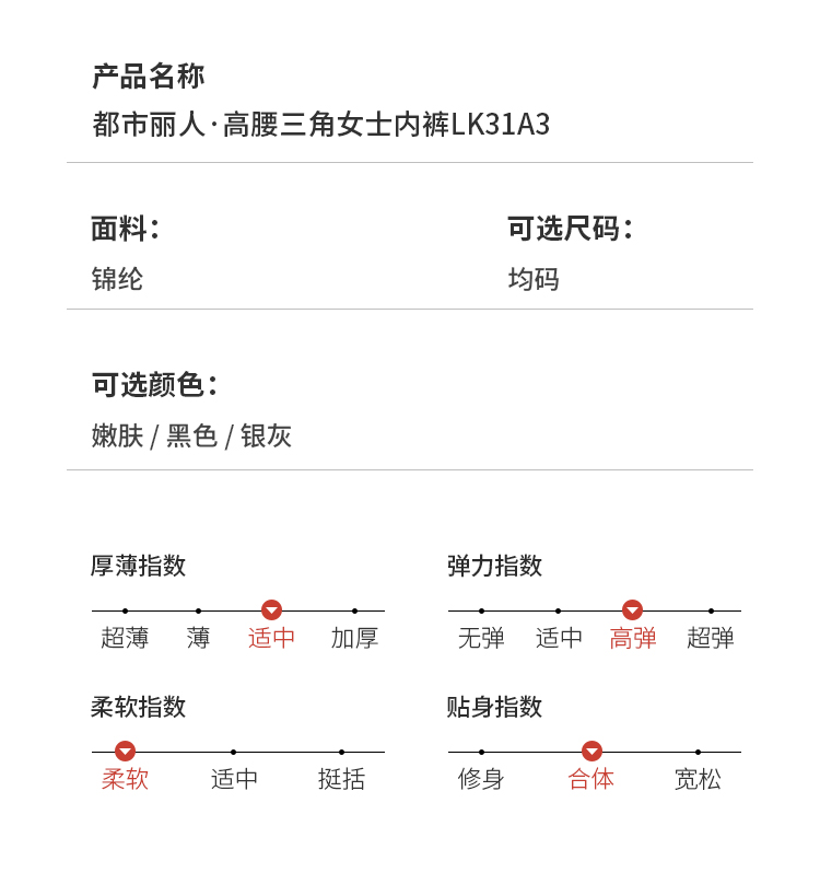都市丽人塑身系列无缝三角裤女士内裤高腰三角裤LK31A3