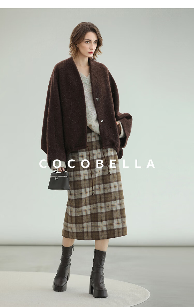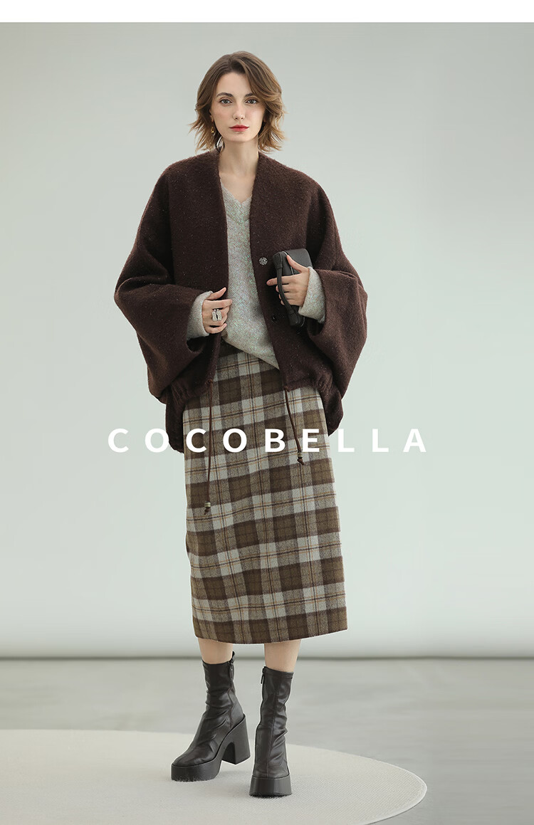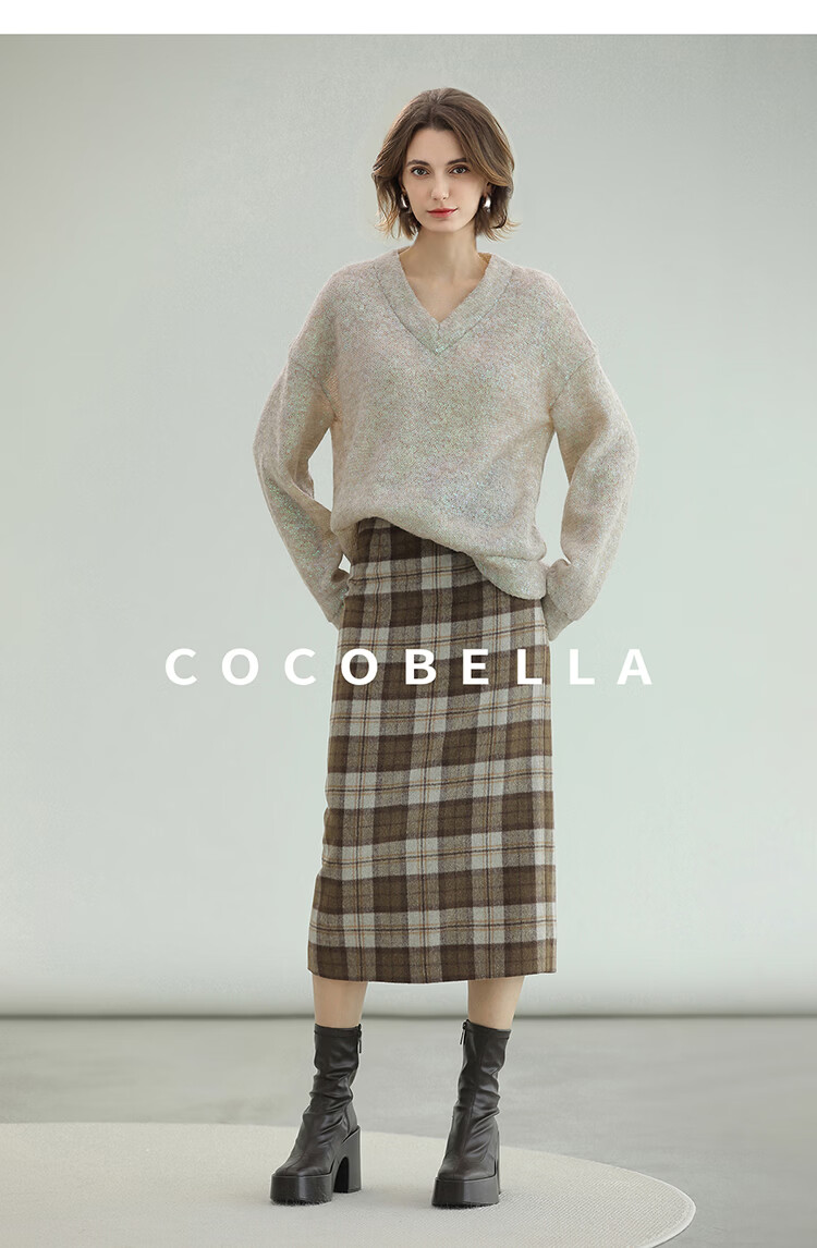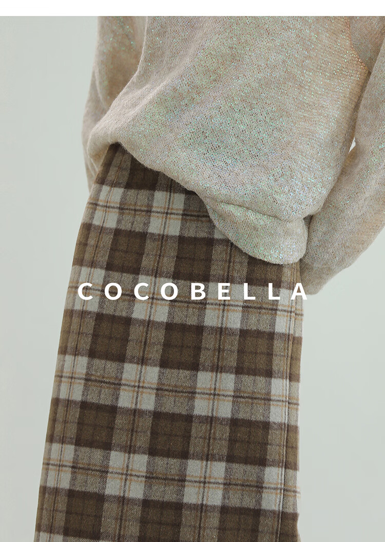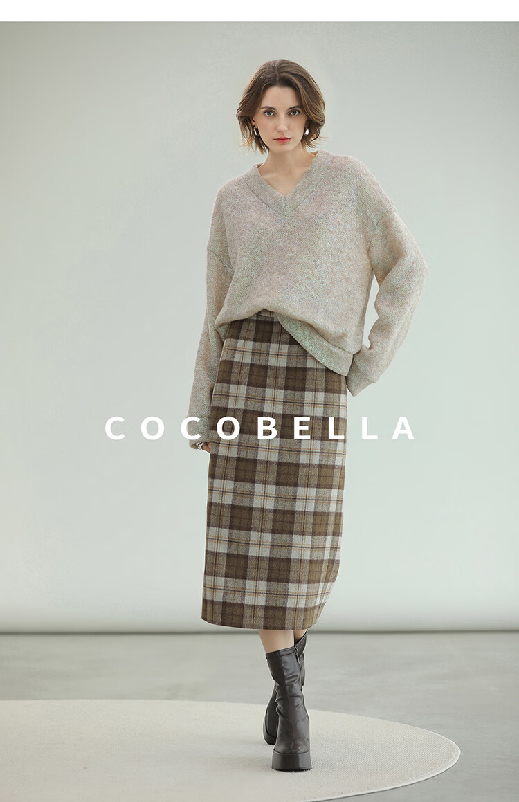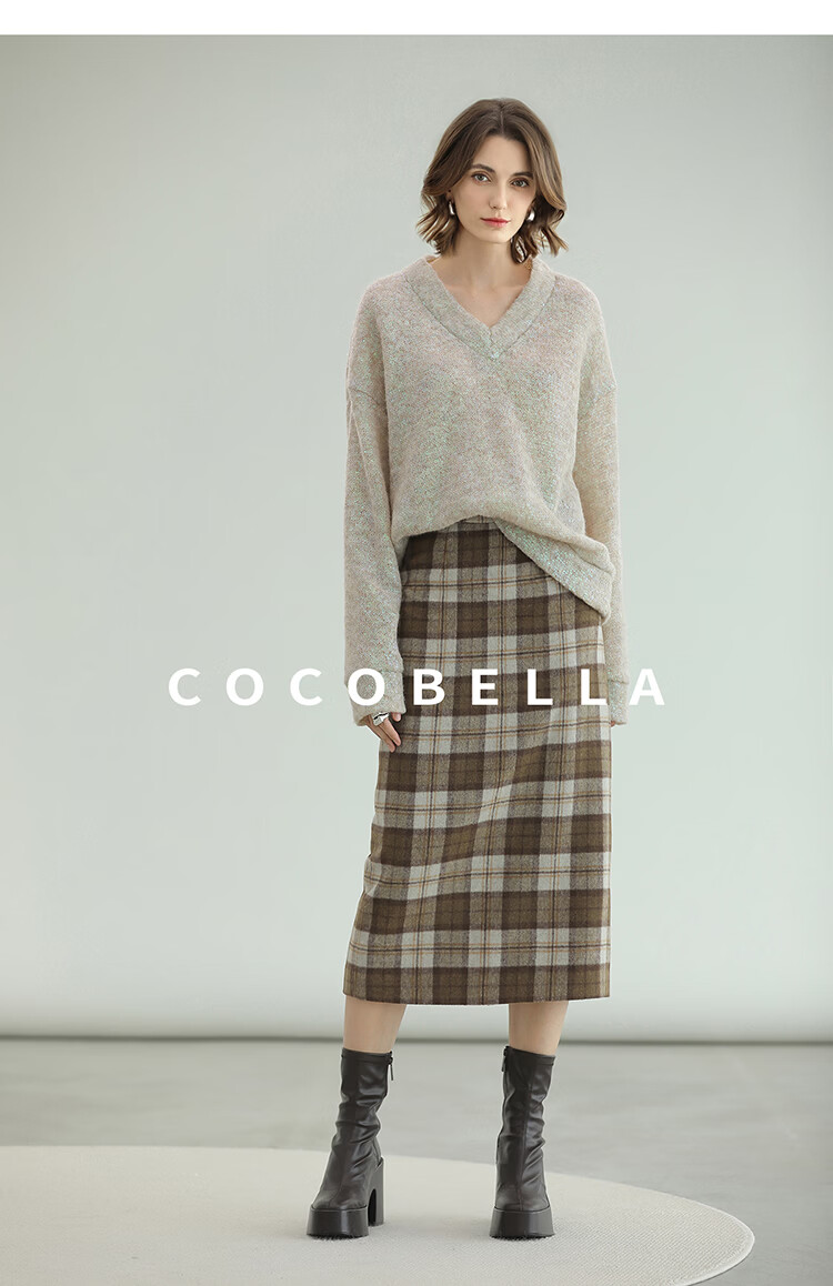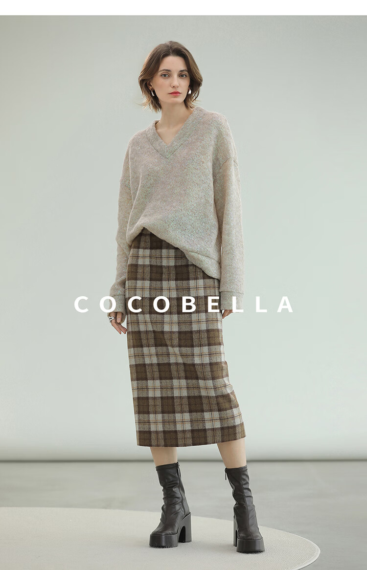 COCOBELLA老钱风复古格纹毛呢半身裙女秋冬气质直筒裙HS3148