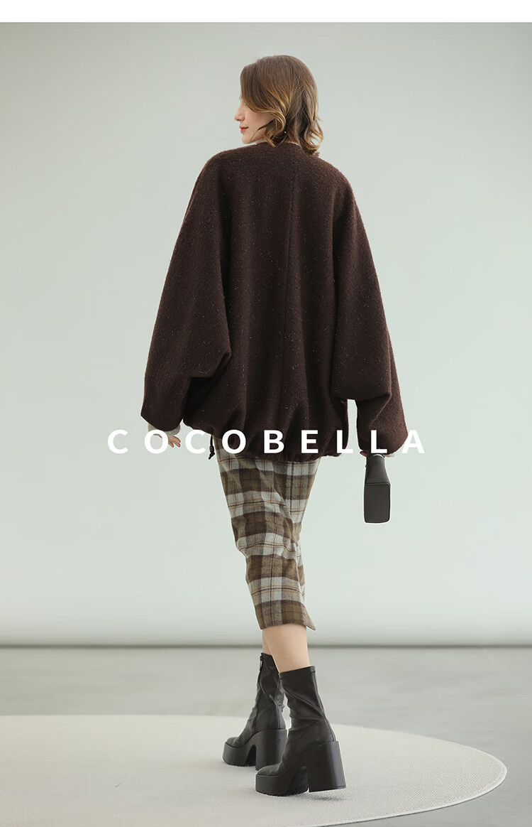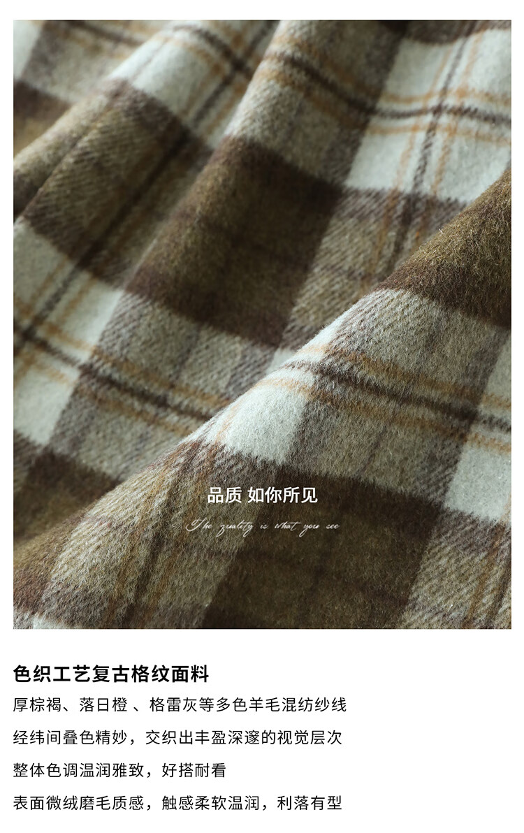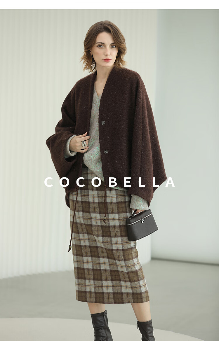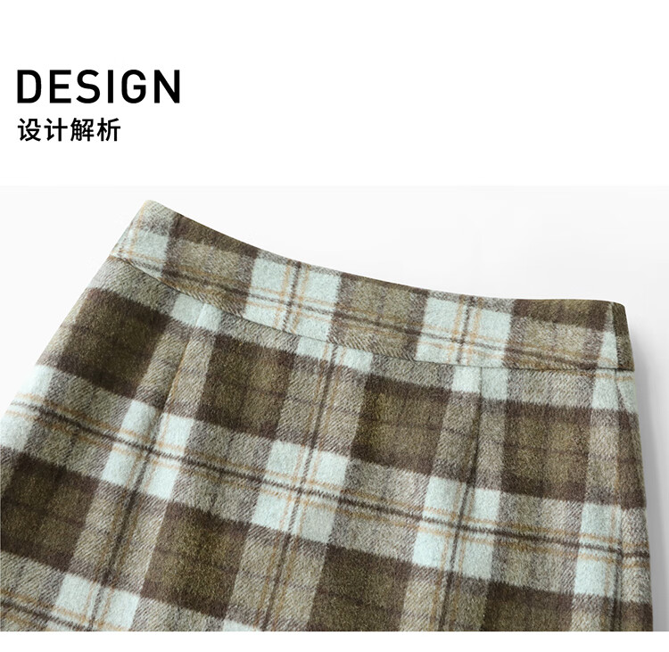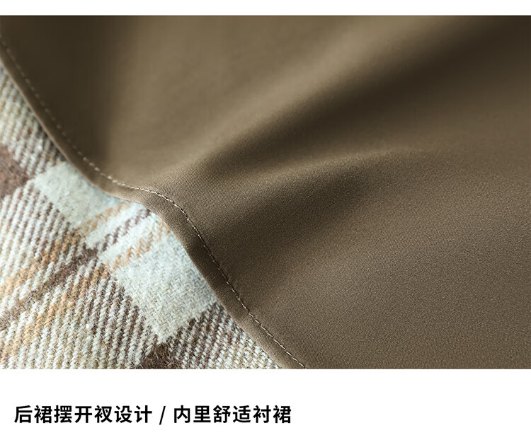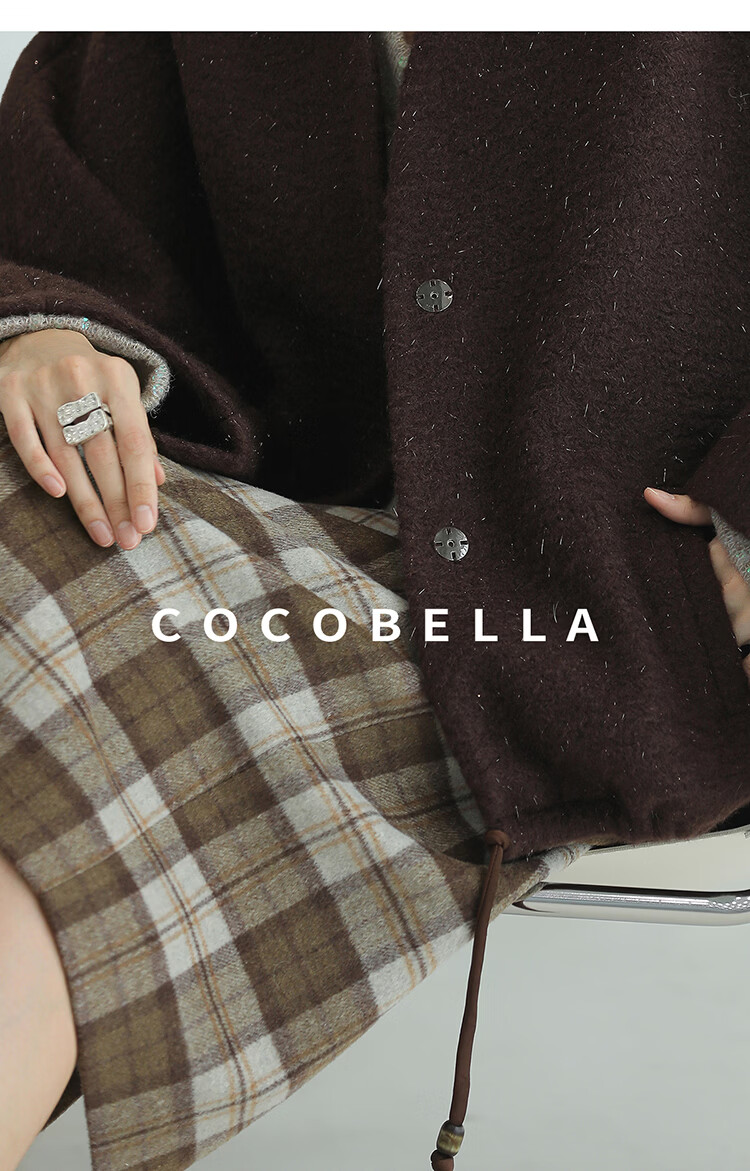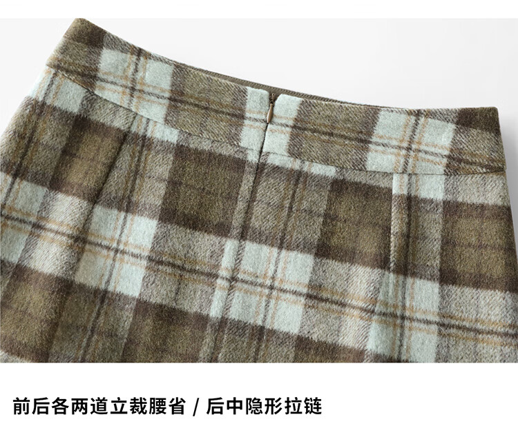 COCOBELLA老钱风复古格纹毛呢半身裙女秋冬气质直筒裙HS3148