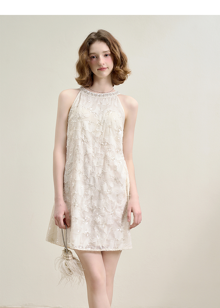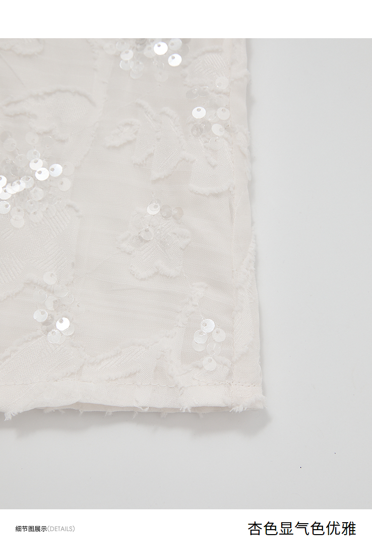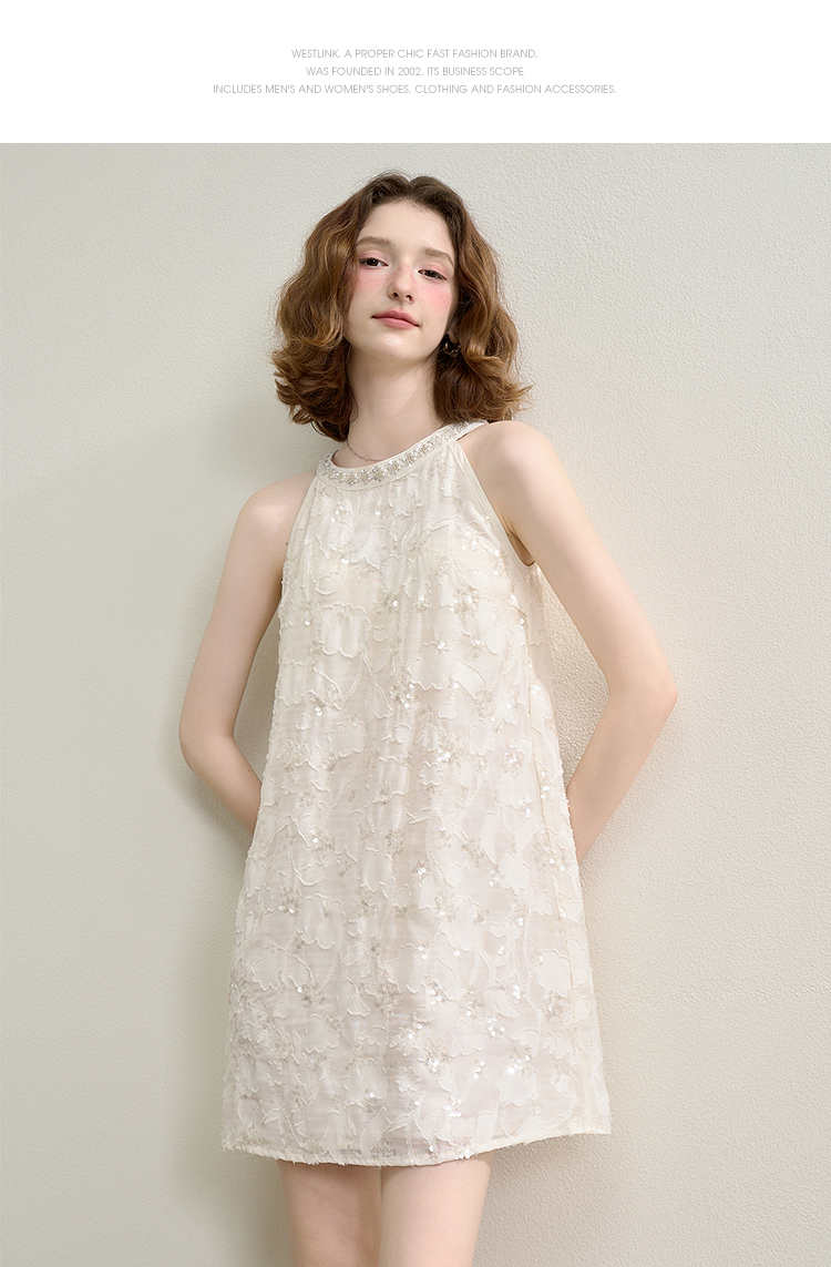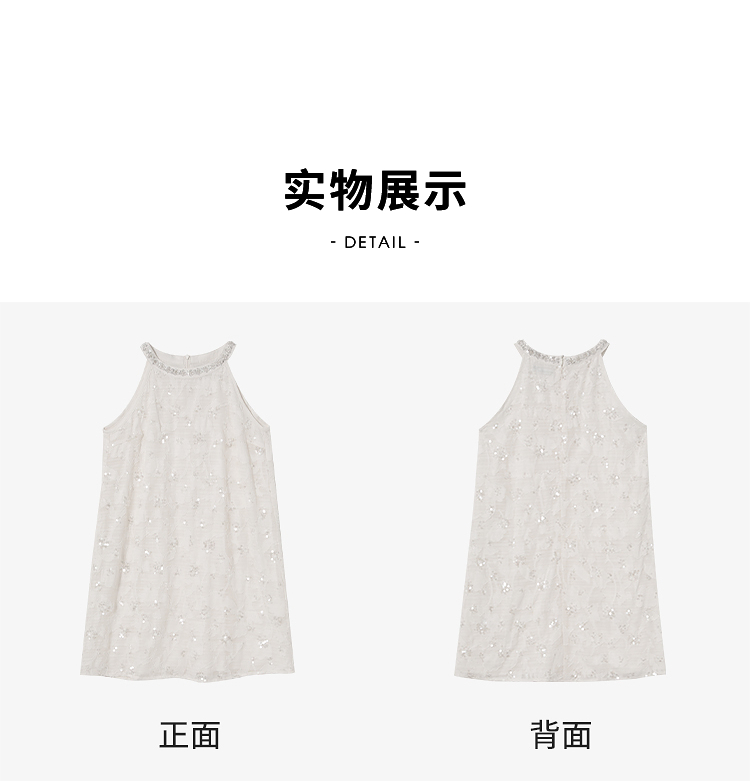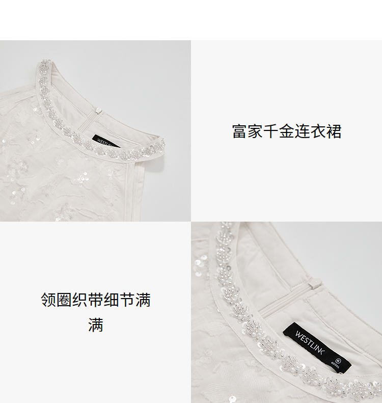 【限时秒杀】【富家千金风】领圈织带亮片提花连衣裙女夏季优雅短裙LXD50667