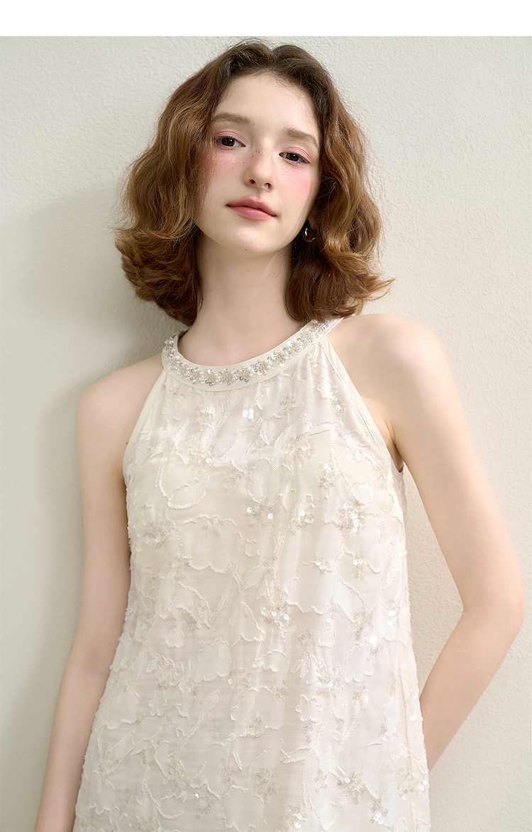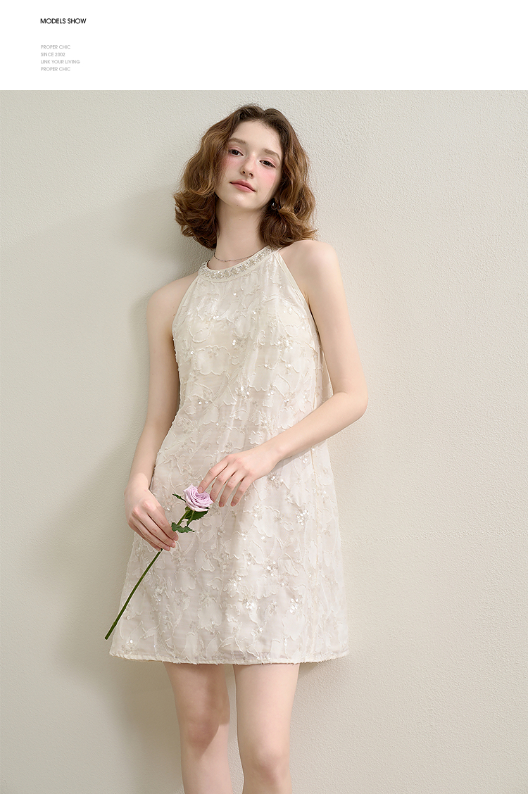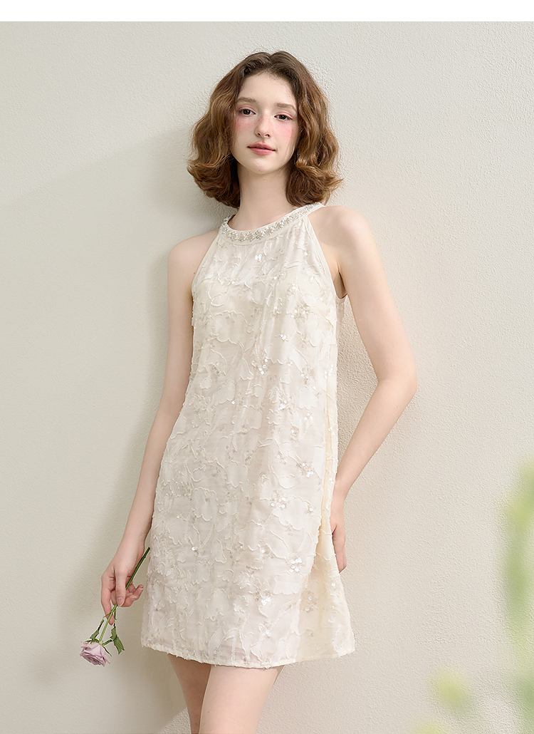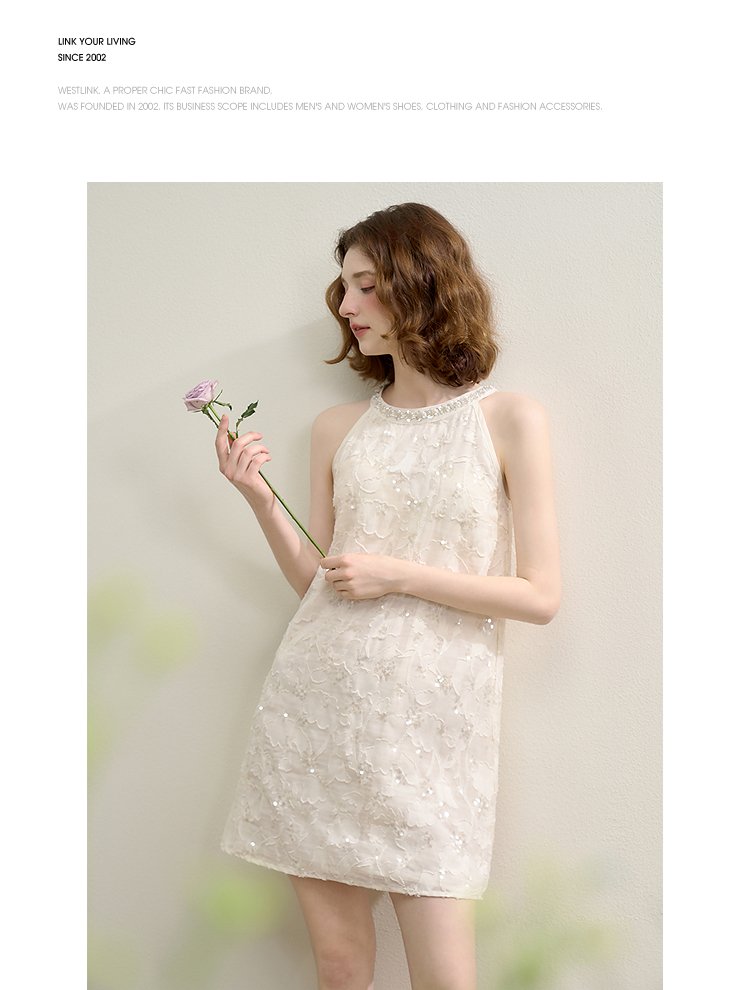 【限时秒杀】【富家千金风】领圈织带亮片提花连衣裙女夏季优雅短裙LXD50667